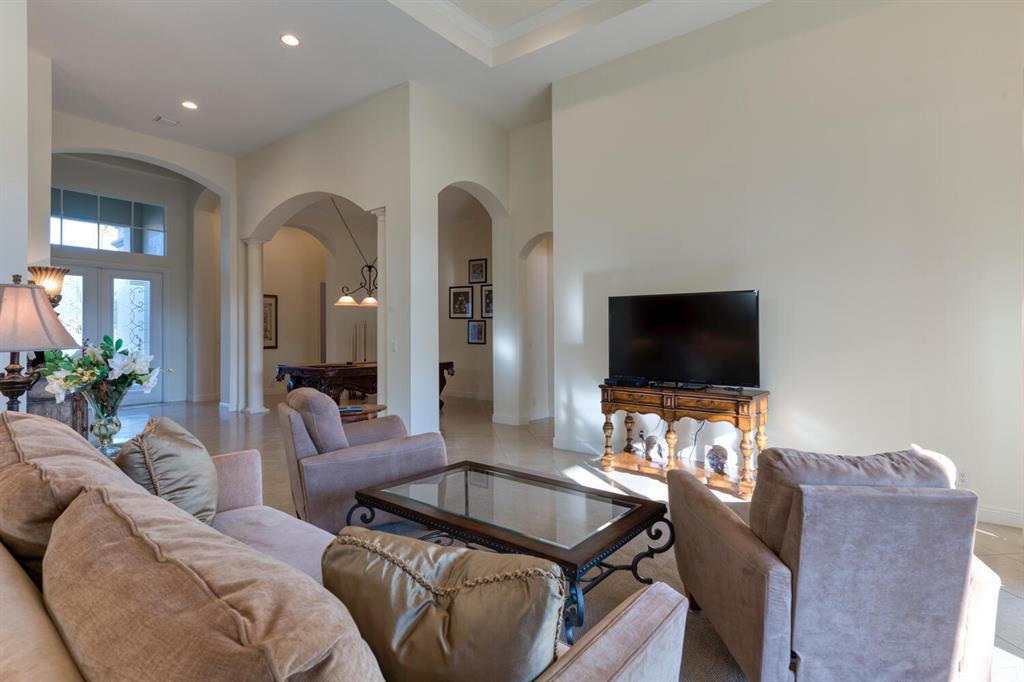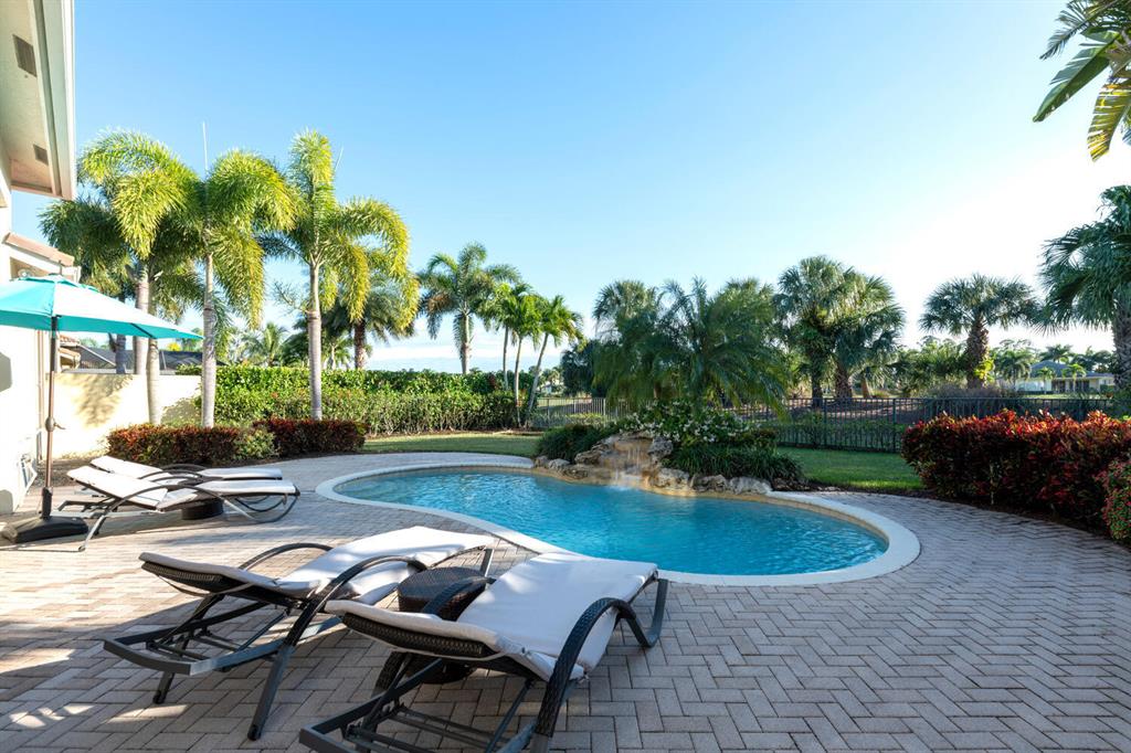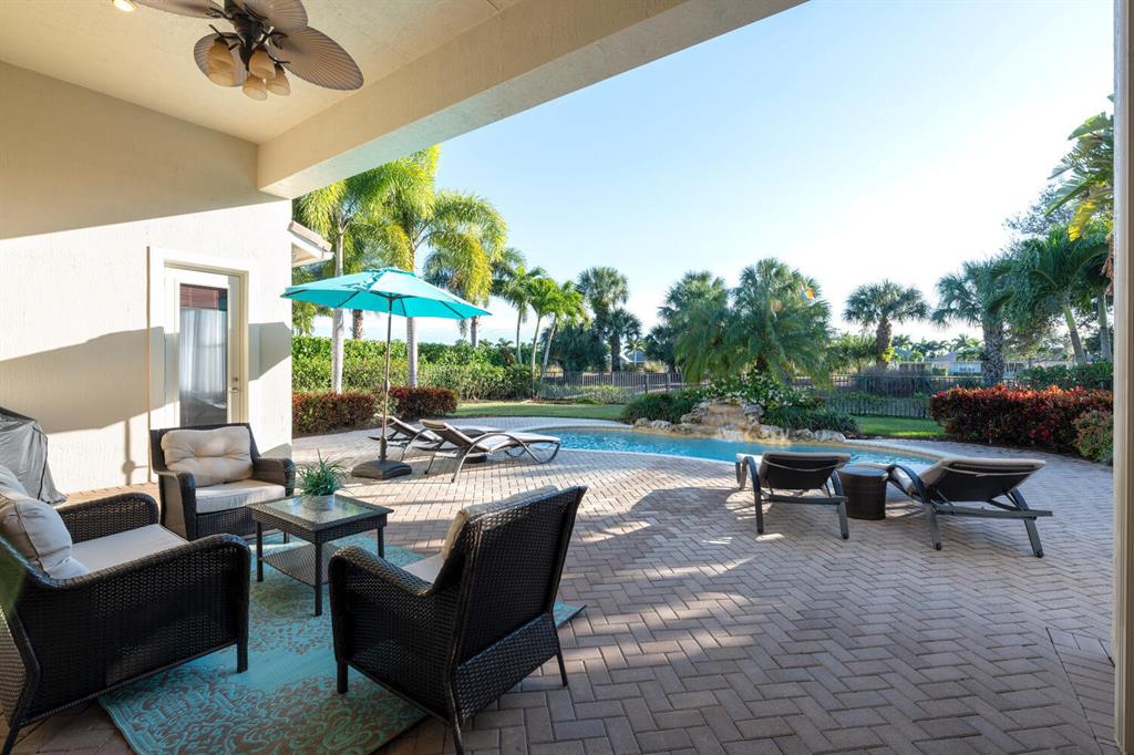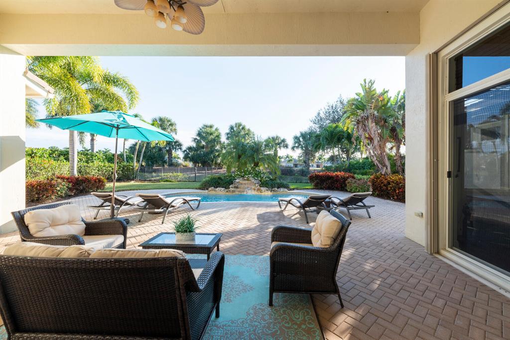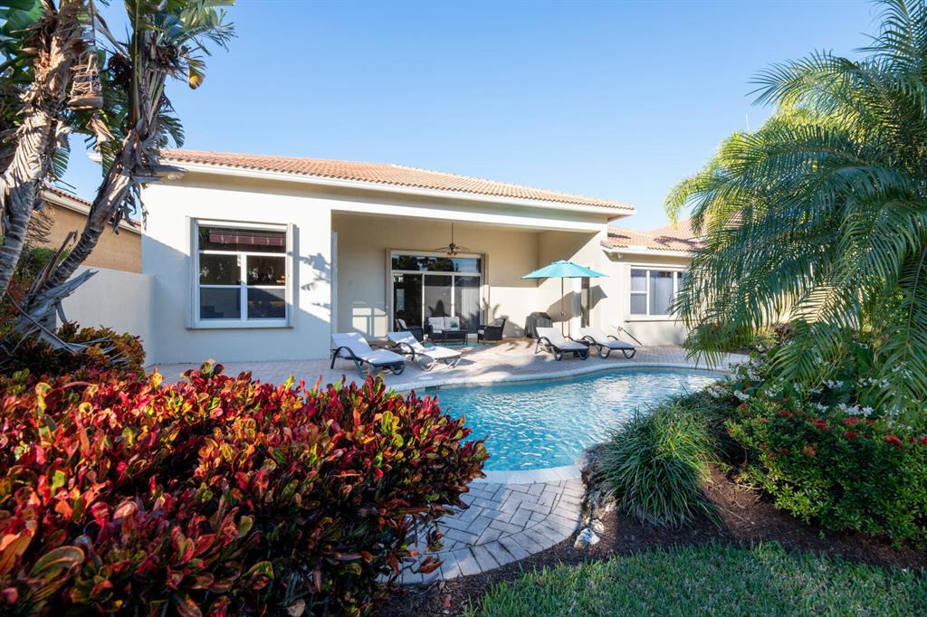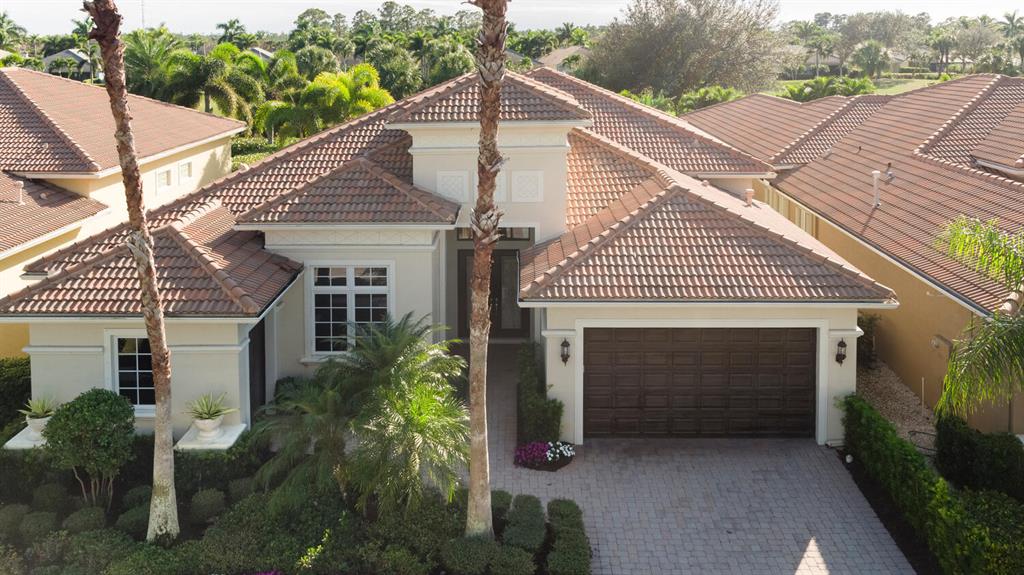 Meticulous Furnished 3BD+Den/3.1BA/2.5 Garage with Southern exposure on the Tradition golf course, no cart path! Covered lanai with pool and spacious lushly landscaped backyard with lots of privacy. Accordion shutters on windows, front & back doors impact glass. Light and bright in neutral tones. 2017 A/C. Kitchen stainless steel appliances, granite countertops, 42 inch cabinets, gas range, double ovens, oversized panty. All guest suites have their own bathroom. Master has two walk in closets with custom cabinetry. Garage floors have epoxy finish. Two car garage with separate golf cart entry/garage. Check out the full video in detail!