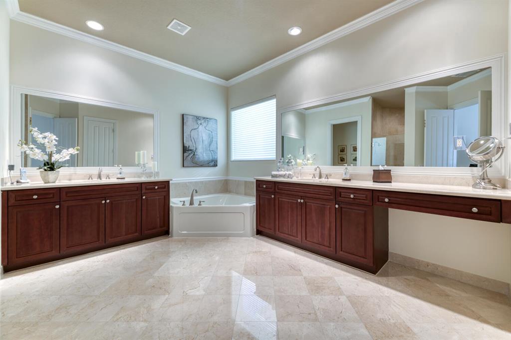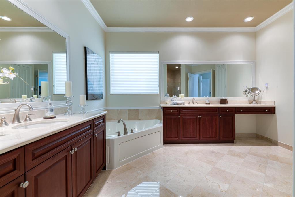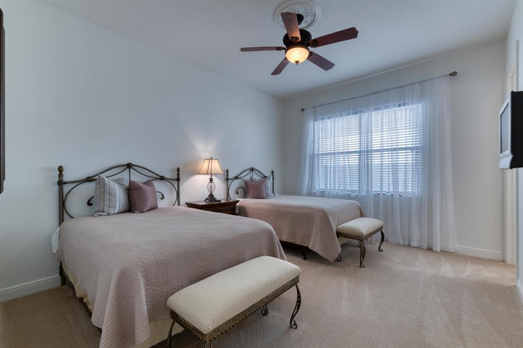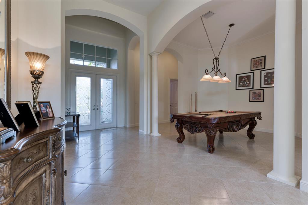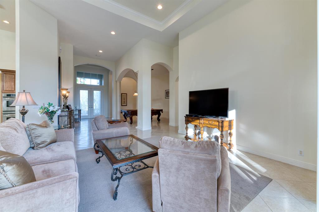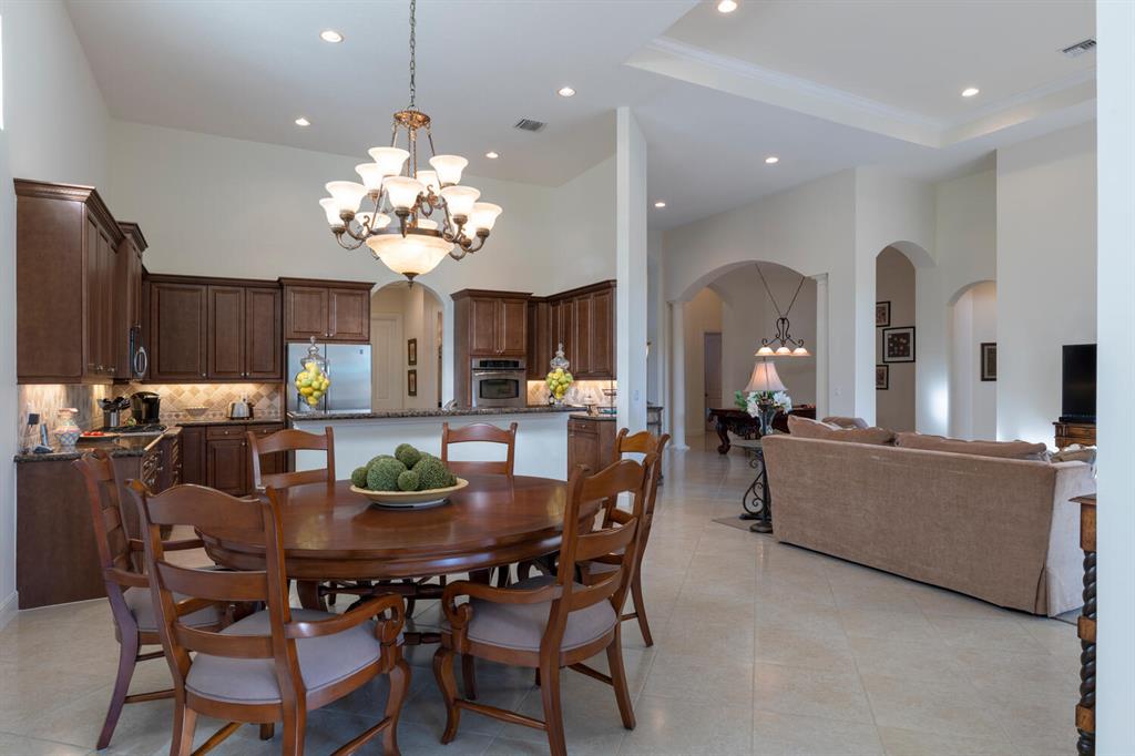Meticulous Furnished 3BD+Den/3.1BA/2.5 Garage with Southern exposure on the Tradition golf course, no cart path! Covered lanai with pool and spacious lushly landscaped backyard with lots of privacy. Accordion shutters on windows, front & back doors impact glass. Light and bright in neutral tones. 2017 A/C. Kitchen stainless steel appliances, granite countertops, 42 inch cabinets, gas range, double ovens, oversized panty. All guest suites have their own bathroom. Master has two walk in closets with custom cabinetry. Garage floors have epoxy finish. Two car garage with separate golf cart entry/garage. Check out the full video in detail!