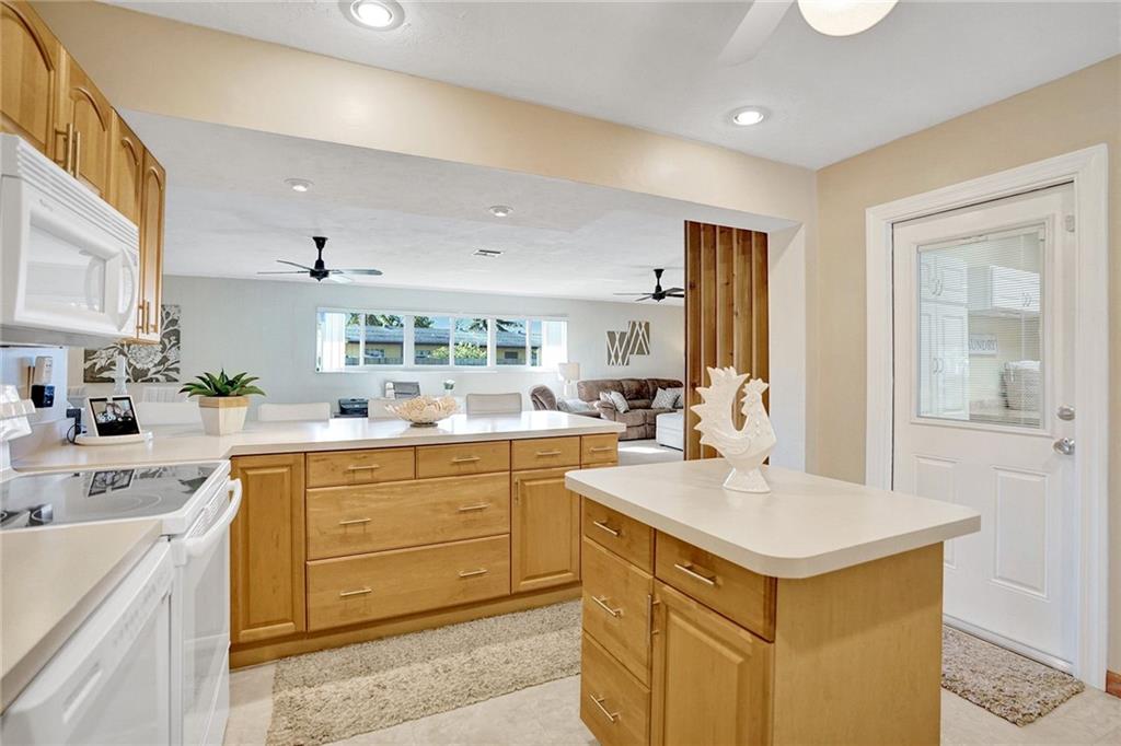 You will be amazed! Captivating custom features throughout this meticulously cared for Riverland home w/garage. Friendly covered front deck (20x15). Comfortable living room. Big classic kitchen enhanced by cafe counter, movable island, fully applianced, lots of cabinets/pantry. Grand family room (40x20) fit for a big, big screen and formal dining area, French doors out to large screened patio .. just perfect for entertaining! Each bedroom with its own personality, Murphey bed in 2nd bedroom, renewed baths. Sunny laundry room has added storage cabinets. Private fenced back yard. Storage shed/electric for workshop. 16X8 cement slab for recreational. Hurricane impact windows, panels for doors. Double-wide driveway. Unbeatable location convenient to everything. Perfect choice. Check it out!