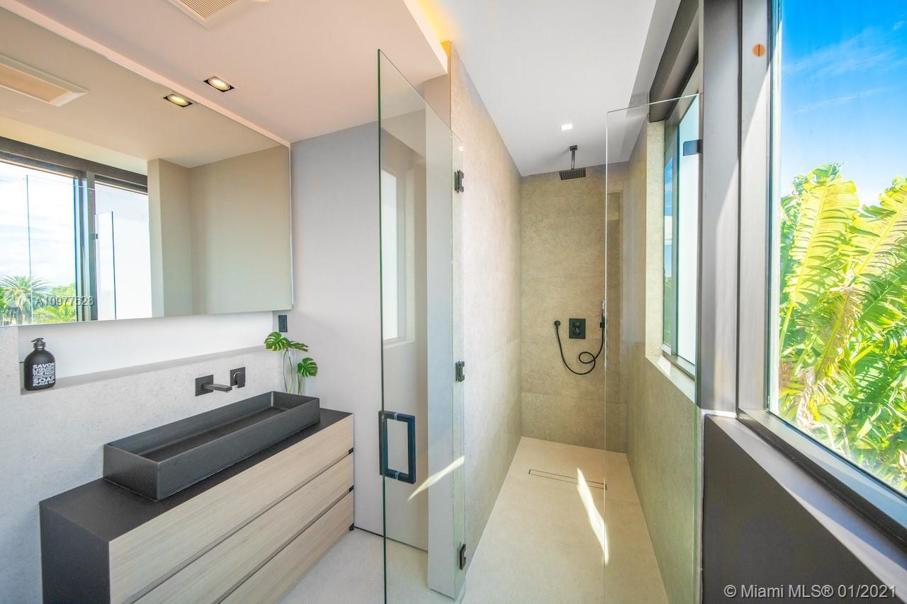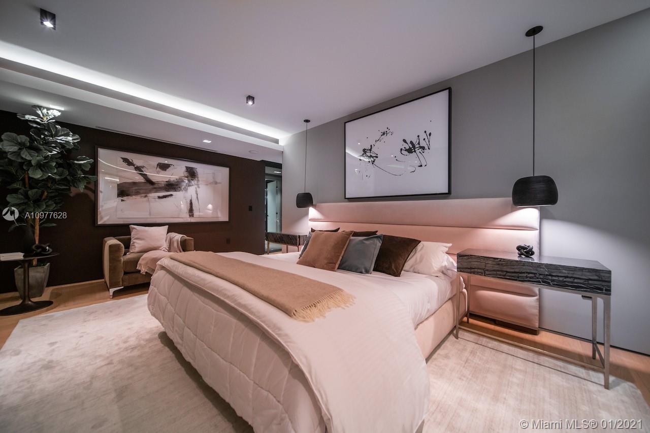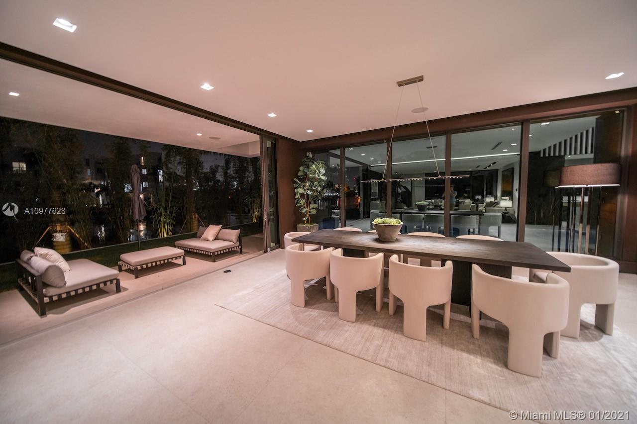Villa "L'Artiste" is a modern estate that sits in a quiet gated community encompassing the famous Normandy golf club and brand new tennis center. The property broadcasts 5 bedrooms with 5 en-suite bathrooms and 1 powder room.Boasting opulence and sophistication with design by Togu, the main level of the home provides a fully equipped kitchen with Miele appliances, a 22 foot bianquissimo quartz countertop, 20 ft high soaring ceiling and a 20 ft long LED Chandelier across the living area. A 500 sqft Rooftop overlooks the Golf course, the canal and the Bay. Full size sliding doors lead to a 55 foot long boat dock and oversized heated pool prolonged by a decorative 40ft pond. Finally, Villa "L'Artiste" is staged by Meredith Baer with Modern furniture to boast luxurious indoor-outdoor living.