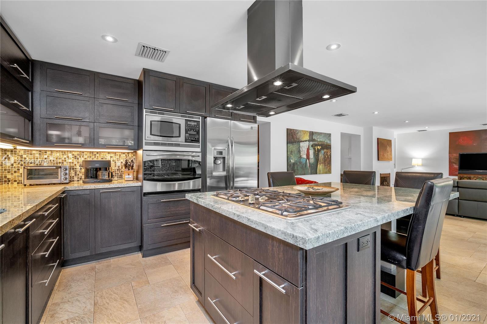 A cohesive mix of classic charm and contemporary style, this 3 bed/2 bath central Miami Shores home boasts unique features including living room with vaulted cypress ceiling, dual-sided natural-gas fireplace, and an expansive great room with modern kitchen and butlers pantry with its enormous custom island and views of your tropical gardens and gorgeous 36 foot swimming pool. There is room to grow on this double lot which includes specimen palms, fragrant Ylang Ylang trees, and productive fruit trees. There is a full sprinkler system that works with well water. The home's square footage is larger than recorded. Appraisers sketch is available on request. Walking distance to shops, parks, and restaurants, come and see why this hidden paradise retreat should be the one you call home.