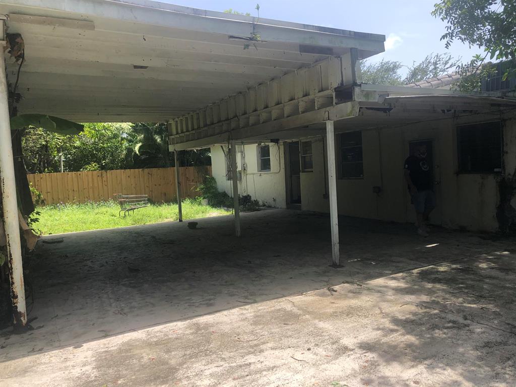 This FIXER UPPER / HANDY MAN SPECIAL special , has 3 bedrooms and 1 bathroom, the second bath is the laundry room. Public records says 2/2 , and has permits for an extension (3rd room) . wall to wall terrazzo floor in good conditions, large living rooms and white kitchen cabinets , BIG and Large back yard ., with wood pergola, were you have a cover car port that can be used to park large cars or RVs or boat. HUGE backyard and garden area . LOTS OF potential. Needs new roof, has newer electrical panel , newer central A/C, need to be updated .WHAT A LOCATION: Crossiant Park, Great schools distrcit .This property is in a Corner unit with one of the biggest lot in the area , where you can expand the home or you can do a stunning back yard with a pool