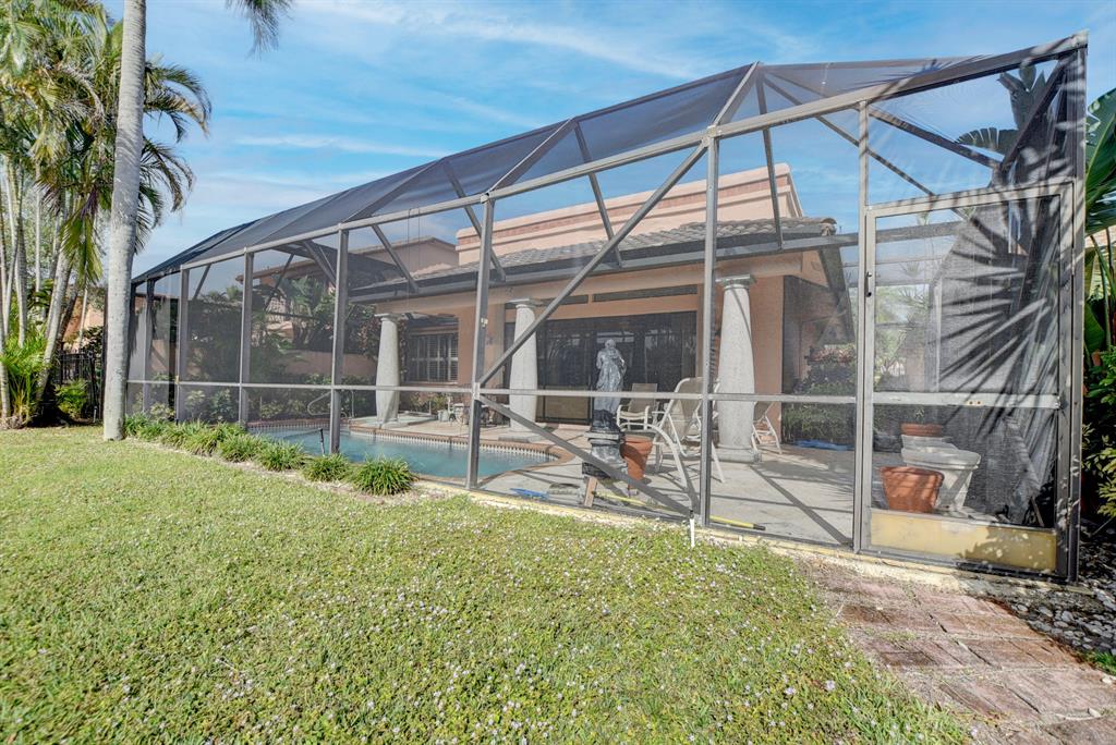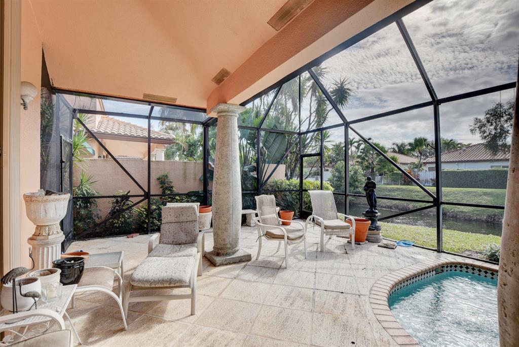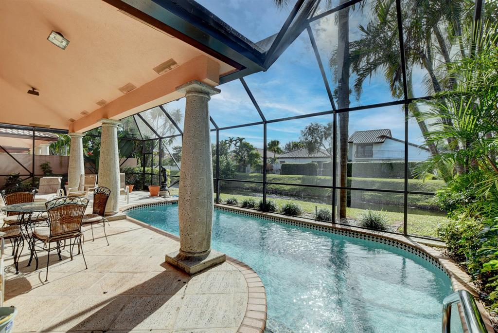 Spend endless hours in the peaceful screen enclosed patio in this lovely one story pool home in popular Villa Flora subdivision. Floor plan features three split bedrooms and two baths. Living room and dining room have high ceilings and pretty views of pool and canal. Kitchen has white cabinets and granite counters with large pantry and breakfast area. Large porcelain tile in living areas and carpet in bedrooms. Very light and bright! Private backyard with large screen enclosed pool and patio area. Pool heater recently replaced. Pretty canal views. Accordion storm shutters on back of house sliding doors. Other features include custom closet in master bedroom, walk in closets in 2nd and 3rd bedrooms, smooth ceilings through out, laundry in garage and much more! Membership optional