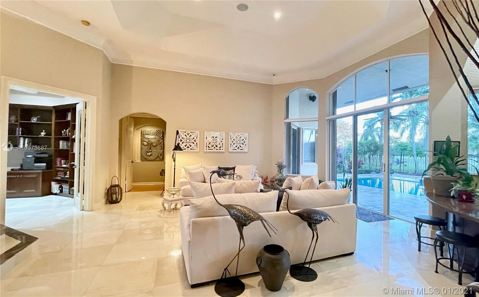 Absolutely Magnificent!/Tucked in the private community of Monterey in Weston Hills Country Club/from the moment you drive up you’re welcome by an overside pavers driveway leading you to an expansive Porch/Double Etched glass door to an raised Foyer entryway that takes you to a Stunning Living room, Soaring Tray ceiling/Massive Crown Moldings and the finest Imported Marble floors throughout the main home /Baths. Marvelous rich Wood 42”Cabinets/granite Counter top large center Island Custom Great Room with State of the Art Surround Sound Stereo system connect to a Large 75” TV/Wall of glass overlooking a custom Waterfall Swimming Pool blending seamlessly in our tropical paradise overlooking 180 view of an Sensational Golf course, Class A Rated Schools/A Must SEE!! Equal Housing Opportunity.