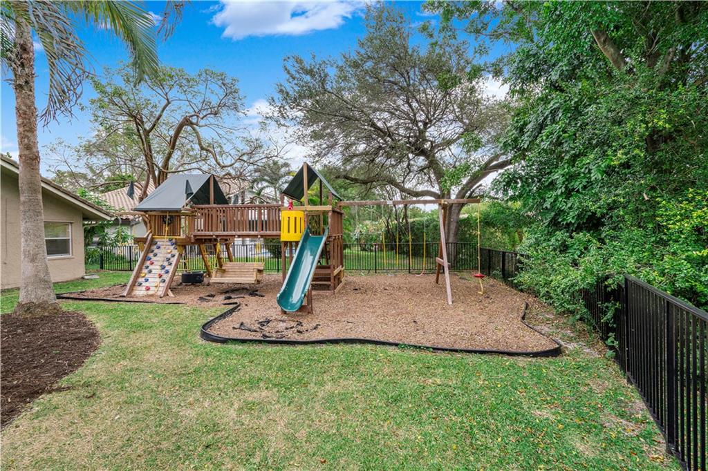 Stunning water views on a fenced parklike backyard!! 5/2.5 home located in the Oakwood subdivision of Coral Springs. Diamond bright has just been completed on the over sized pool! Interior has been freshly painted, wood laminate floors are throughout the home. Enjoy easy Florida living with the split bedroom plan and large family room that is open to the kitchen with stainless appliances an oversized counter height island. The cabana bath has just been updated. The bedrooms are all a nice size and the home has all wood french doors leading to the patio area. Enjoy the covered area in the peaceful fenced backyard that overlooks the lake with amazing sunrises. This home is move in ready!!