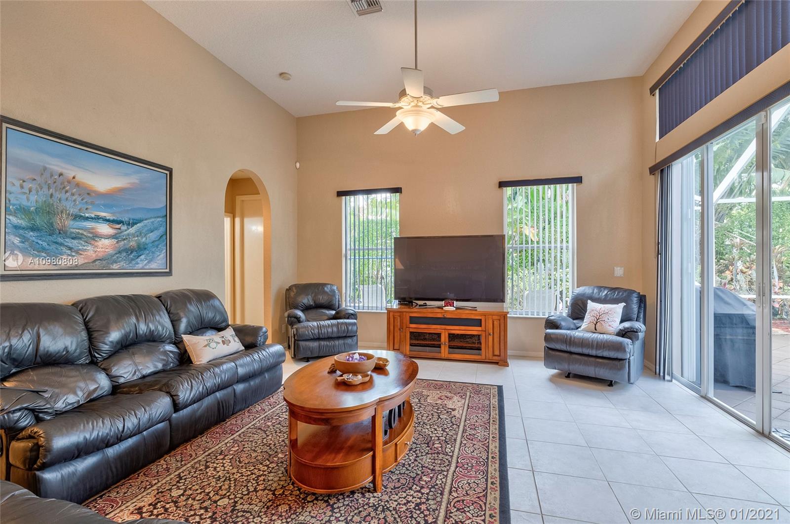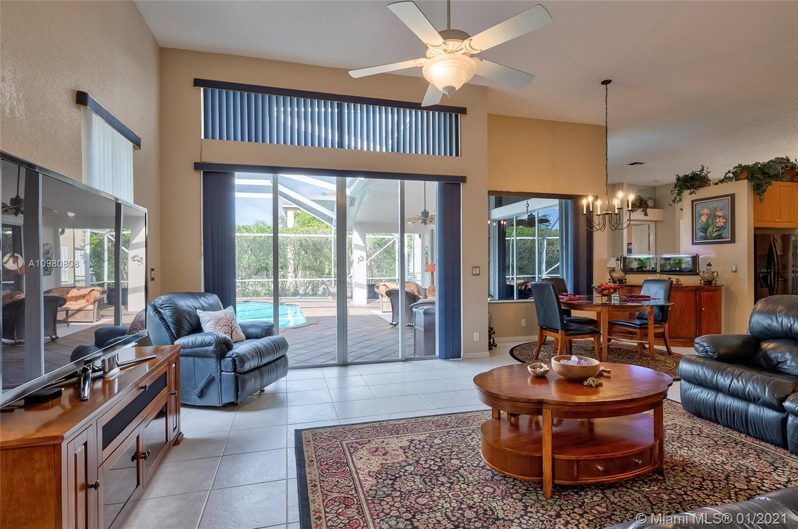 Gorgeous 4 bedroom home (with additional den/office/bonus room) with spacious living for the whole family. Lofty ceilings give the living areas a look and feel of comfort and expansiveness. Beautiful cabinetry and granite countertops are featured in the inviting, open-concept kitchen, breakfast dining, and family room Just off the family room is the beautiful screen enclosed pool and pool lanai outdoor area. Beautiful pool are with private bedroom access. In addition to all the beauty, and comfort this home offers, it offers safety as well, with accordion storm shutters throughout the home. NEW ROOF, A/C, Water Heater! Kitchen Appliances/Washer/Dryer Included (Faux fireplace in Living Room is not included)