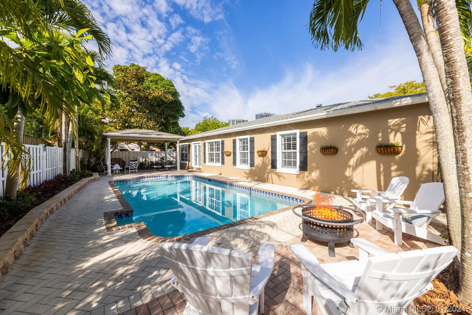Renovated + ready for you to move in! This 4BD/3BA home has been thoughtfully updated with a refreshed kitchen (currently in process), brand new roof (Sept 2020) + custom closets, among other upgrades. Enter through the covered porch to a charming living area with a wood-burning fireplace and into a grand great room with gorgeous vaulted ceilings that overlooks pool + covered terrace. The single-story home has generously-sized bedrooms, including a spacious master suite and 4th bedroom with its own private hallway + en suite bath. Additional features include hardwood floors in all bedrooms and a one-car garage. Located on one of the best streets in the highly-coveted Rio Vista neighborhood, walking distance to riverfront parks, the Las Olas shopping district, great restaurants and more.