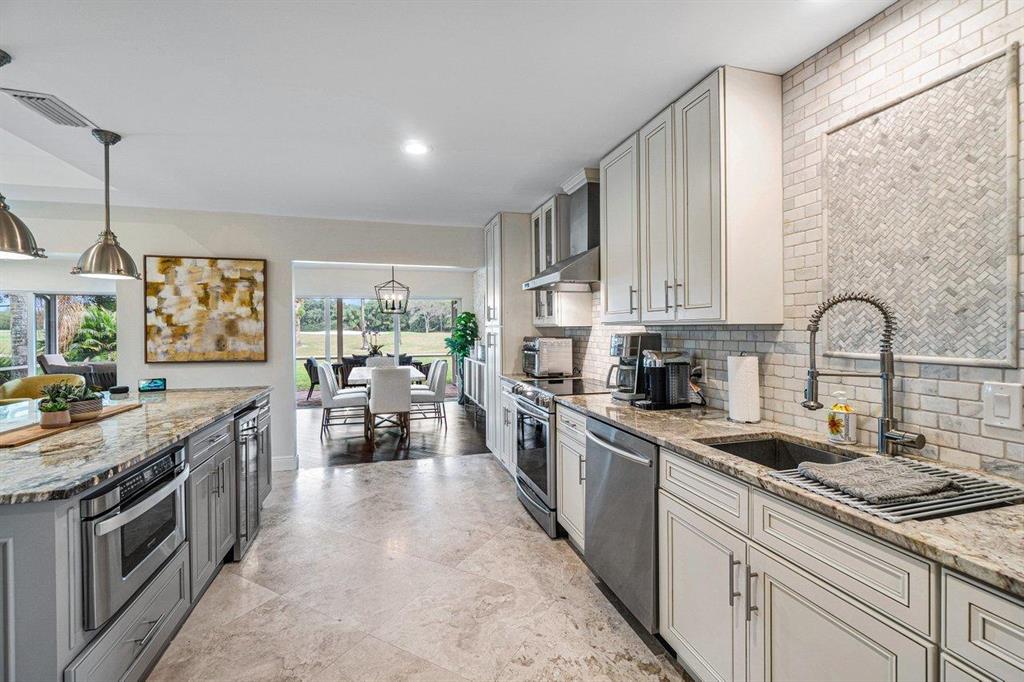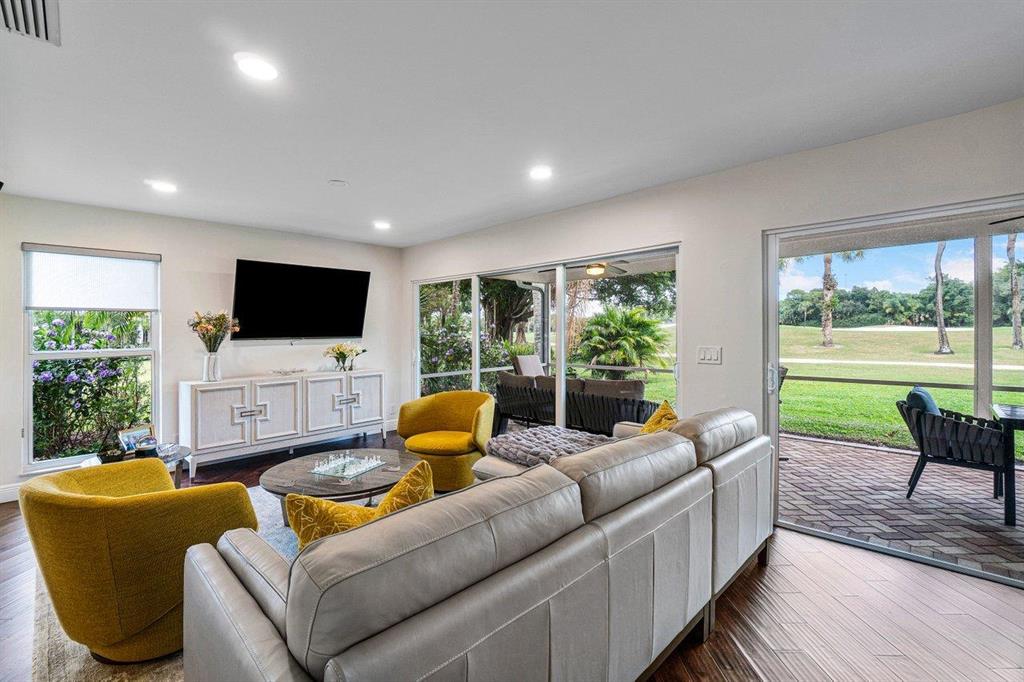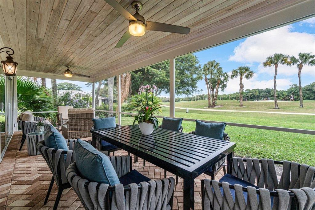 Spectacular 3 bedroom, 2.5 bathroom home which also features a den. This home has fantastic golf course views as it sits on the 3rd fairway of the East Course. All Impact windows, open concept living areas. Brand New A/C installed 1/2021, new gutters and upgraded electrical systems. This home needs nothing! Large chefs kitchen. Garage is large enough for a car and a golf cart. Private terrace located off of the guest bedroom. Home can also be purchased mostly furnished. Please click video link to see exciting, upcoming changes to the West Clubhouse!