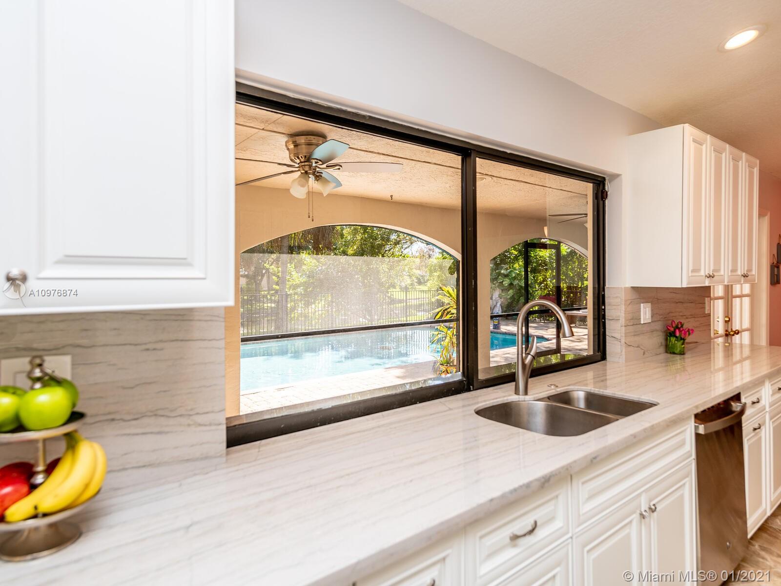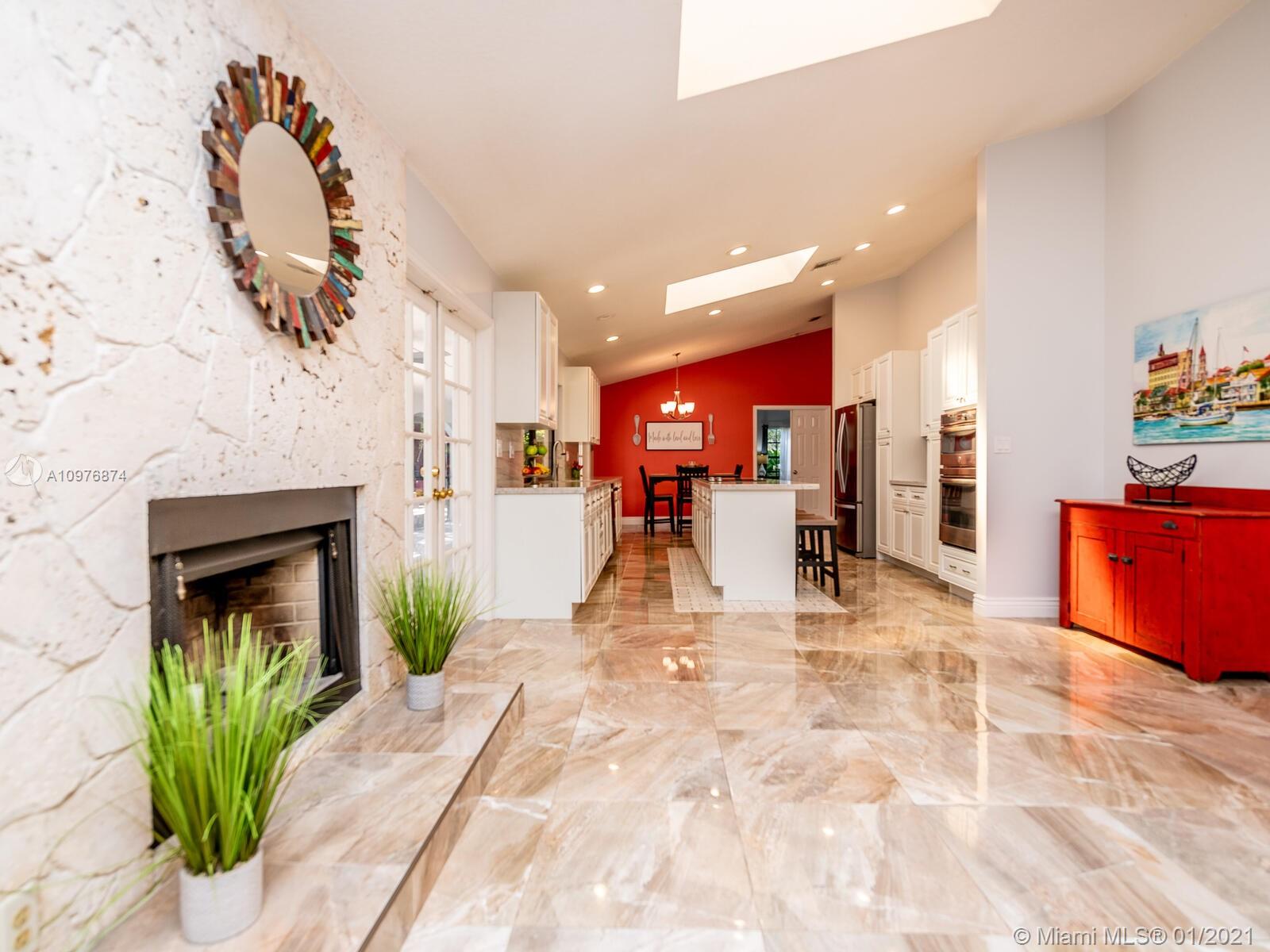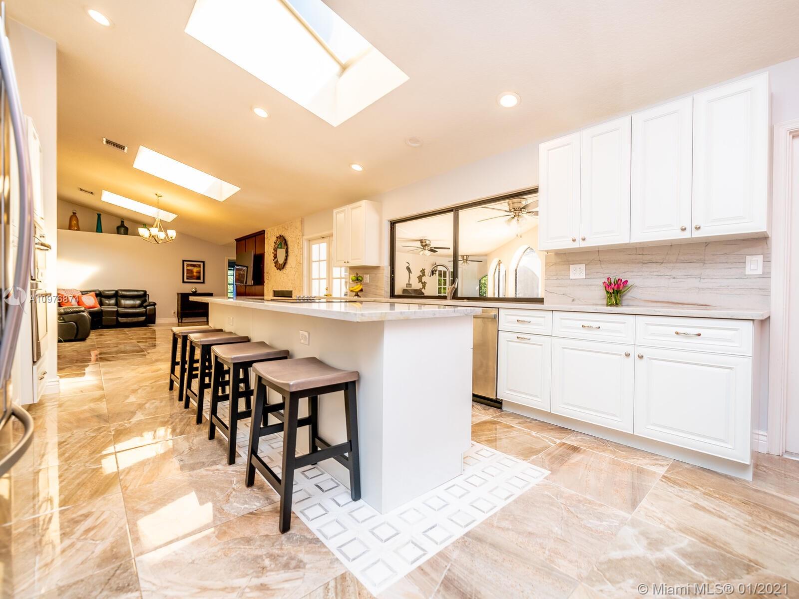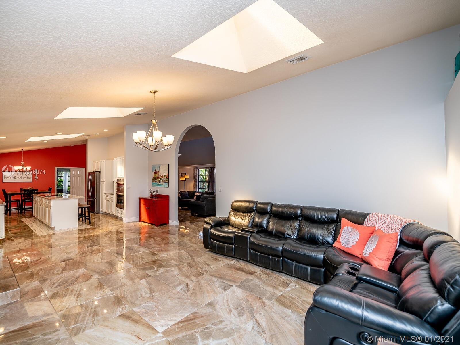 Spacious and bright, waterfront, triple-split 5 bedrooms/4.5 bathrooms, move-in ready and renovated home in Maplewood Isle, a 24/7 manned gated community with only 105 custom-made homes, tree-lined streets and winner of 2016 Mayor's Rose Award for most beautiful neighborhood. The home is located on a large lot in a cul-de-sac with a driveway that fits more than 6 cars. New kitchen and appliances, including a self-cleaning oven and a convection microwave oven. New built-in bar and a gorgeous coral rock fireplace. Renovated bathrooms. Vaulted ceilings and 3 impact-level skylights. Outdoor kitchen and covered back porch, overlooking the large fenced-in patio area and a saltwater pool. New front door and garage doors.