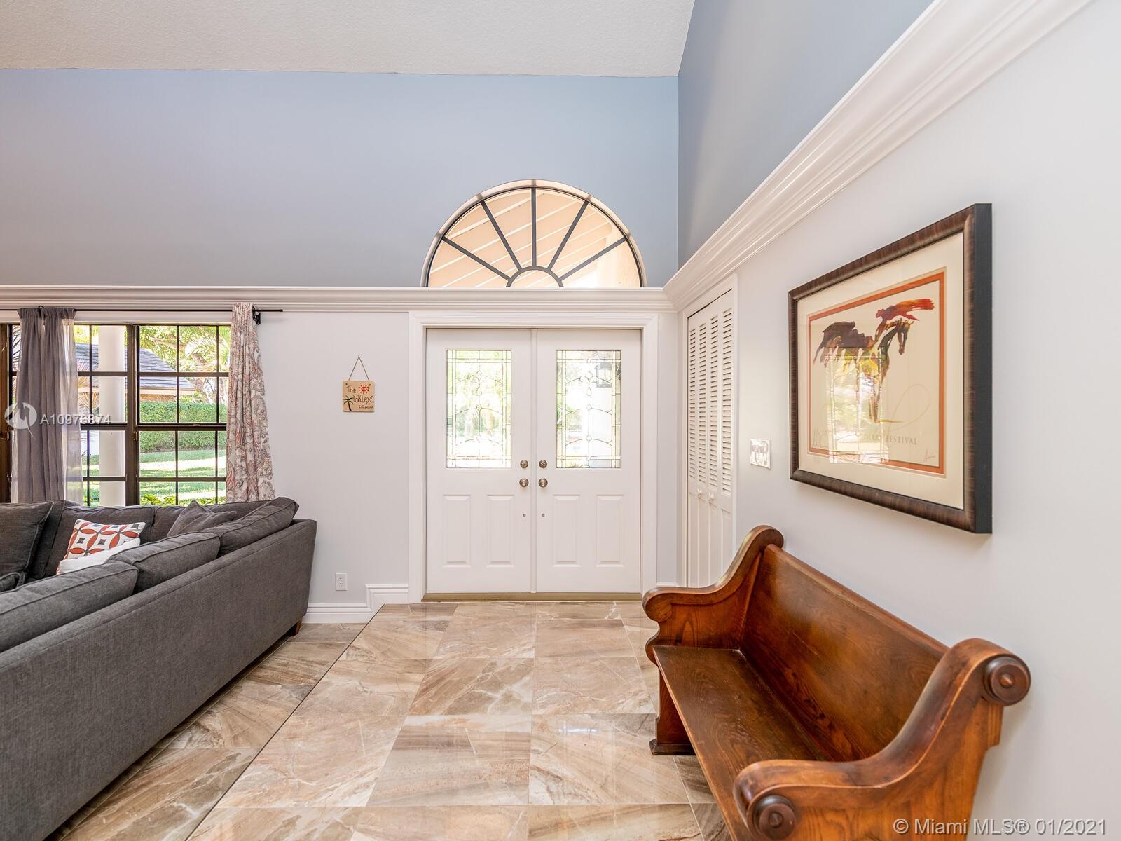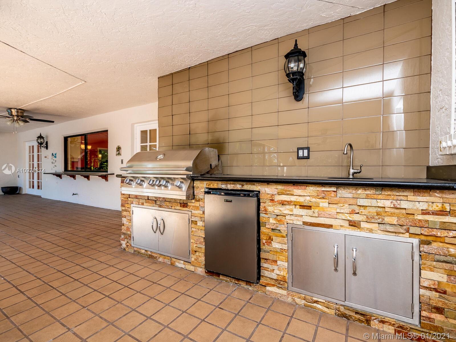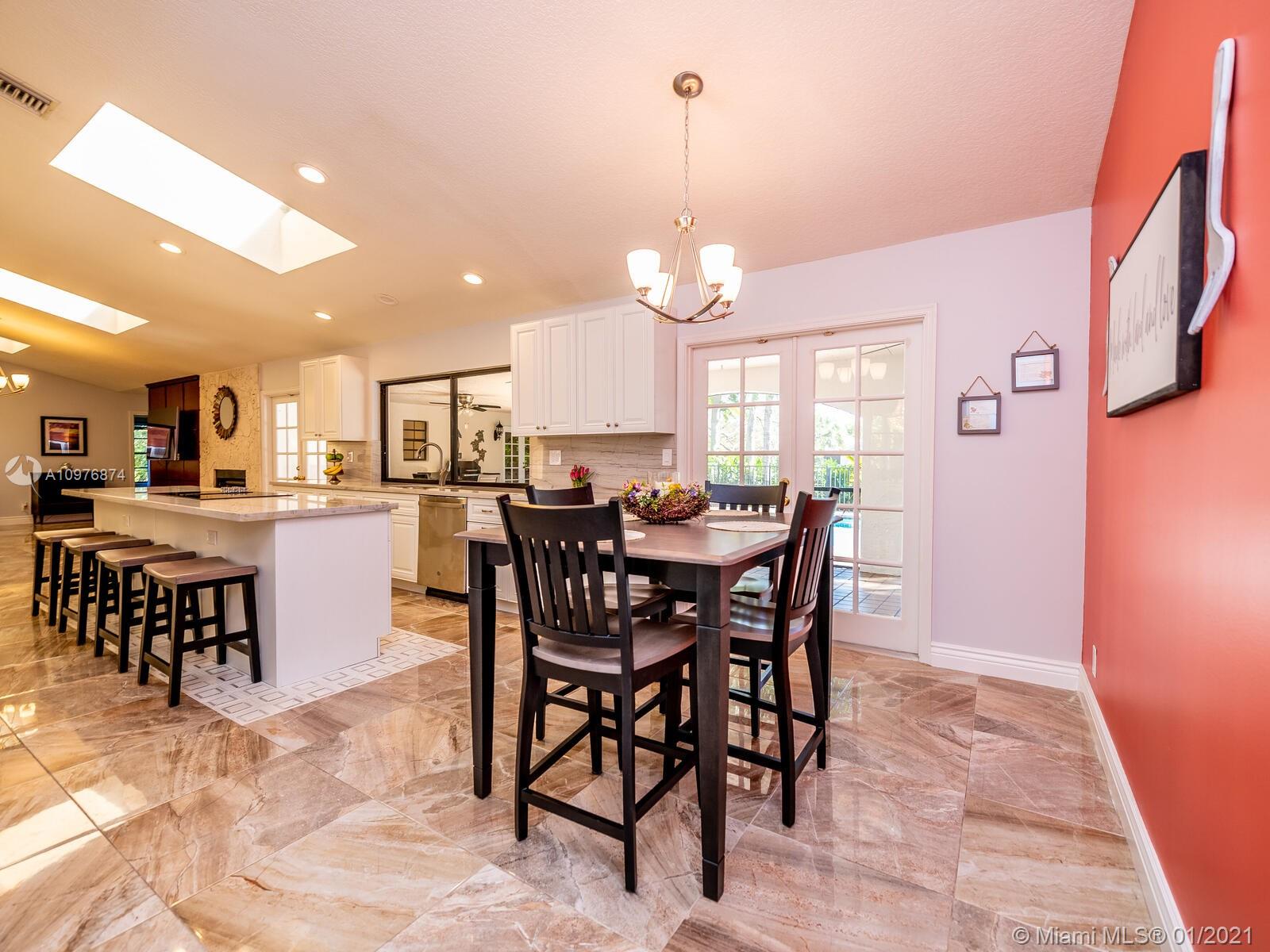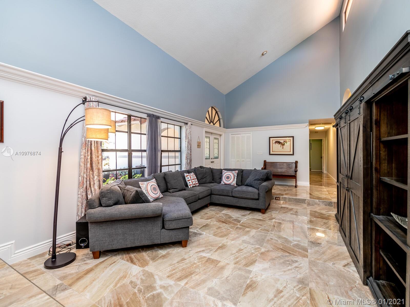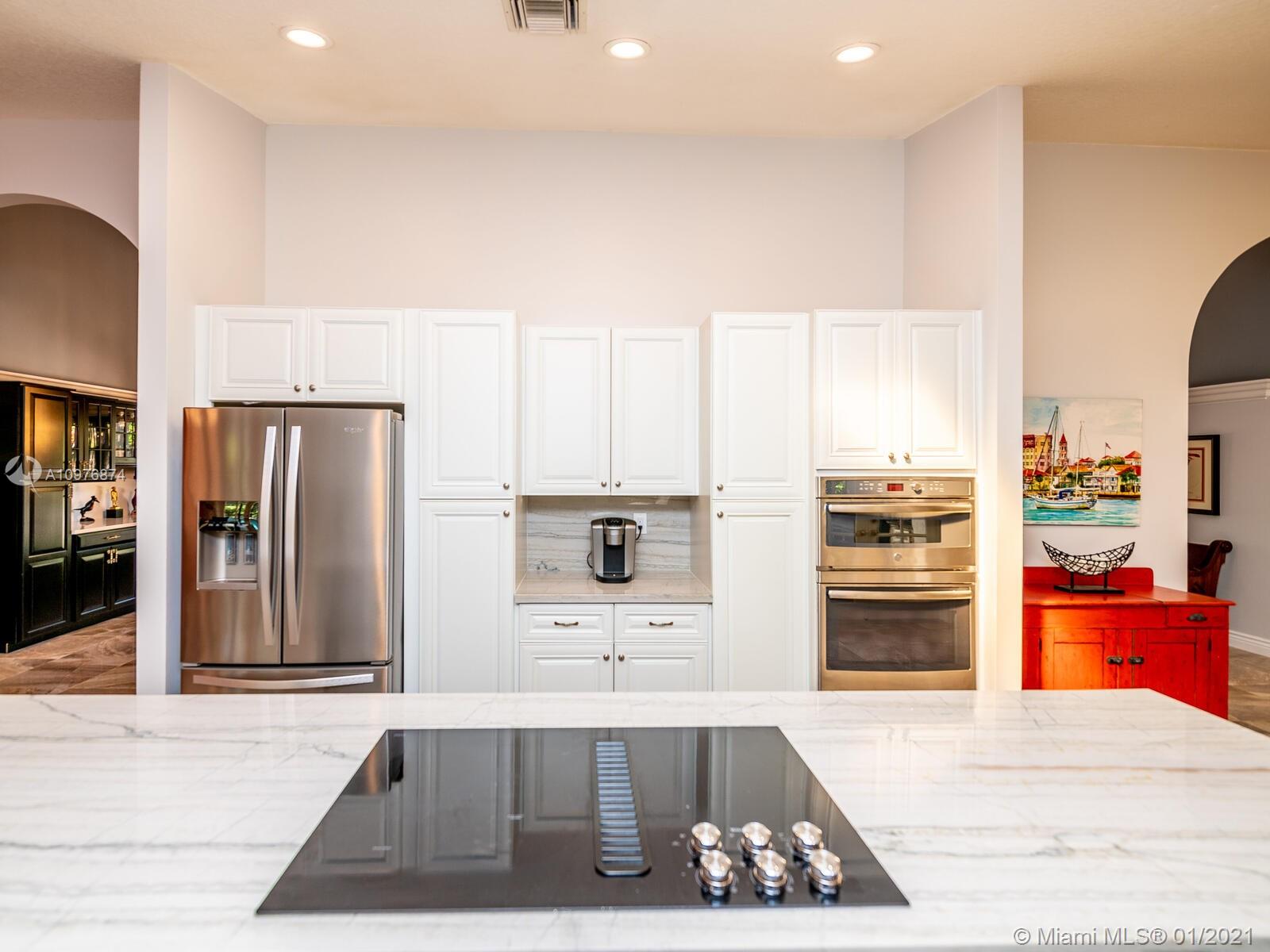Spacious and bright, waterfront, triple-split 5 bedrooms/4.5 bathrooms, move-in ready and renovated home in Maplewood Isle, a 24/7 manned gated community with only 105 custom-made homes, tree-lined streets and winner of 2016 Mayor's Rose Award for most beautiful neighborhood. The home is located on a large lot in a cul-de-sac with a driveway that fits more than 6 cars. New kitchen and appliances, including a self-cleaning oven and a convection microwave oven. New built-in bar and a gorgeous coral rock fireplace. Renovated bathrooms. Vaulted ceilings and 3 impact-level skylights. Outdoor kitchen and covered back porch, overlooking the large fenced-in patio area and a saltwater pool. New front door and garage doors.