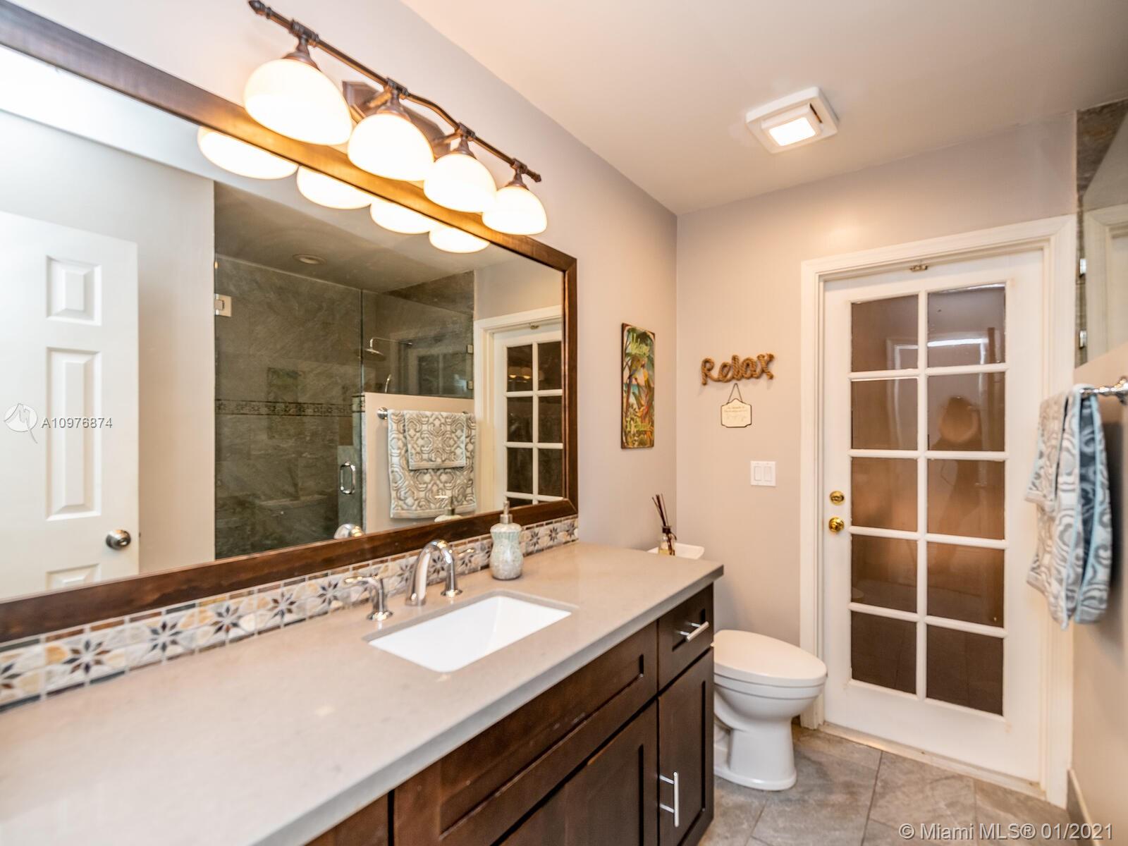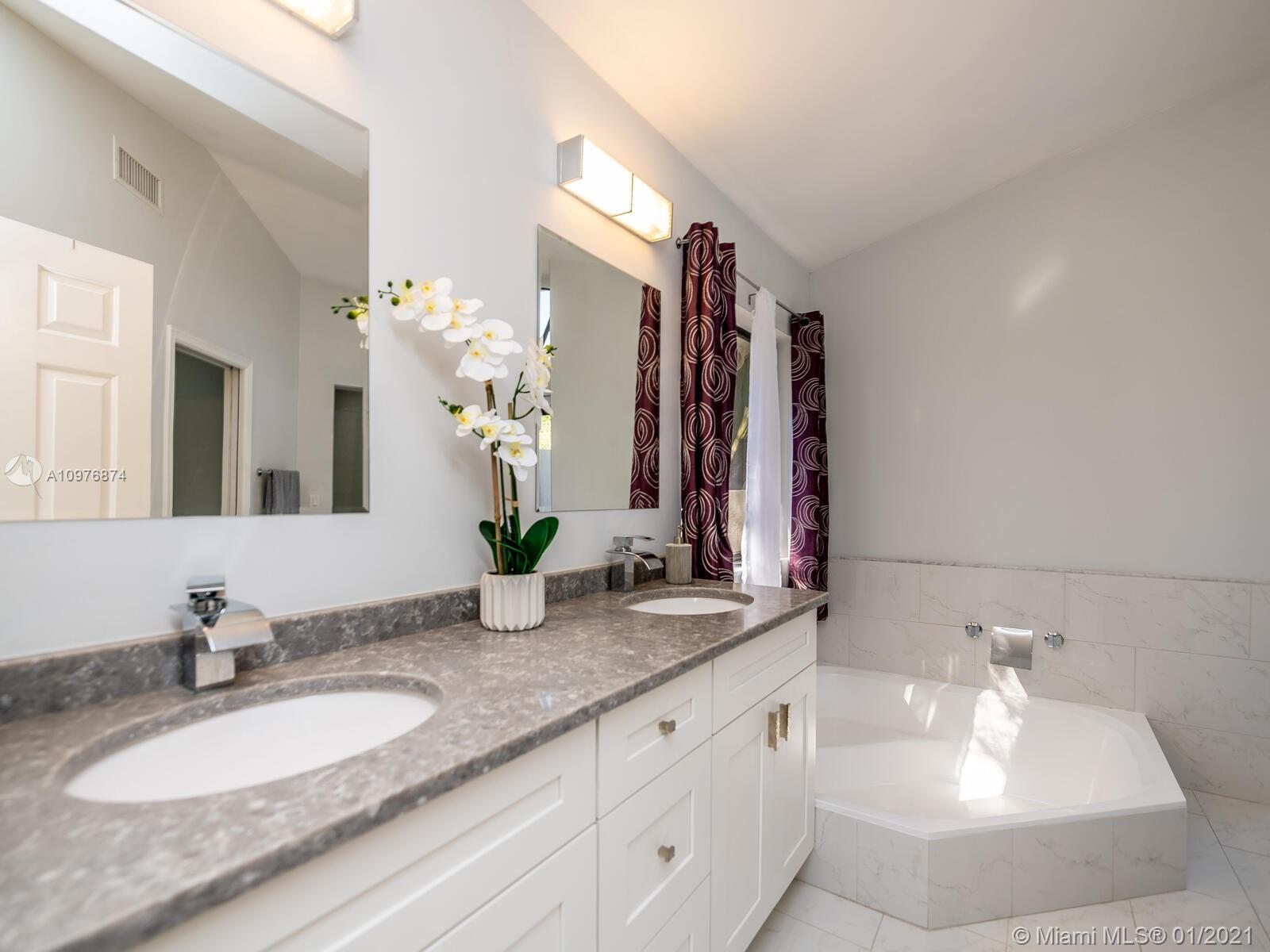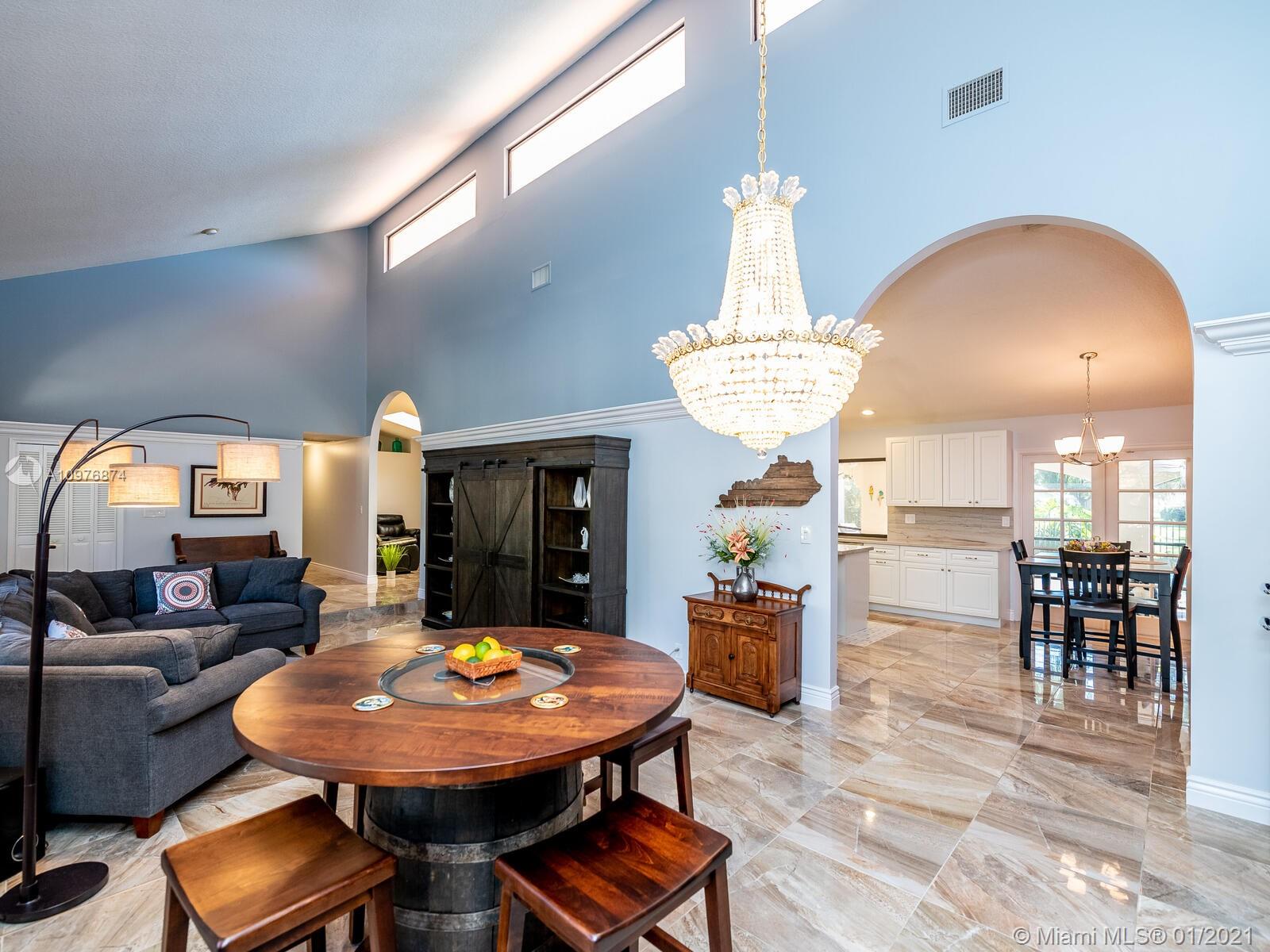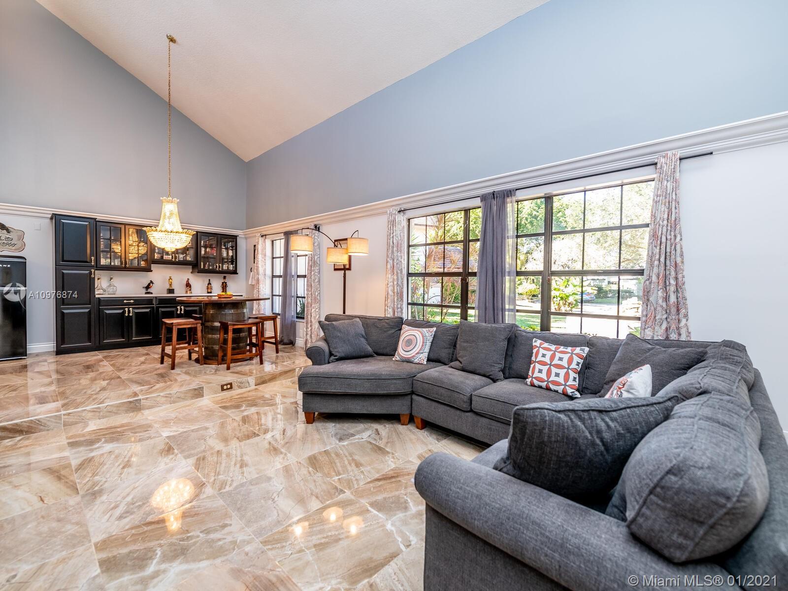 Spacious and bright, waterfront, triple-split 5 bedrooms/4.5 bathrooms, move-in ready and renovated home in Maplewood Isle, a 24/7 manned gated community with only 105 custom-made homes, tree-lined streets and winner of 2016 Mayor's Rose Award for most beautiful neighborhood. The home is located on a large lot in a cul-de-sac with a driveway that fits more than 6 cars. New kitchen and appliances, including a self-cleaning oven and a convection microwave oven. New built-in bar and a gorgeous coral rock fireplace. Renovated bathrooms. Vaulted ceilings and 3 impact-level skylights. Outdoor kitchen and covered back porch, overlooking the large fenced-in patio area and a saltwater pool. New front door and garage doors.