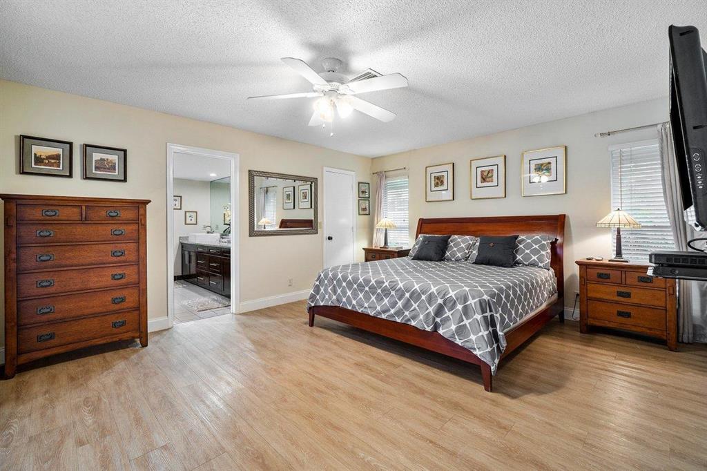 Beautiful light, bright, immaculate home. Wide open floor plan with large kitchen, new stainless steel appliances, large formal living and dining areas and lots of storage. The master suite and front bedroom have custom closets. Three gorgeous baths have walk-in showers with frameless shower doors and hand painted tile. Some impact windows. Shutters on the rest. All rooms have beautiful views. Large Florida room. Crown moldings and flat surface ceilings. The professionally designed tropical landscaping and large saltwater pool offer amazing landscape lighting at night. Many upgrades, easy to see. Low HOA fees.