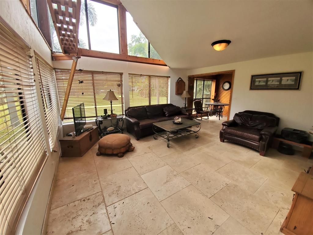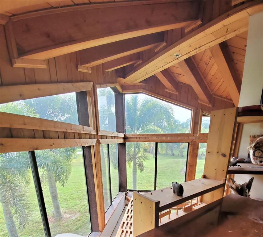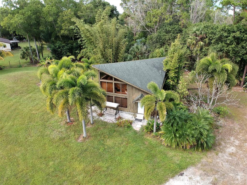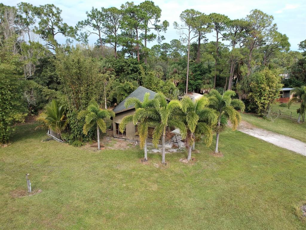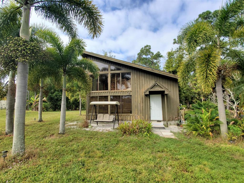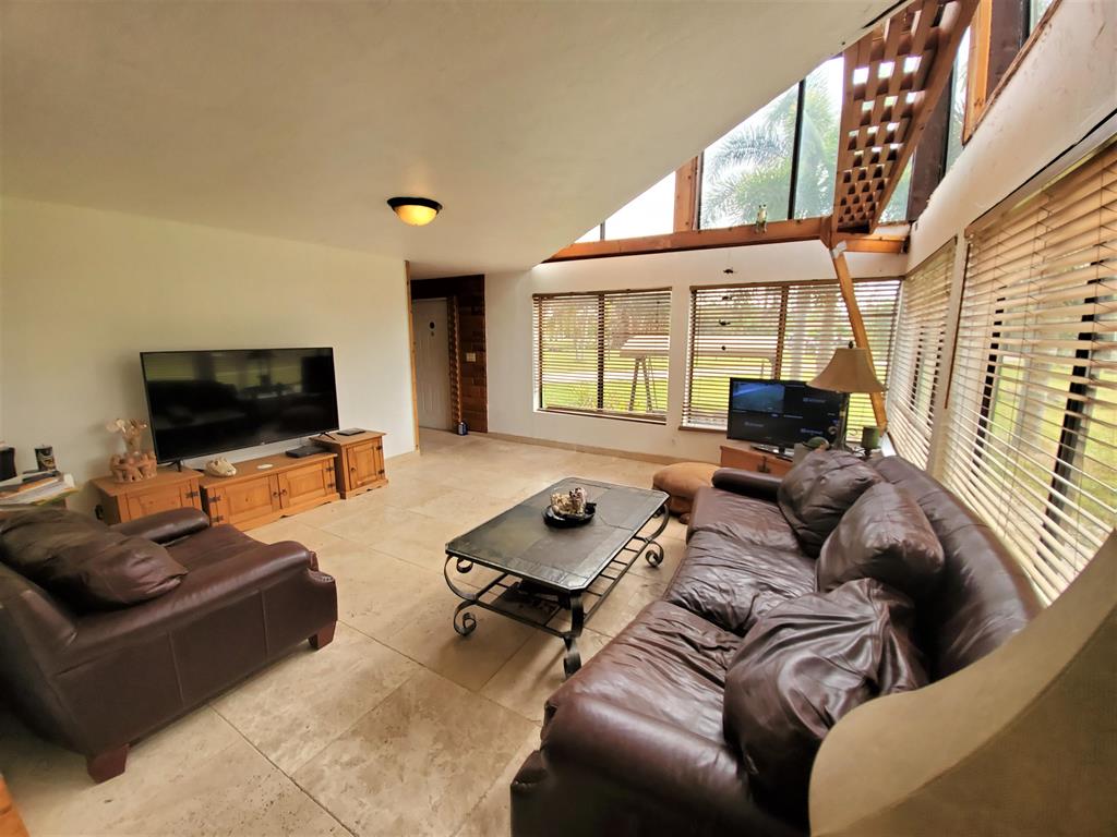 Custom built 2 bed, 1 bath, high and dry 1.15 Acre lot, 2x6 construction, fenced, paved road. Travertine floors, Custom wood tiles and paneling. Spiral staircase, Natural light is no issue here, Both the North Corner and the South corner of the home have floor to ceiling windows, a wooden arrow points due South in ceiling, large bay window in kitchen, new water heater 2020, new a/c wall units 2019/2020, an abundance of mature palms, bamboo, plumeria, and plenty of room for a barn, pool, garage, and all your toys and pets. Drain field 2002, water system 2018, roof 2008, travertine floors and bathroom 2008
