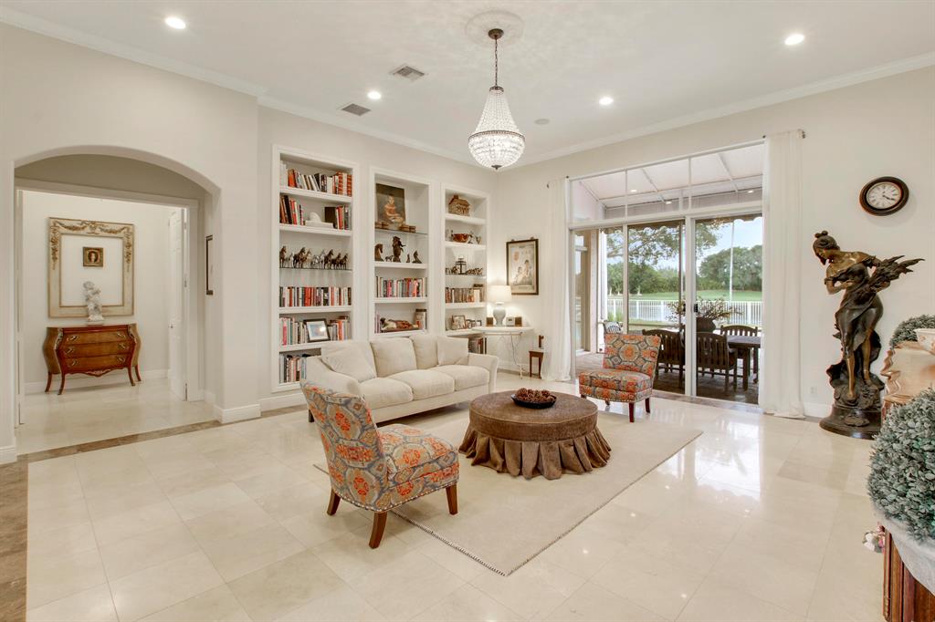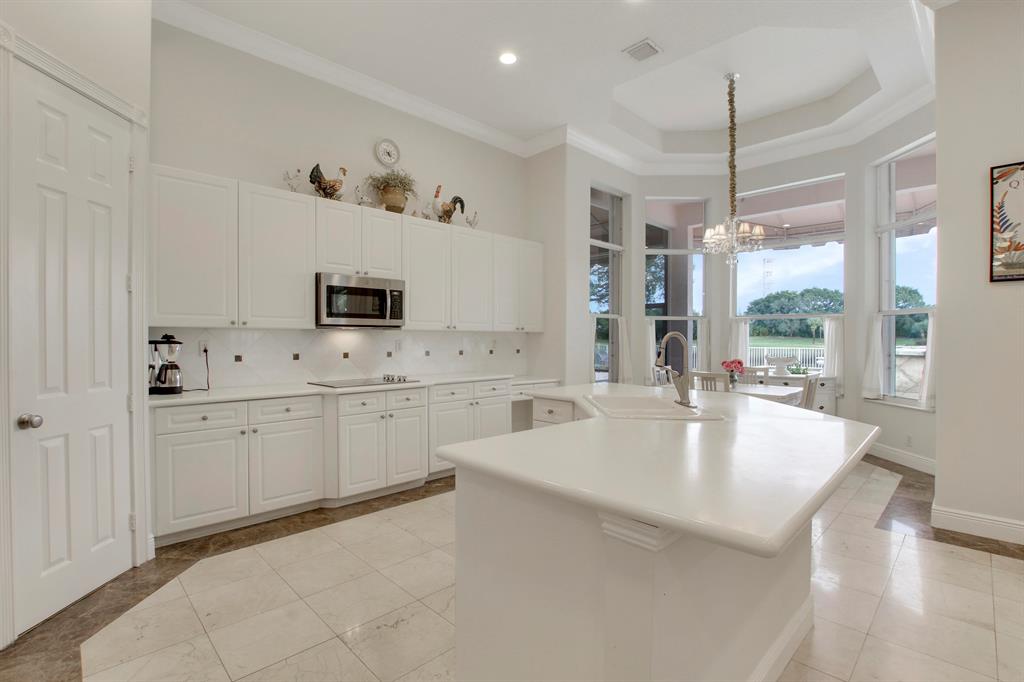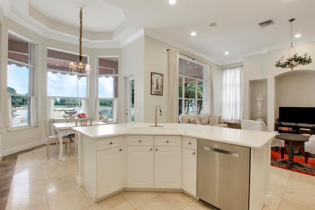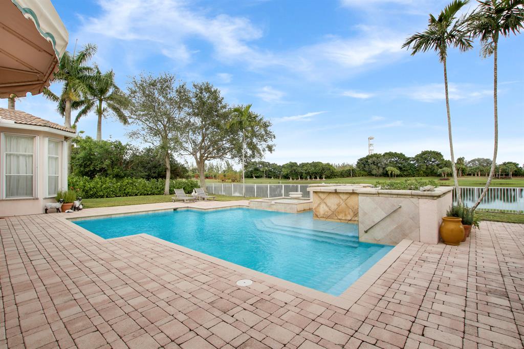 This Estate home offers all of the space you could desire with 4 br plus a den, split floor plan. The master suite is a beautiful retreat with a bonus sitting area, lake and pool views and a spacious his and hers master bath. The private backyard boasts a resort style pool/spa and a large patio with stunning views of the lake and golf course from the screened in patio. The kitchen is open concept, perfect for entertaining with all updated stainless steal appliances and views of the oasis backyard. The clubhouse has been completely redone with top of the line gym equipment, locker rooms and an unsurpassed golf course designed by Arthur Hills, the golf and tennis facilities are what sets them apart from other Palm Beach country club communities. Not to mention NO MANDATORY MEMBERSHIP!