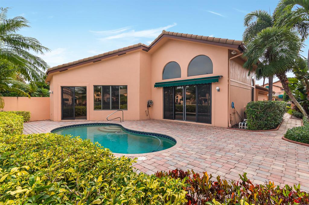This beautifully appointed single-family residence offers Florida living in a fabulous Country Club community (membership optional). With panoramic lake views, a unique custom pool, and comfortable lounging area, you will enjoy entertaining al fresco. This 3 bed/2 bath 2850sq.ft home offers plenty of space for a family gathering in the open-concept dining and living area. You will appreciate the updated gourmet kitchen featuring large center Island, 42'' cabinets, granite countertops, stainless steel appliances and plenty of additional storage. This home is unlike any other as it showcases a 250sq.ft. extension, which can be used as a den, office or casual dining area. Relish in the privacy of your first floor master suite with its tranquil views and newly updated master bathroom,