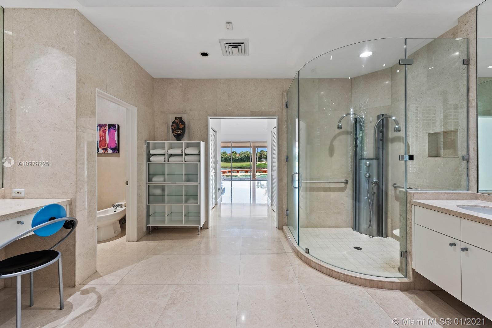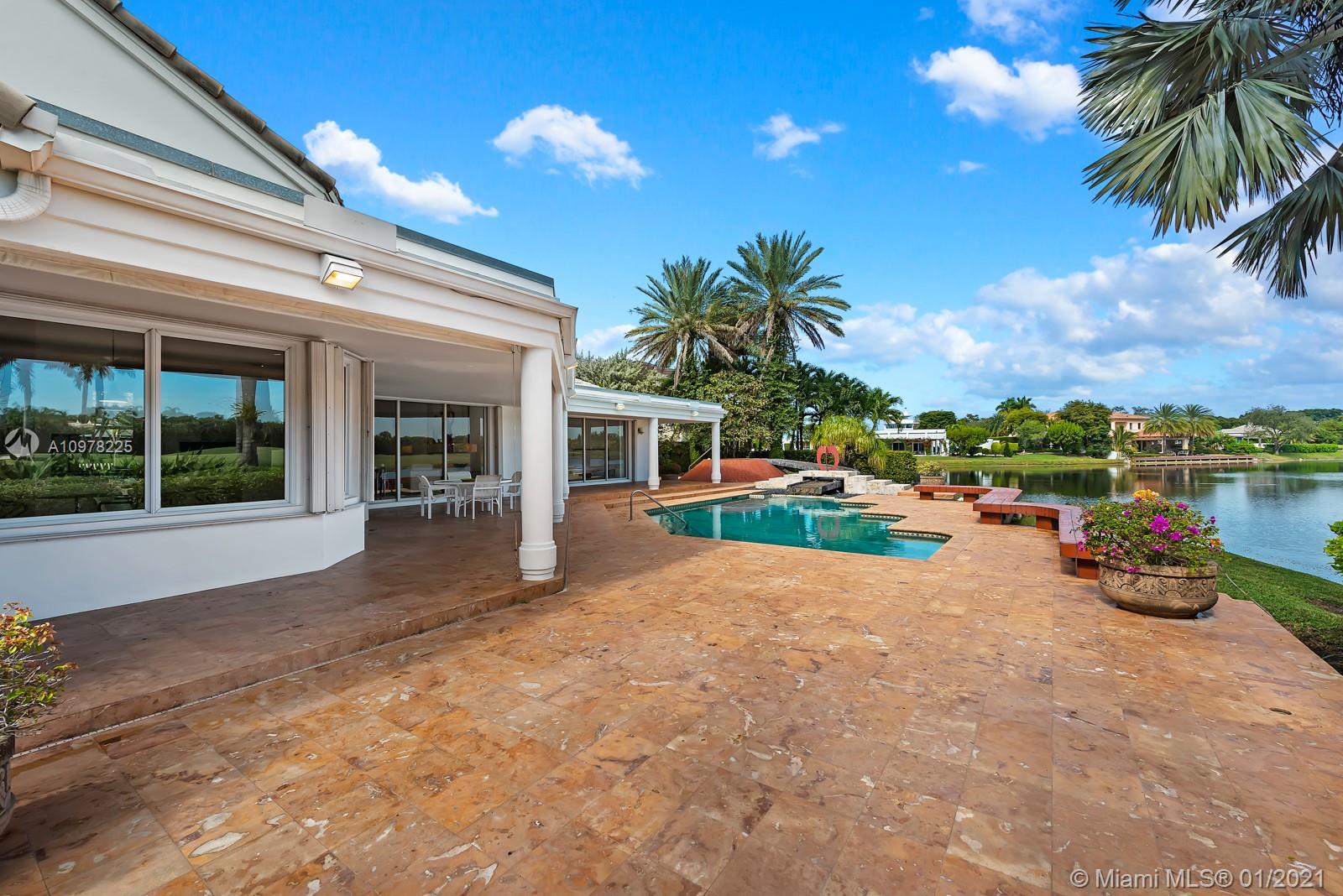 This Splendid Contemporary home is located in the exclusive guard-gated private community of Doral Estates. Generous 4 bedroom, 3 bath home has unobstructed views of both the lake and golf course. The spacious, Open Floor Plan with 14 ' ceilings and marble floors is an Entertainer's Dream! Gourmet kitchen features granite countertops and stainless steel appliances. Large Master Bedroom with en-suite whirlpool tub, separate shower and custom walk-in closets. Fabulous features include formal living & dining areas, complete wet bar, ice maker & wine cooler. Enjoy outdoor patio with heated pool, jacuzzi with waterfall features while you lookout onto the spectacular lake & golf course. Hurricane shutters & partial Impact Glass. 20KW, 150 gal. diesel whole house generator. Ready to move in!