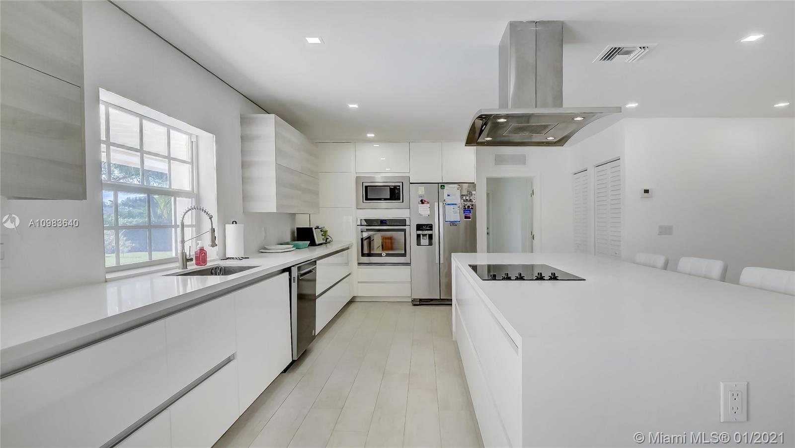 Stunning one-story home located on a wide canal in Pinecrest. 3836 sqft interior Area. This extremely bright 6 beds/3 baths +office home has been completely upgraded with the modern finishes in 2018 including the replacement of the electrical wiring and plumbing system. The open living and kitchen area overlook the pool and the canal–with quartz countertops, SS appliances. Impact windows/doors throughout with blinds and shades. All closets are built-out with shelves and drawers. Uniform porcelain floors throughout the house. 3 central ACs. Transfer switch installed for easy generator connection. Master suite has a view of the pool, large walk-in closet, dual sinks, and separate showers and bathtub. Ideally situated on a quiet street, yet close to major roadways and excellent schools.