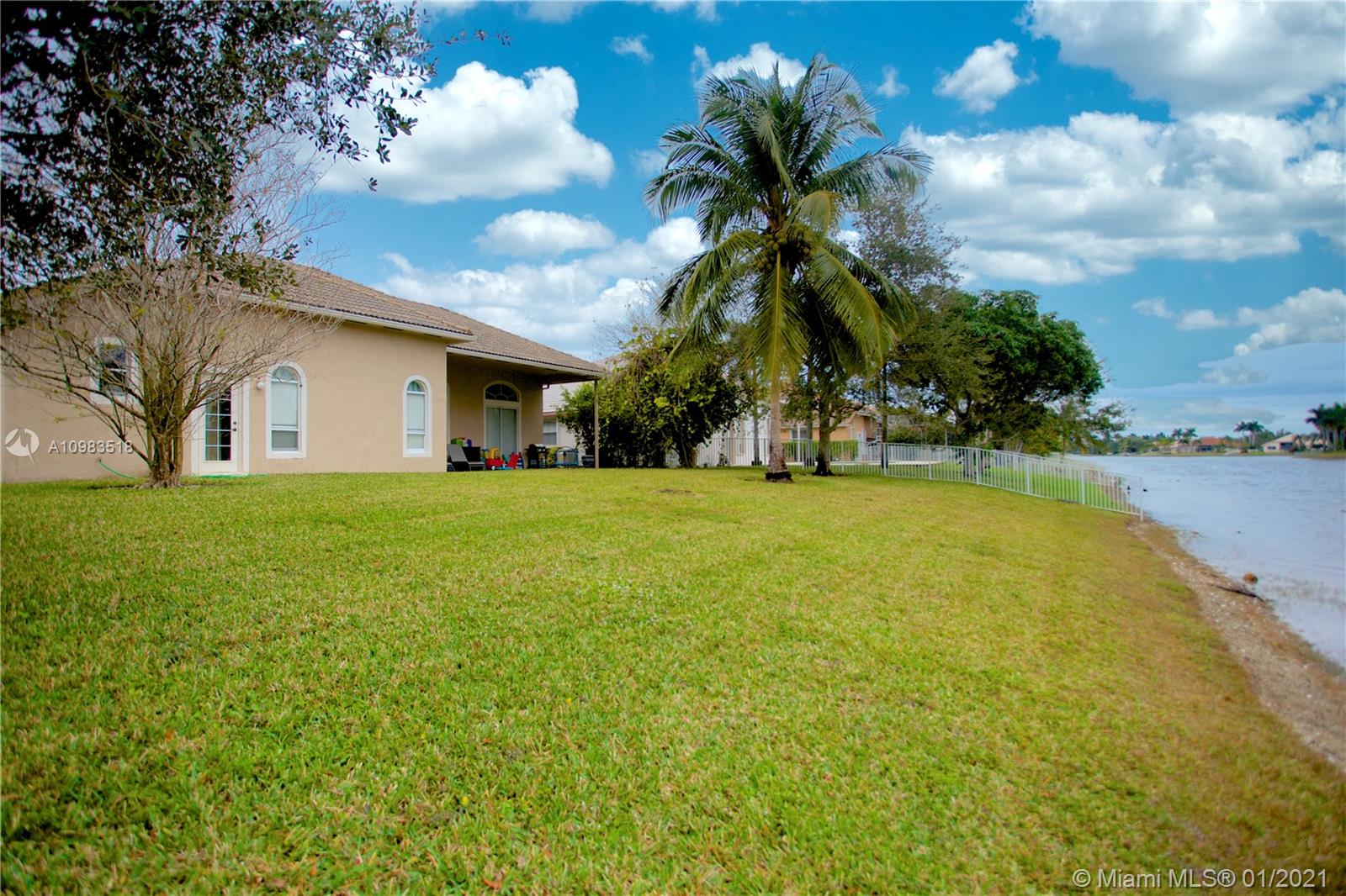 Rarely available lake-front 4 bedroom 3 full bath + office in highly sought-after Pembroke Falls. The vaulted ceilings and spacious split floor-plan give the home a grand feel from the moment you enter. Large master suite w/ lake views and luxurious bathroom w/ roman tub and separate shower. Granite countertops and stainless steel appliances highlight the open-concept kitchen opening to the large family room. Gas range and water heater. AC units only 3 years old! Large lot with wide lake view and ample 2-car garage. HOA includes 24-hour manned guard gates, cable, fiber-optic internet, alarm, clubhouse, full fitness center, huge swimming pool, tennis, and playground/parks. Ideal location zoned to great schools, next to I-75, and Pembroke Gardens. This is the one!
