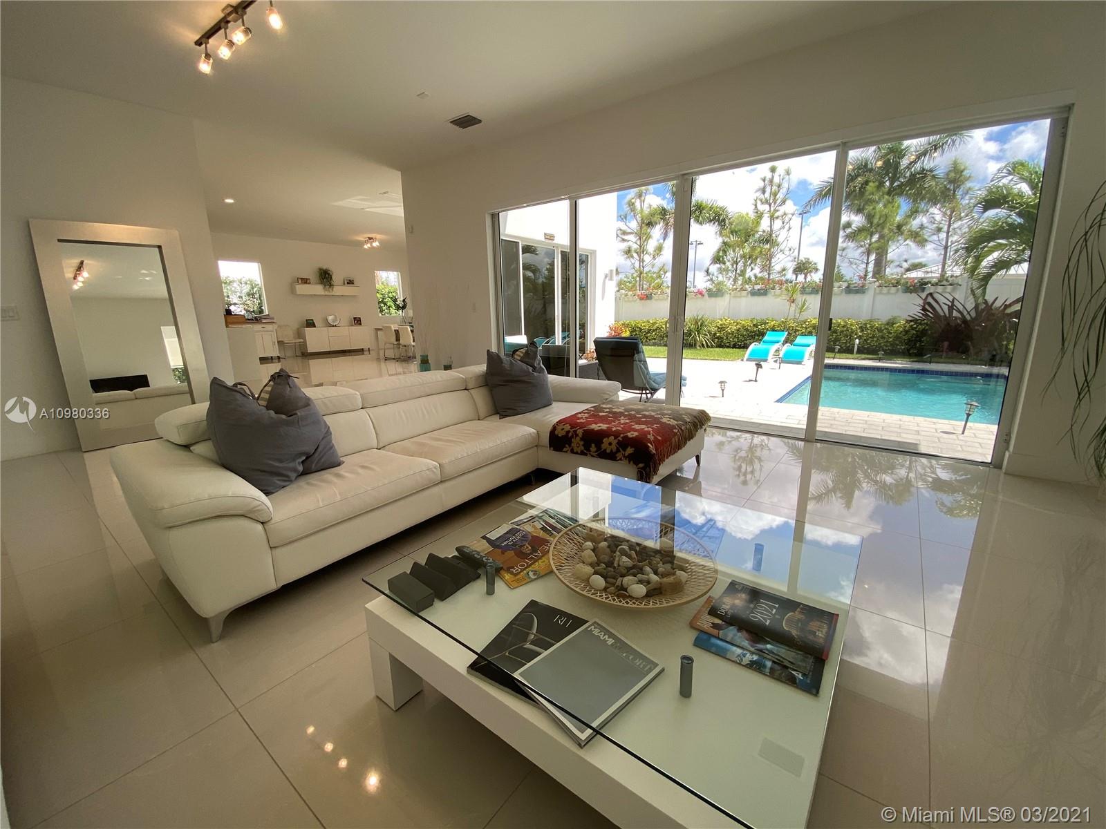 Modern 60 Luxury community in Doral. Two story home 5 bed/5 bath (4 bed in suite, 1 downstairs with full bath with access from the pool area. Open floor plan, gourmet kitchen ,quartz counter-top and backslash, steel stainless appliances, microwave and oven combination, wine cooler. Porcelain floors in first floor, wood oak flooring upstairs. Smart home technology, energy efficient water heater, security system , full size washer and dryer, remote control garage door, monoxide detectors. Enjoy the amazing outdoor BBQ kitchen and pool. House is on PRIMER LOCATION no houses behind your house. 2 cover car garage and can park 2 cars outside. Gated community with 24 hrs security, club house features party room, gym, pool and BBQ area. Don't miss this beautiful home so well maintained by owners.