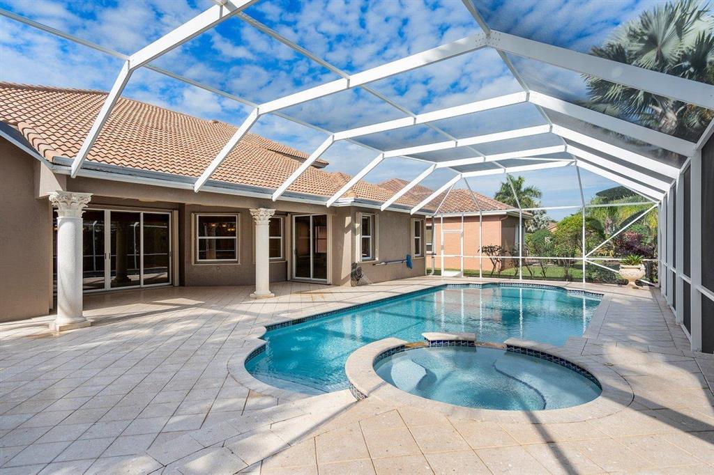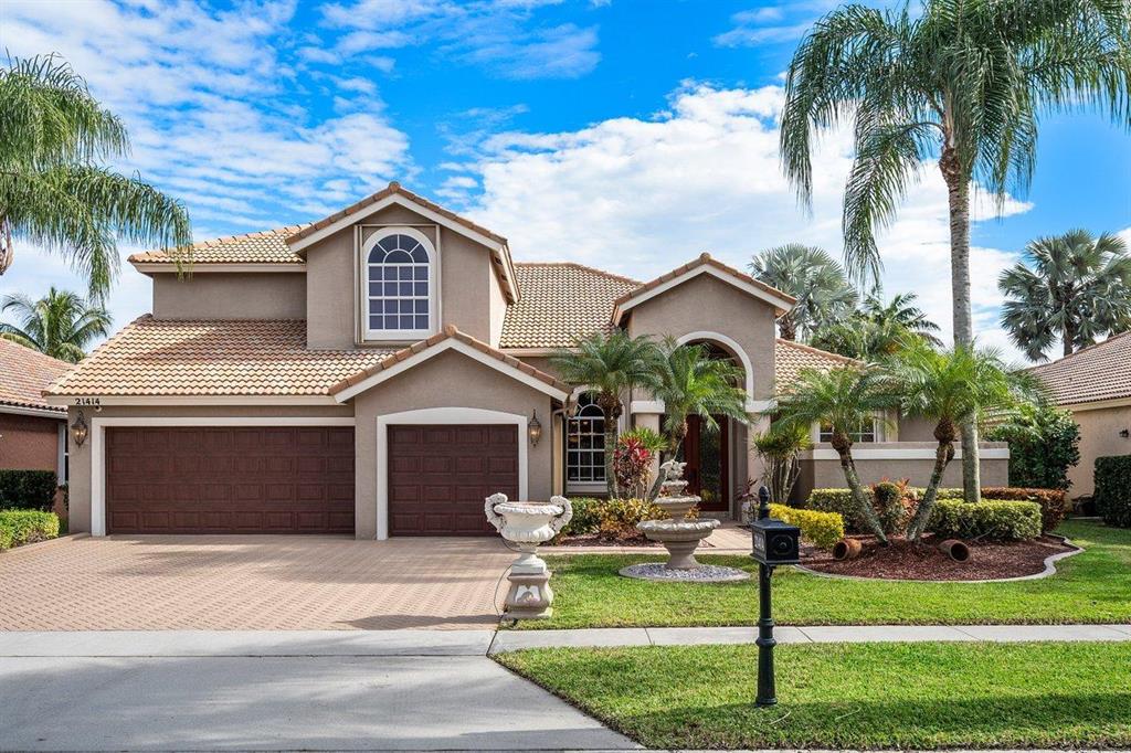 Welcome home! Located in prestigious Boca Falls, this large 5 bedroom 3 bath home plus 3 car garage, is ready for new owners! This one won't last long! Fresh and bright, on a .22 acre lot, this home boasts meticulous landscaping and curb appeal, an oversized pool/spa, beautiful lanai, hurricane accordion shutters, high ceilings, marble floors and wood flooring (no carpet)! Master bedroom and guest suite is conveniently located downstairs. 3 bedrooms and full bath upstairs. Updated Kitchen with SS appliances, open to living room. Complete with pool screen, builtin closets and an epoxy coated garage floor! A rated schools! Enjoy world class amenities including a renovated clubhouse, fitness center, resort pool, tennis, basketball, playground & minutes from South County Park w/ golf course.