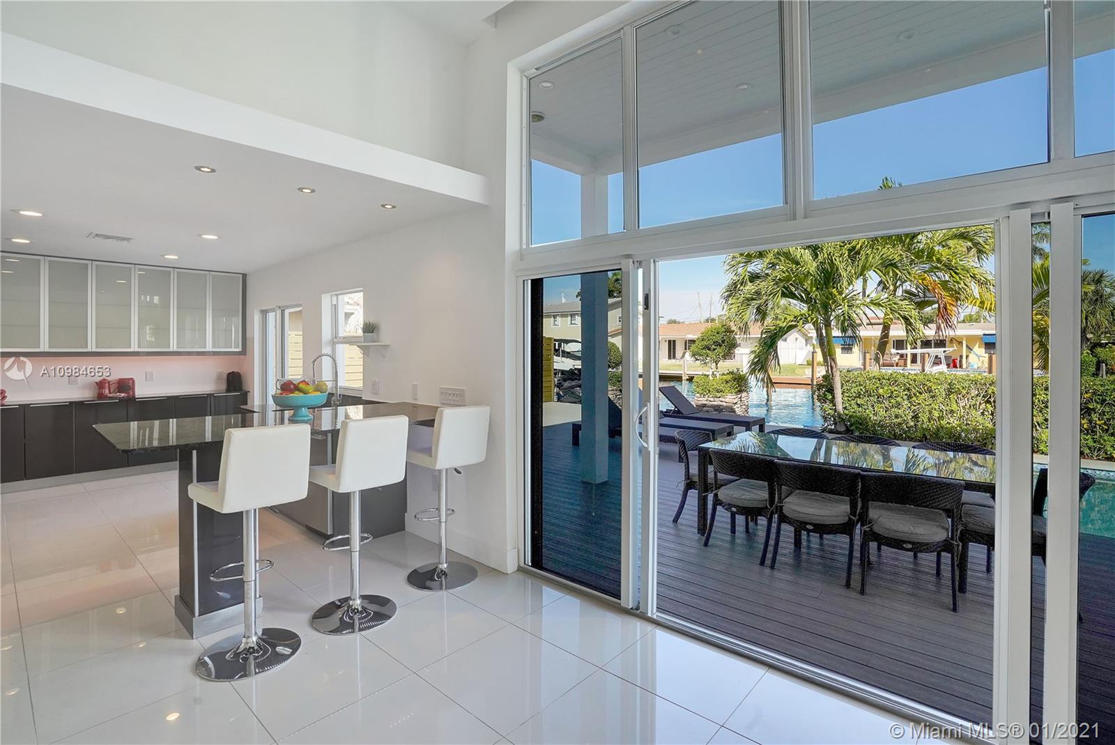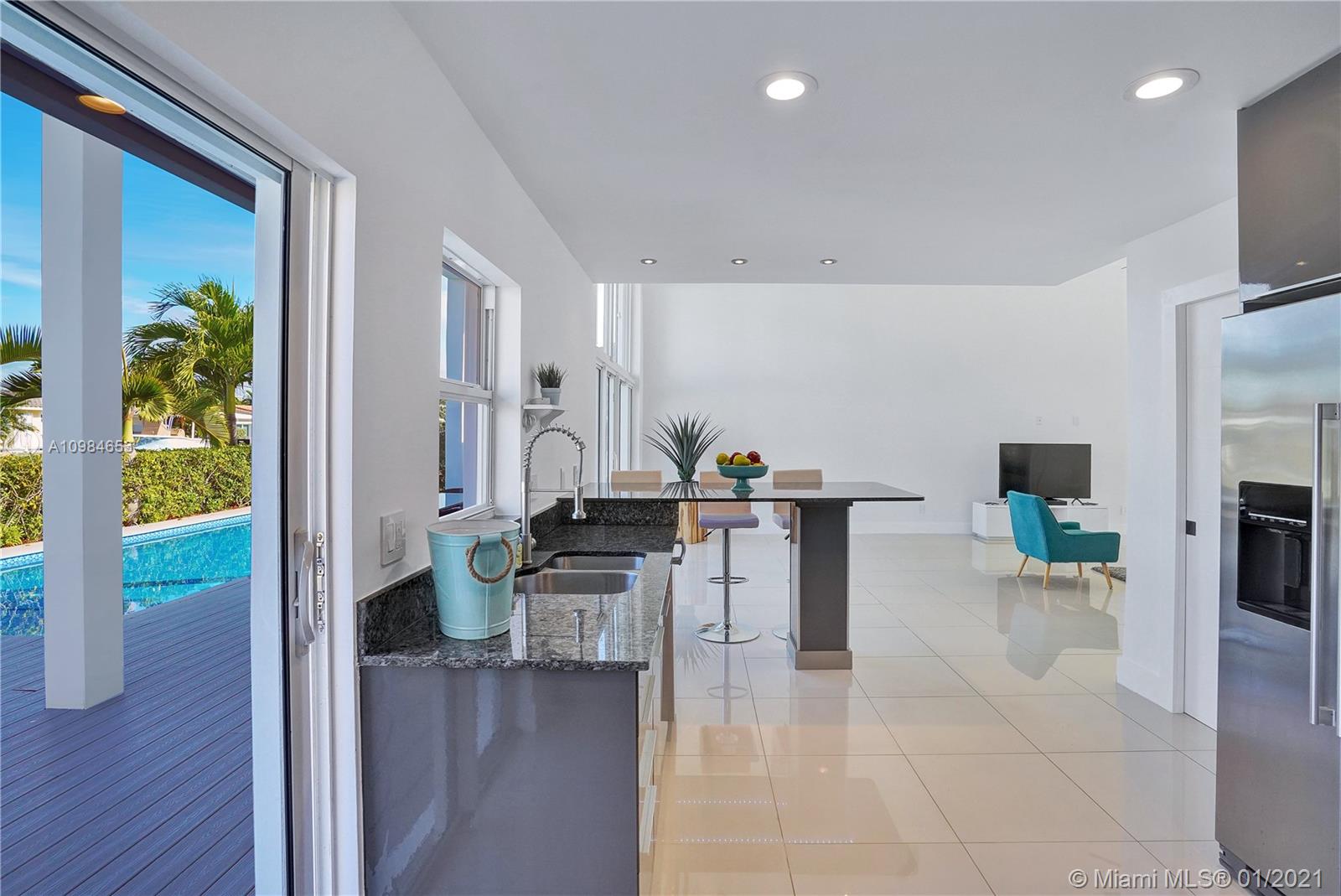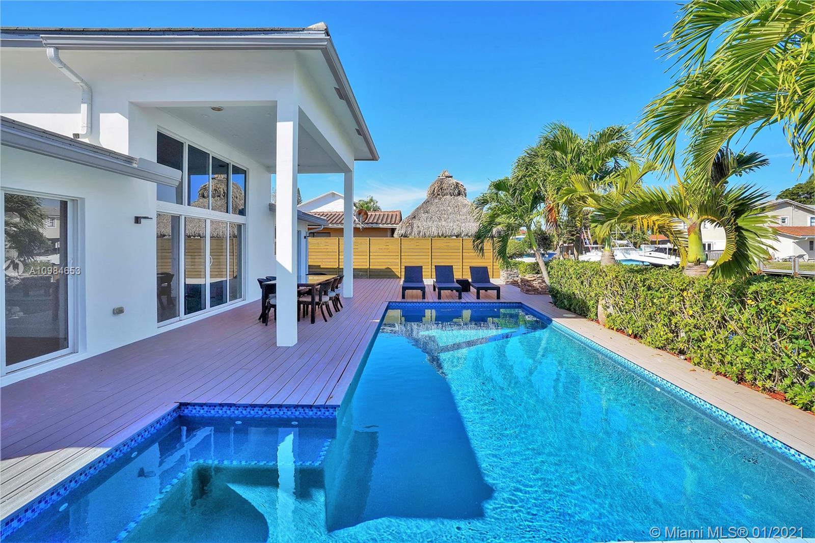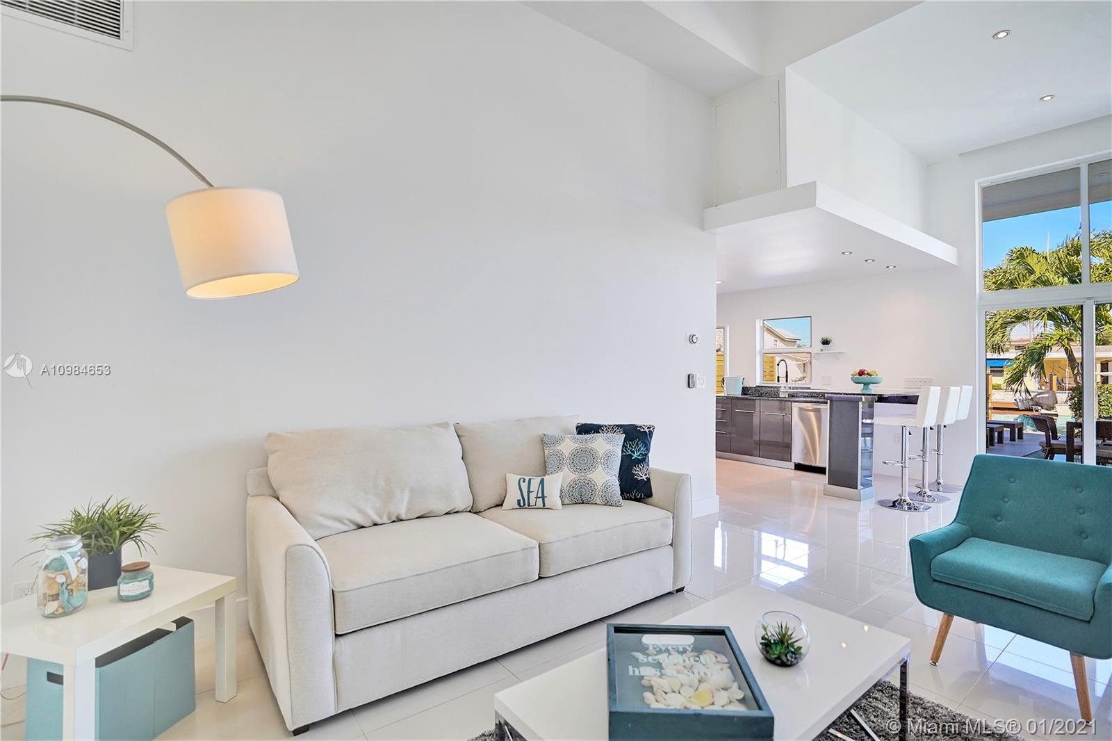 Welcome home to this modern 3 bedroom, 2 bath waterfront beauty with impact doors and windows. Newer construction with gorgeous volumes throughout, discerning buyers will love this bright, tastefully appointed boater’s paradise with 60 feet of deep-water dockage, no fixed bridges and one minute from the Intracoastal waterway. Beautiful heated pool with built-in spa, perfect for entertaining friends and family. Ideal location just minutes from the beach and social amenities. This gem is situated on a quiet residential street with no through traffic. Call today for a visit!