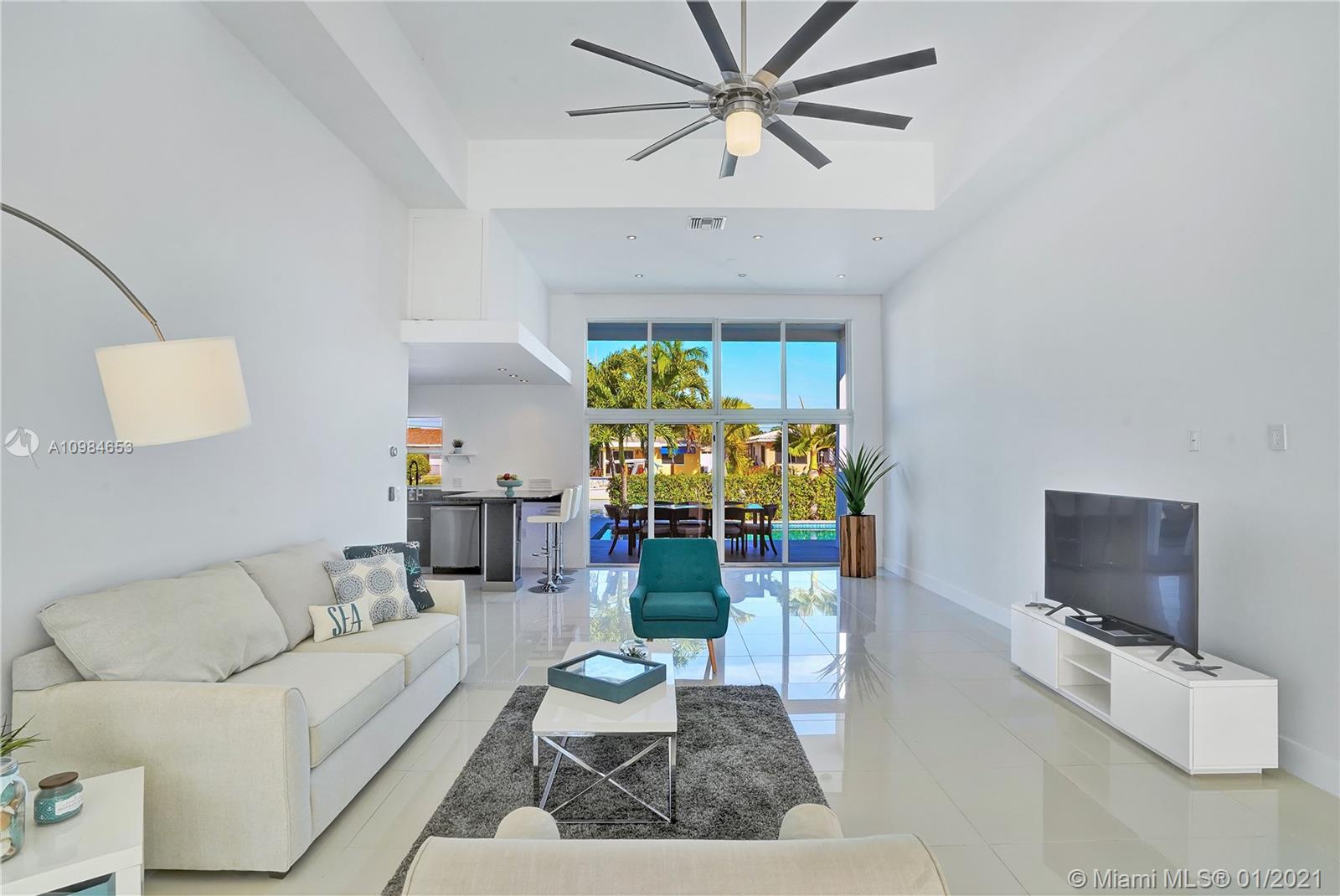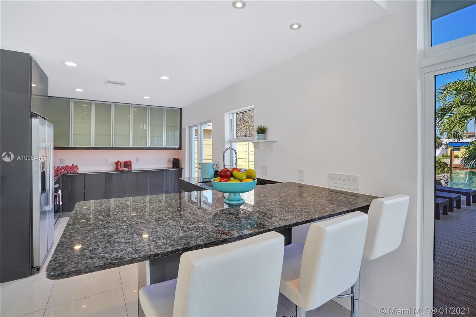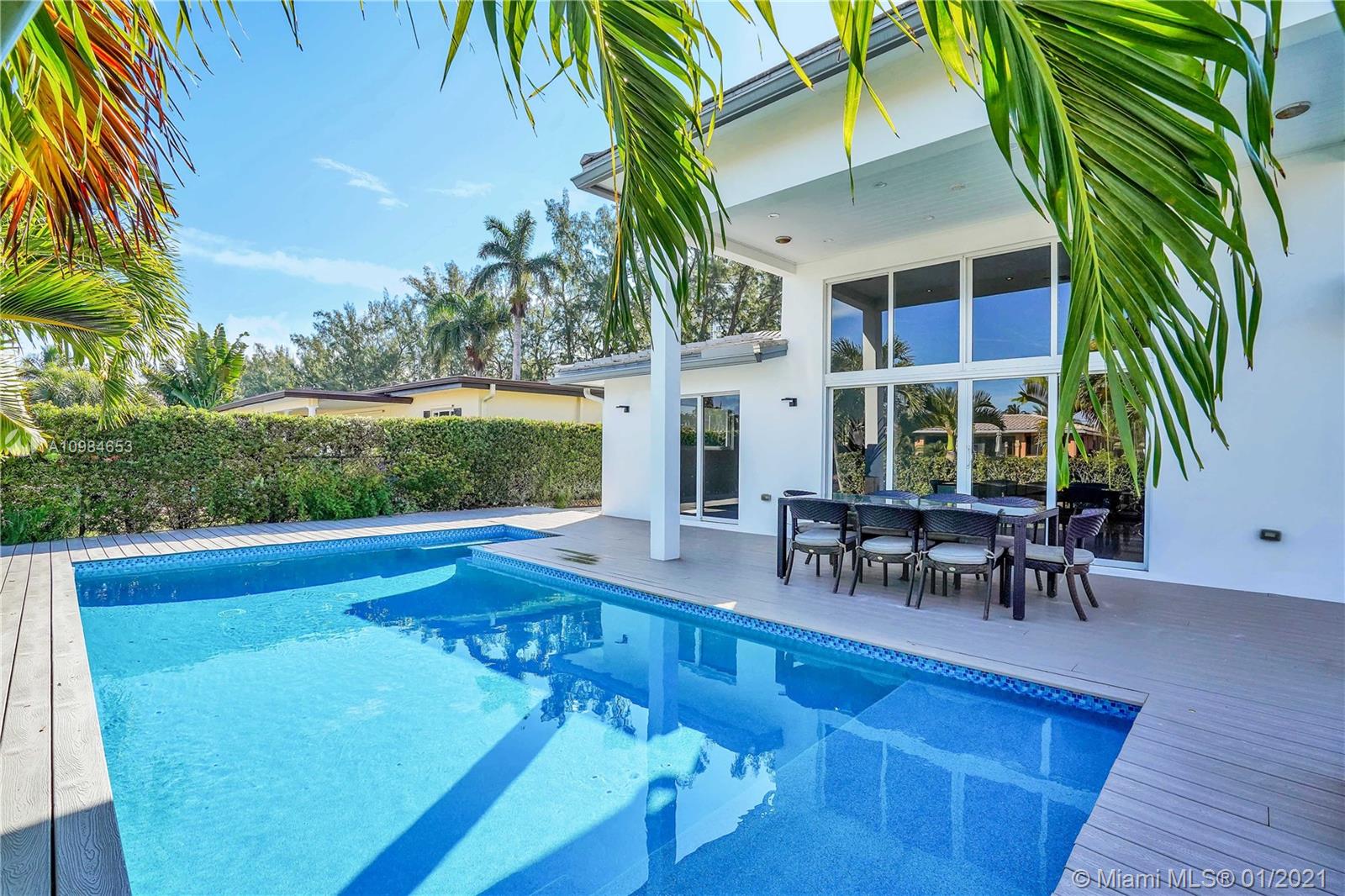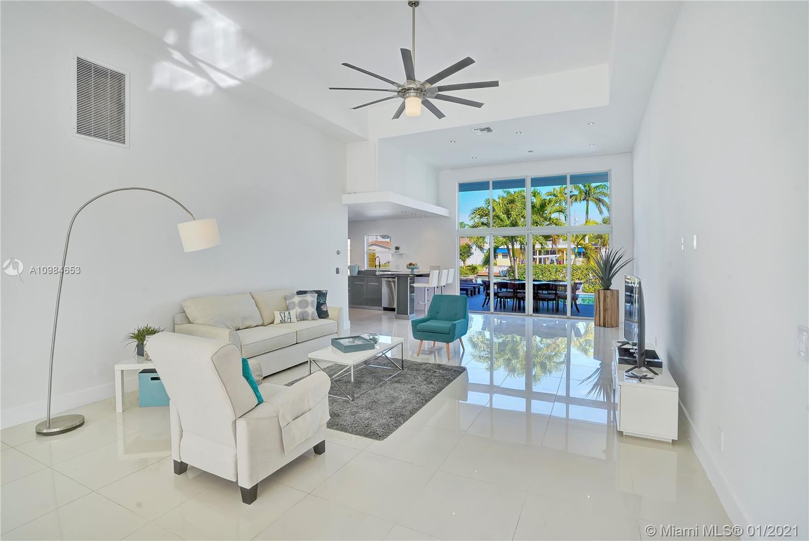 Welcome home to this modern 3 bedroom, 2 bath waterfront beauty with impact doors and windows. Newer construction with gorgeous volumes throughout, discerning buyers will love this bright, tastefully appointed boater’s paradise with 60 feet of deep-water dockage, no fixed bridges and one minute from the Intracoastal waterway. Beautiful heated pool with built-in spa, perfect for entertaining friends and family. Ideal location just minutes from the beach and social amenities. This gem is situated on a quiet residential street with no through traffic. Call today for a visit!