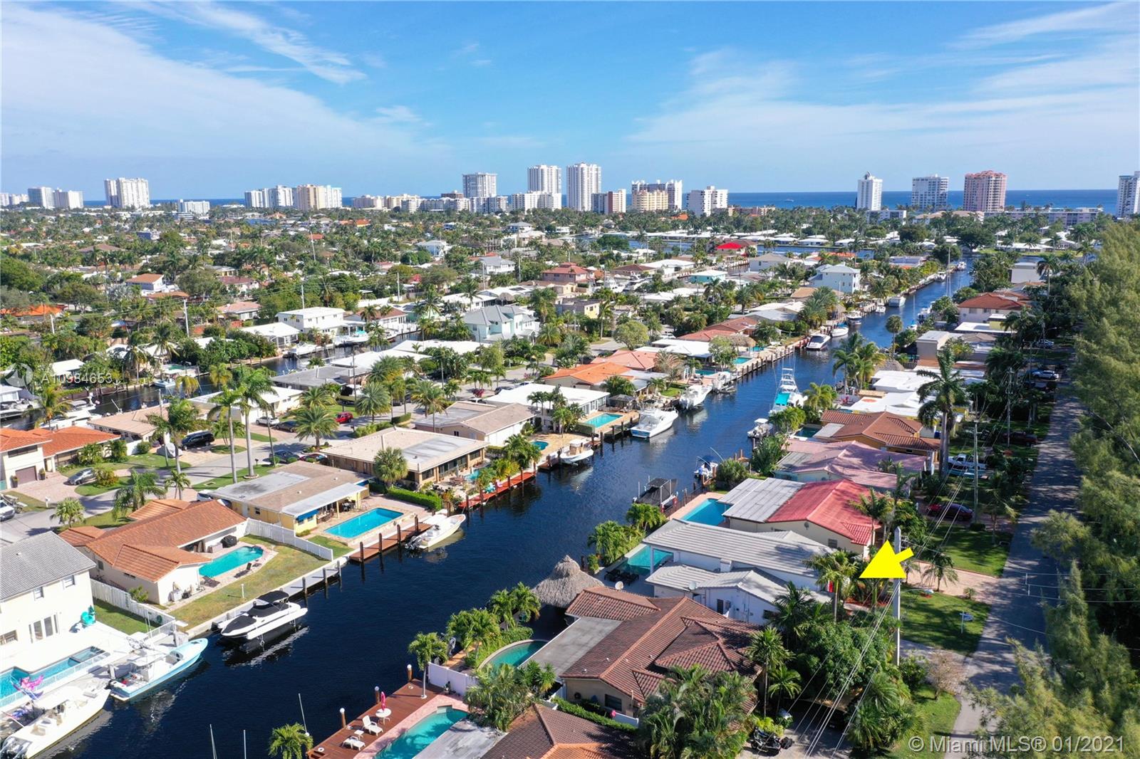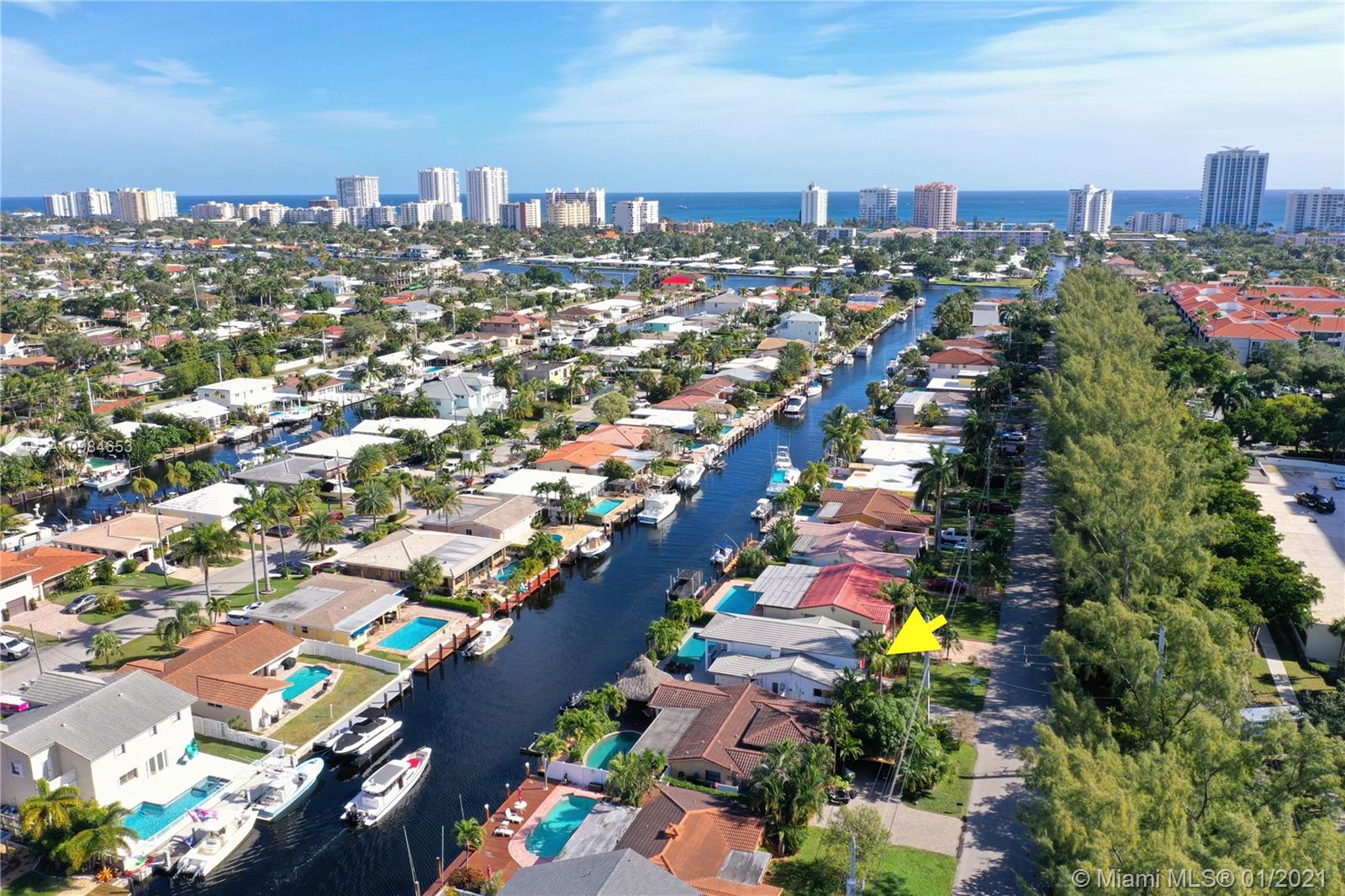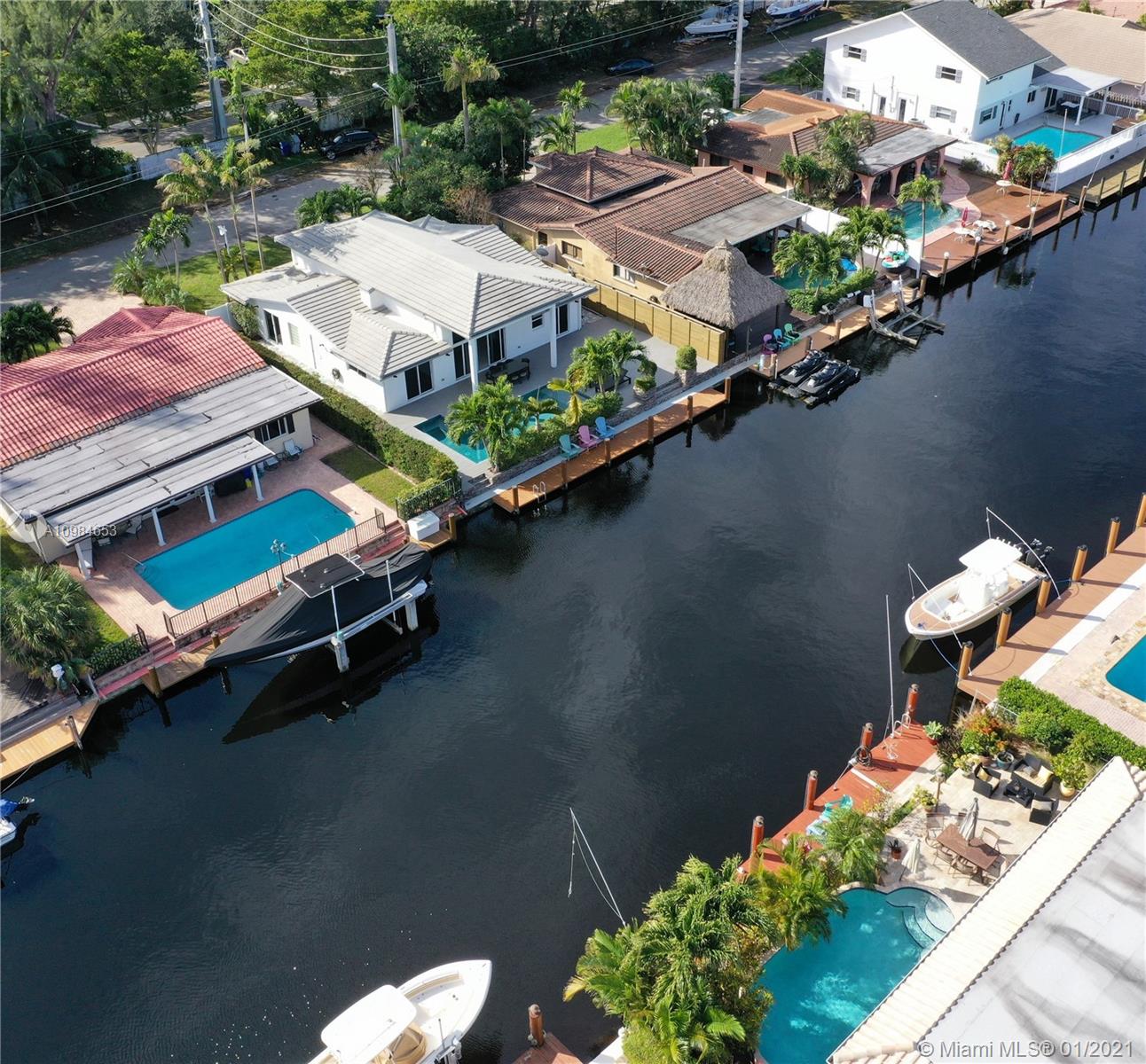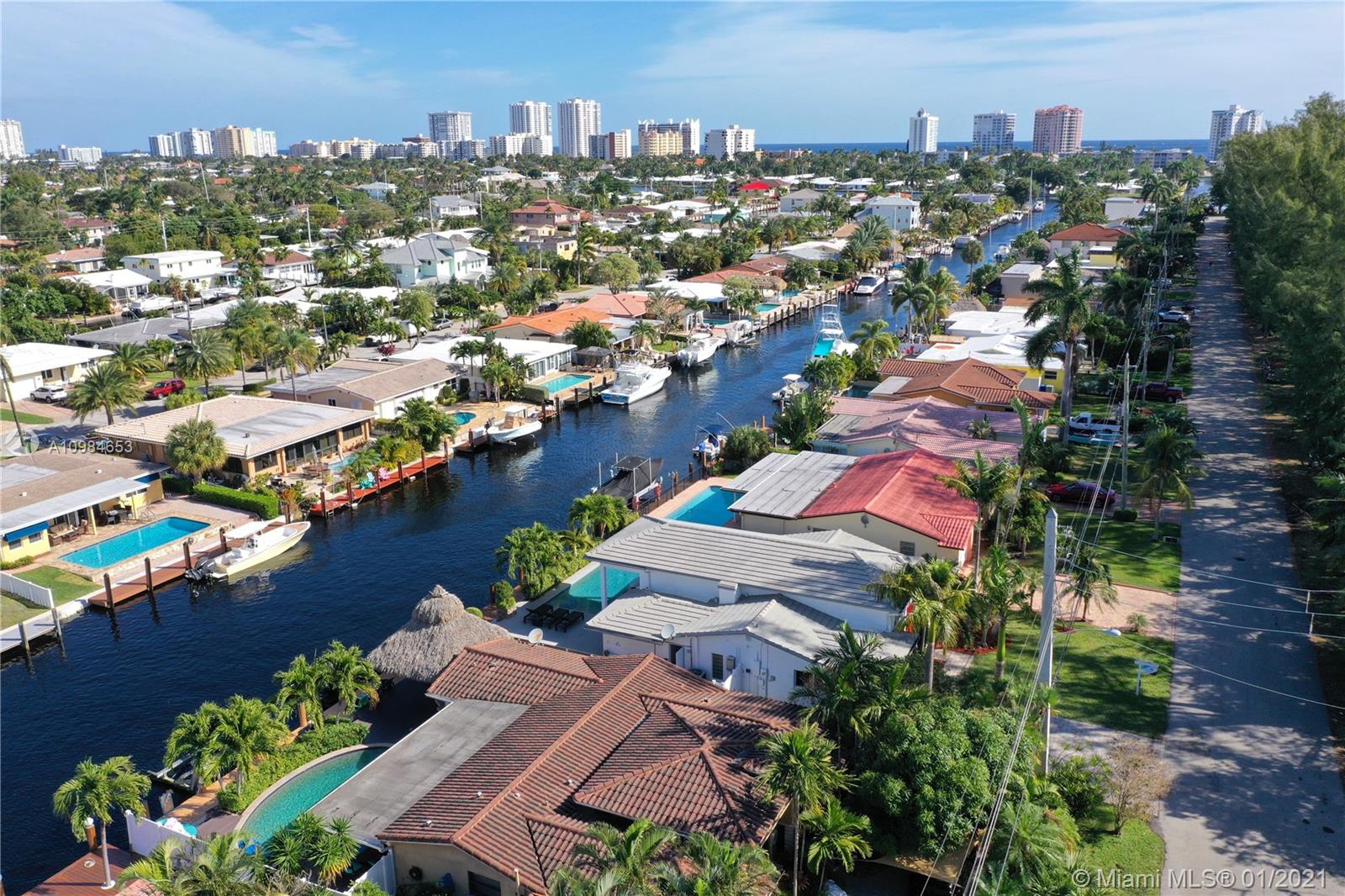 Welcome home to this modern 3 bedroom, 2 bath waterfront beauty with impact doors and windows. Newer construction with gorgeous volumes throughout, discerning buyers will love this bright, tastefully appointed boater’s paradise with 60 feet of deep-water dockage, no fixed bridges and one minute from the Intracoastal waterway. Beautiful heated pool with built-in spa, perfect for entertaining friends and family. Ideal location just minutes from the beach and social amenities. This gem is situated on a quiet residential street with no through traffic. Call today for a visit!