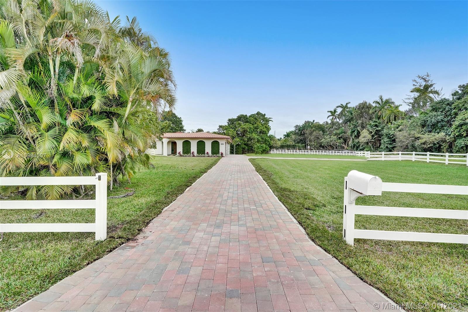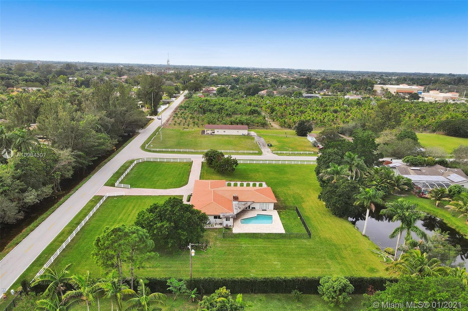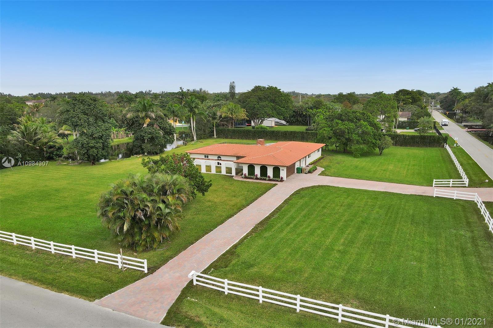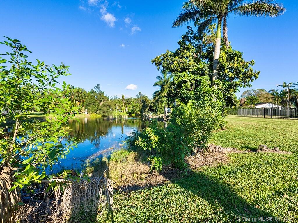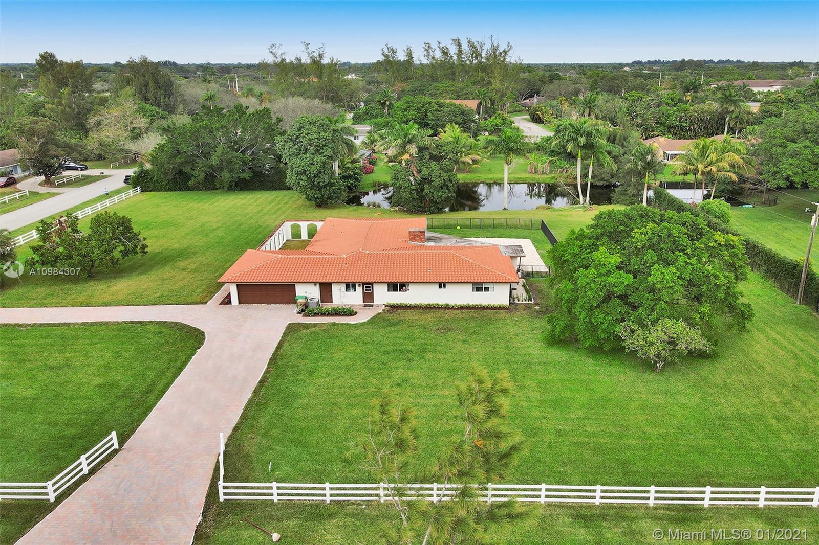Private lagoon front estate on 1.67 acres. 4 bedrooms + den/office, 2 baths +2 half baths. Custom pool, built in BBQ and courtyard entrance. Inside you have porcelain & wood floors, formal dining room, fireplace, renovated baths, pool bath, split floor plan & chef's kitchen with 42" wood cabinets, granite counters & newer high end appliances. There is a huge laundry room and oversized garage can fit 3 cars or there's a room/den there now. The yard boasts fantastic fruit trees- oranges, bananas & avocados. Room for tennis courts, horse facilities and more. Tons of charm & upgrades including renewed roof, A/C, well, fence, tankless H2O heater, hurricane impact windows and doors and more. Walk to nearby park with tennis, playground, volleyball, basketball. A+ schools Horses permitted, No HOA