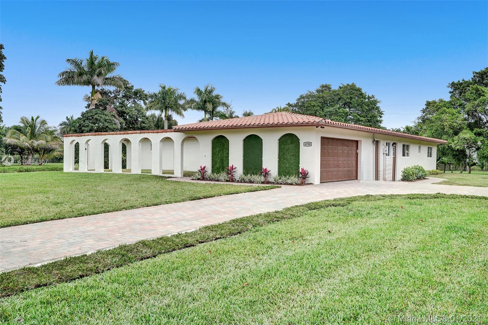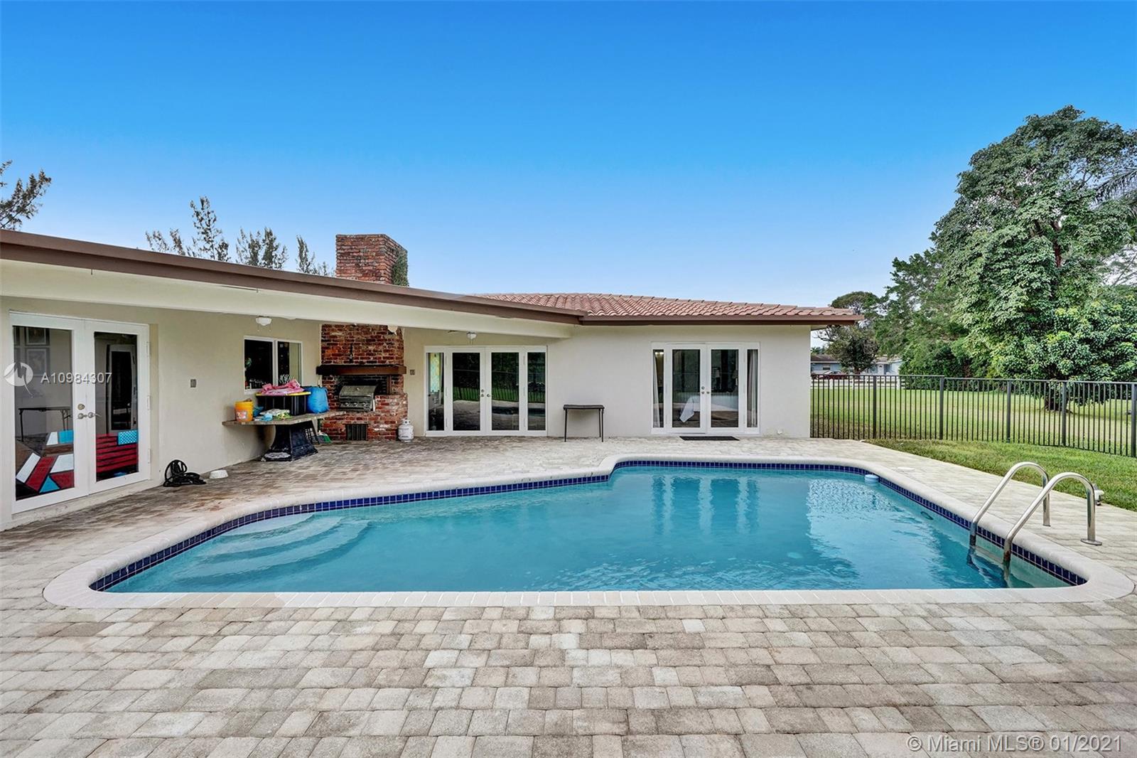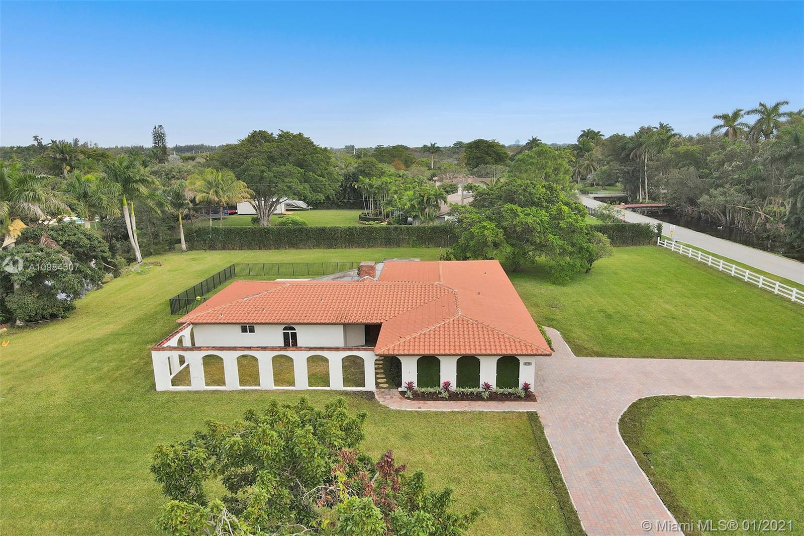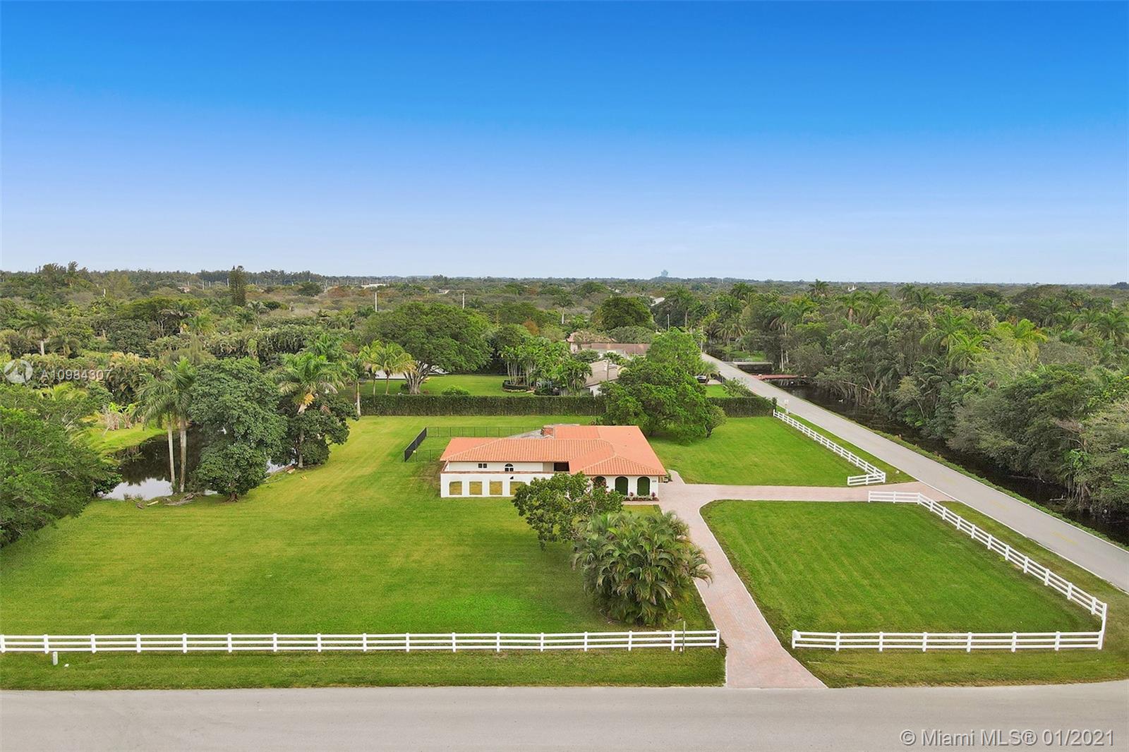 Private lagoon front estate on 1.67 acres. 4 bedrooms + den/office, 2 baths +2 half baths. Custom pool, built in BBQ and courtyard entrance. Inside you have porcelain & wood floors, formal dining room, fireplace, renovated baths, pool bath, split floor plan & chef's kitchen with 42" wood cabinets, granite counters & newer high end appliances. There is a huge laundry room and oversized garage can fit 3 cars or there's a room/den there now. The yard boasts fantastic fruit trees- oranges, bananas & avocados. Room for tennis courts, horse facilities and more. Tons of charm & upgrades including renewed roof, A/C, well, fence, tankless H2O heater, hurricane impact windows and doors and more. Walk to nearby park with tennis, playground, volleyball, basketball. A+ schools Horses permitted, No HOA
