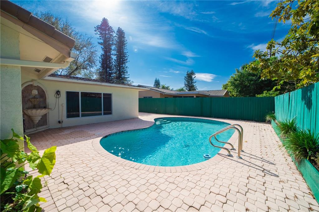 Charming 3/2 with 2 car garage and a pool! WOW! Very spacious with a great layout. Large family room with dining area. Beautiful galley kitchen with granite counter tops, self closing cabinets, with kitchen extension that can be used for addition dining space or computer work area. All newer appliances. Jacuzzi tub in master bath. Florida room over looking the pool. Large backyard fully fenced with garden area, 2 sheds, and mango tree! A/C & water heater less than 5 years old, roof was replaced in 2015, pool resurfaced with diamond bright 2002, and pool pump is 3 years old. Pool area has electrical outlets throughout with custom built waterfall. Hurricane impact windows, doors, garage door and skylight! Working Sprinkler system with well pump and Generator hook up as well!