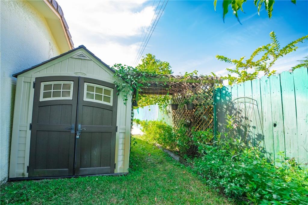 • Característica exterior:Fence, FruitTrees, SecurityHighImpactDoors, Patio, Shed