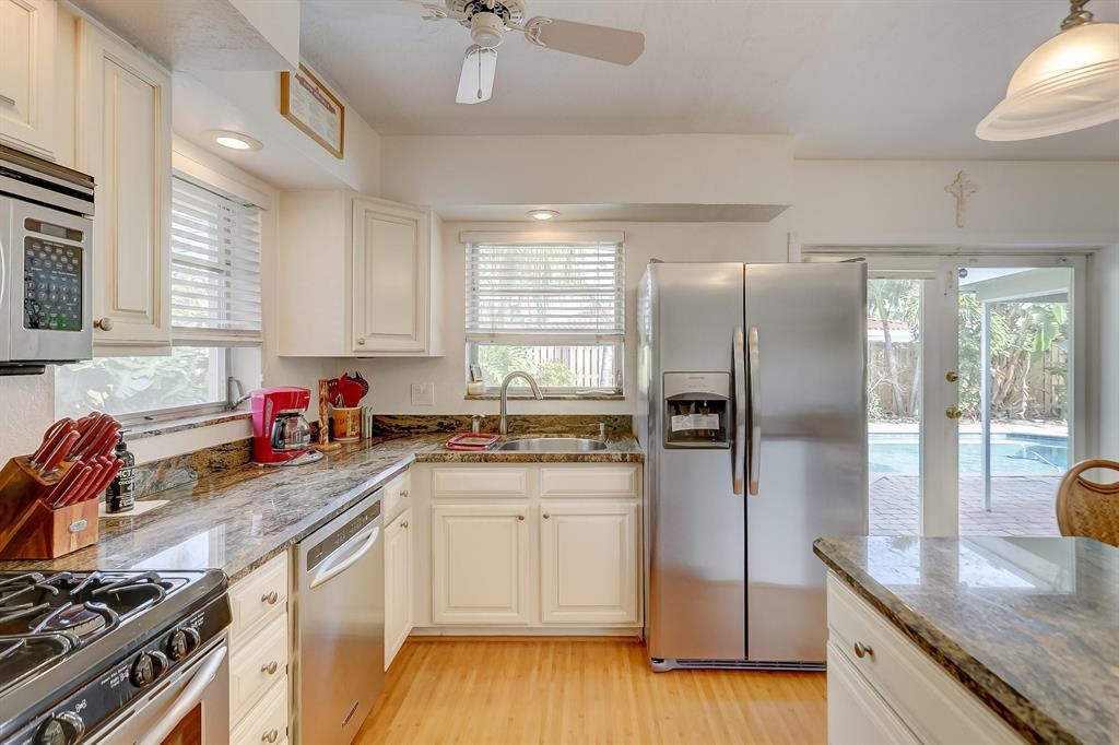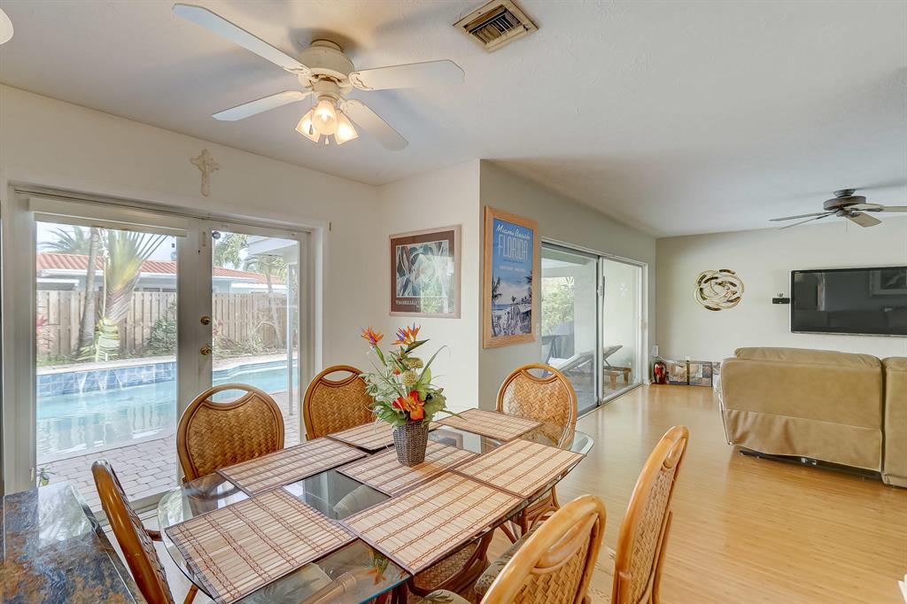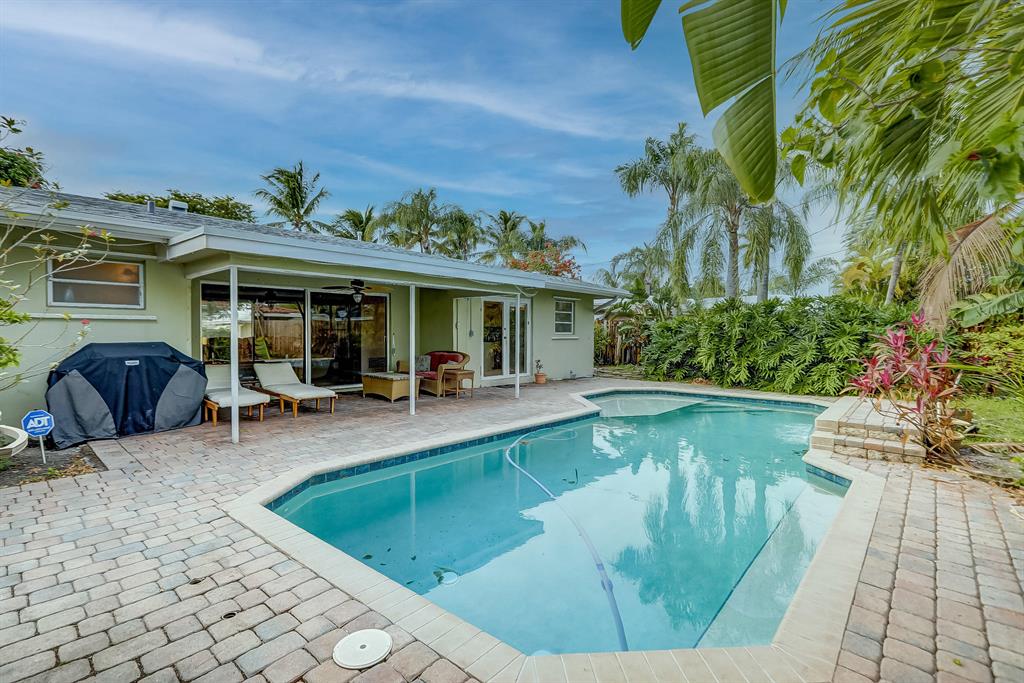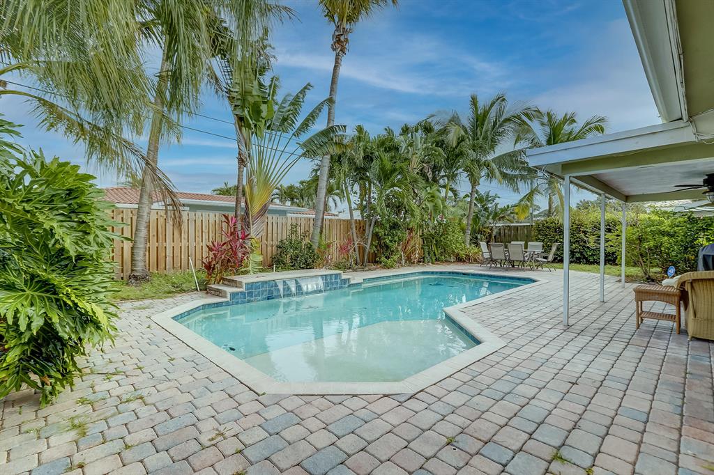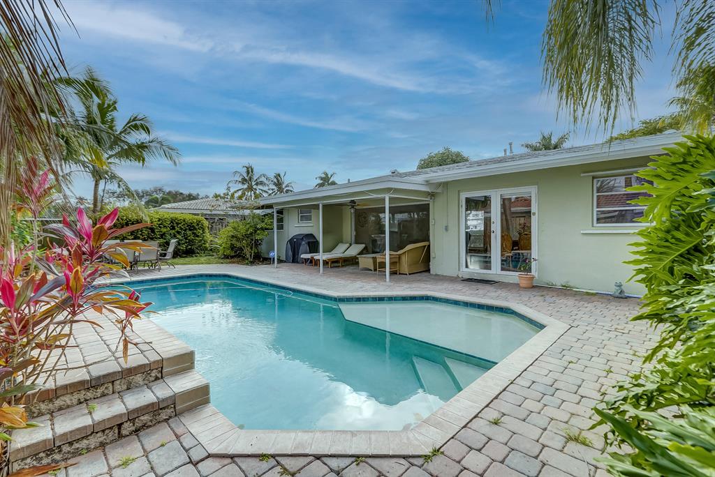 Centrally located in close proximity to I95, shopping, many restaurants, Beaches and The Pompano Beach Pier, this lovely 2BR/2BA with circular driveway COULD BE YOURS TODAY!! This Bright and Airy home can be great for entertaining with the Beautifully updated kitchen, Granite countertops, Stainless Steel appliances and Center Island which opens into a wonderful dining room area overlooking the Private Pool. 2 Sets of glass doors, provide much light in the living areas and lead to the private fenced in backyard, with your own pool complete with a peaceful water fountain feature, tall tropical palms, outdoor dining area, room to grill and for additional seating! This is a must see. Make this your dream home today!!