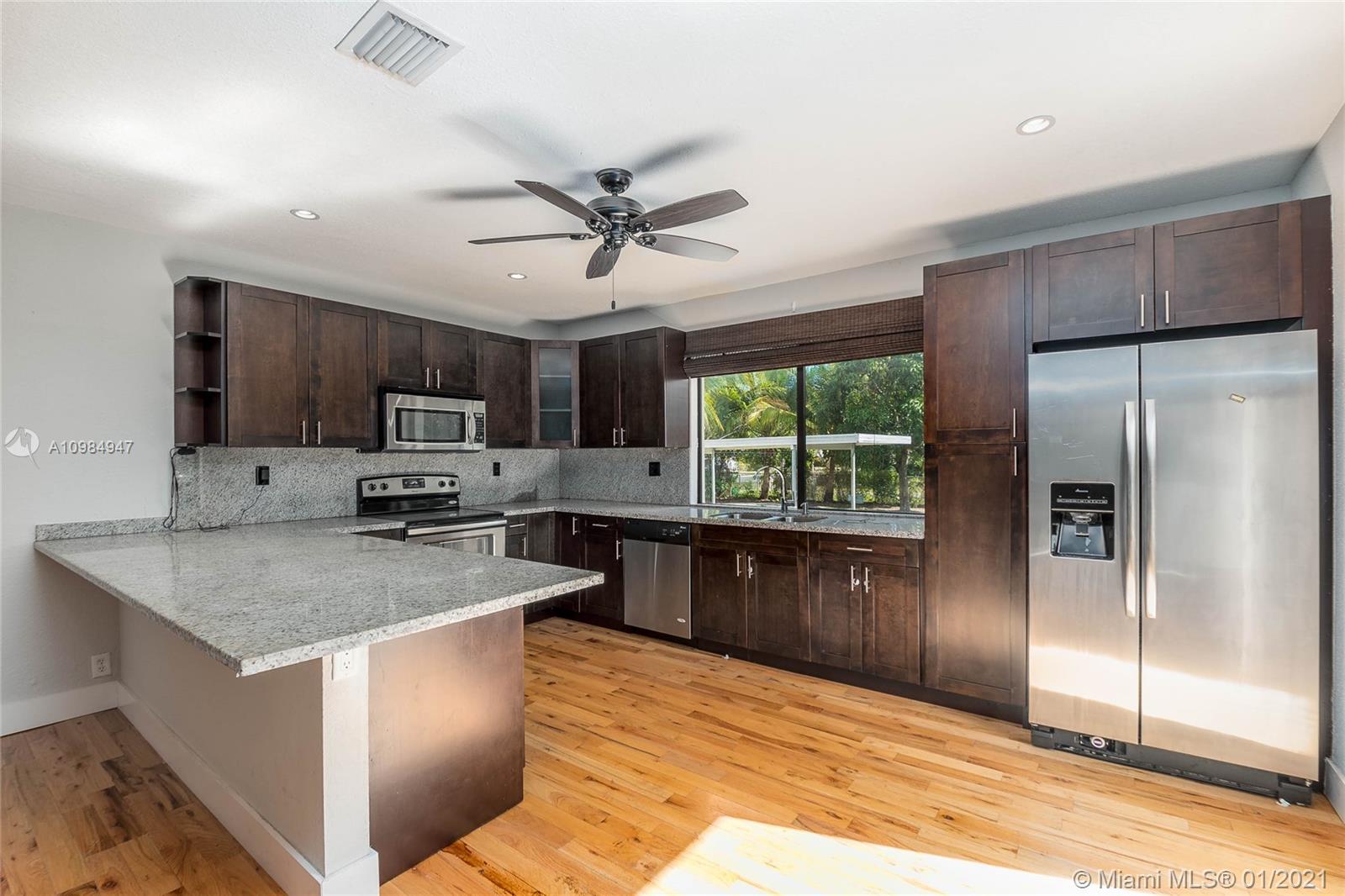 Magnificent home located in the Historic Griffing Biscayne Park Estates subdivision. This Art Deco inspired front façade property sits on a 11,250 sq ft corner lot. Home features fabulous red oak wood floors throughout with an open layout and split bedroom floorplan. New roof and impact windows in 2015 and AC new in 2020. Stainless steel appliances in kitchen with granite counter-tops. All electrical and plumbing updated in 2015 as well. Fantastic fenced in backyard for entertaining with bbq, fruit trees, aluminum carport, and a storage shed that can be converted into an efficiency, home office, studio or in-laws quarters. Room for pool. A true must see if you're looking for a house with great character. Minutes to beach and I-95.