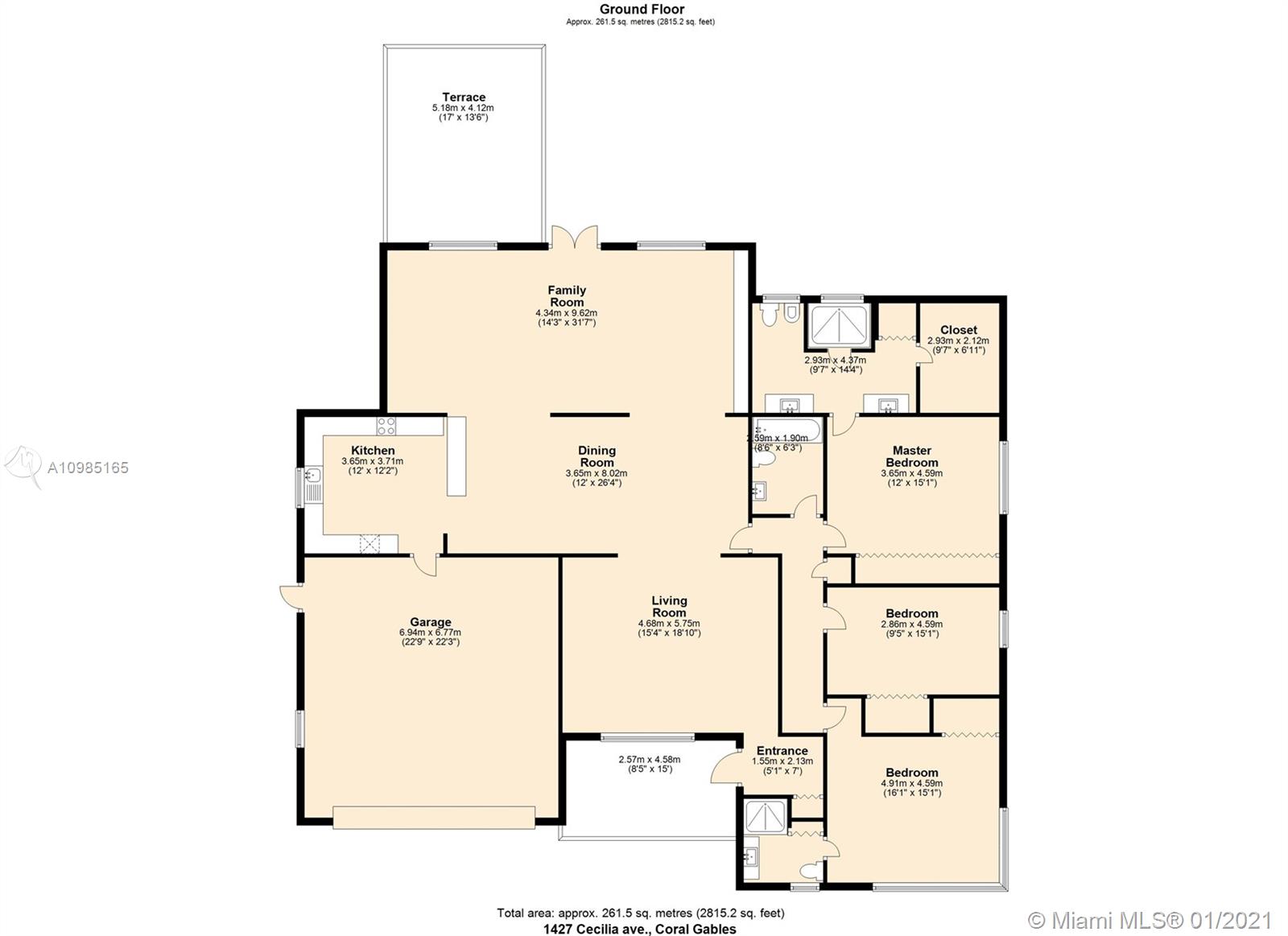 Resort style living on one of Coral Gable’s finest streets! This beautiful house was fully remodeled in 2016 and has a Living area square footage of 2,467 as per appraiser. It is light, bright and inviting and perfect for entertaining thanks to its fabulous back yard. Spaces are open and flow naturally. Gourmet kitchen with quartz countertops and an eat-in area opening on to a fabulous sitting area/family room. All three bedrooms are on one side of the house for privacy of which two have en-suite bathrooms. Wood floors, plenty of built-ins, impact windows and a brand new roof about to be installed next week. Proximity to shops, restaurants, hospitals and great schools. You will love this house!