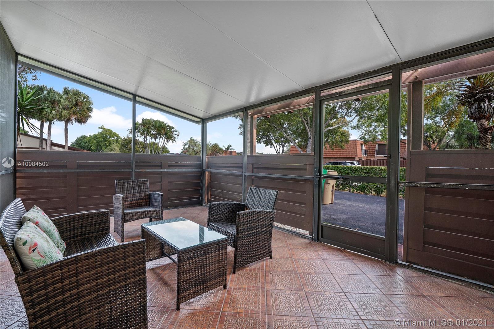 This beautiful, clean, and well kept 3 bedroom/2 bath, is a move in ready villa located in Village at Lake Pine community in Davie. This spacious and open floor plan features high ceilings, a renovated kitchen w/ granite counter tops, and is fully equipped w/ Maytag and Frigidaire stainless steel appliances. A new A/C was installed in 2016. The large master bedroom features a walk in closet, two newly renovated bathrooms, and an oversized screened in front porch where you can relax, accordion hurricane shutters throughout, 2 side by side front parking spots, and additional parking for your guests. The community offers, tennis, racquetball, basketball, a swimming pool, biking and jogging paths. Near major highways, beaches, restaurants, airports, top schools, and shopping!