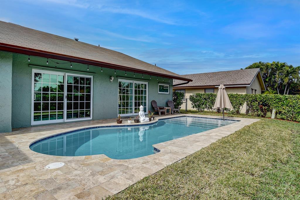 This home has it all! Impact windows/doors(2019), new electrical panel, A/C 2017, Roof 2013, Newer washer/dryer. Brand new pool (2019) with sun shelf, salt water, beautiful pavers, and a tranquil water view. Home features, vaulted ceilings, spacious floorplan, neutral colors, trendy white kitchen cabinets, granite countertops, pantry, stainless appliances (samsung/kitchenaid). Plenty of natural light with many doors and windows overlooking the tropical landscape, pool, and lake. Completely fenced yard and landscape privacy without losing the beautiful view. This home is 100% move in ready and has everything you want! Close to the golf course, highways, airports, shopping and all that Boca has to offer. Don't wait!