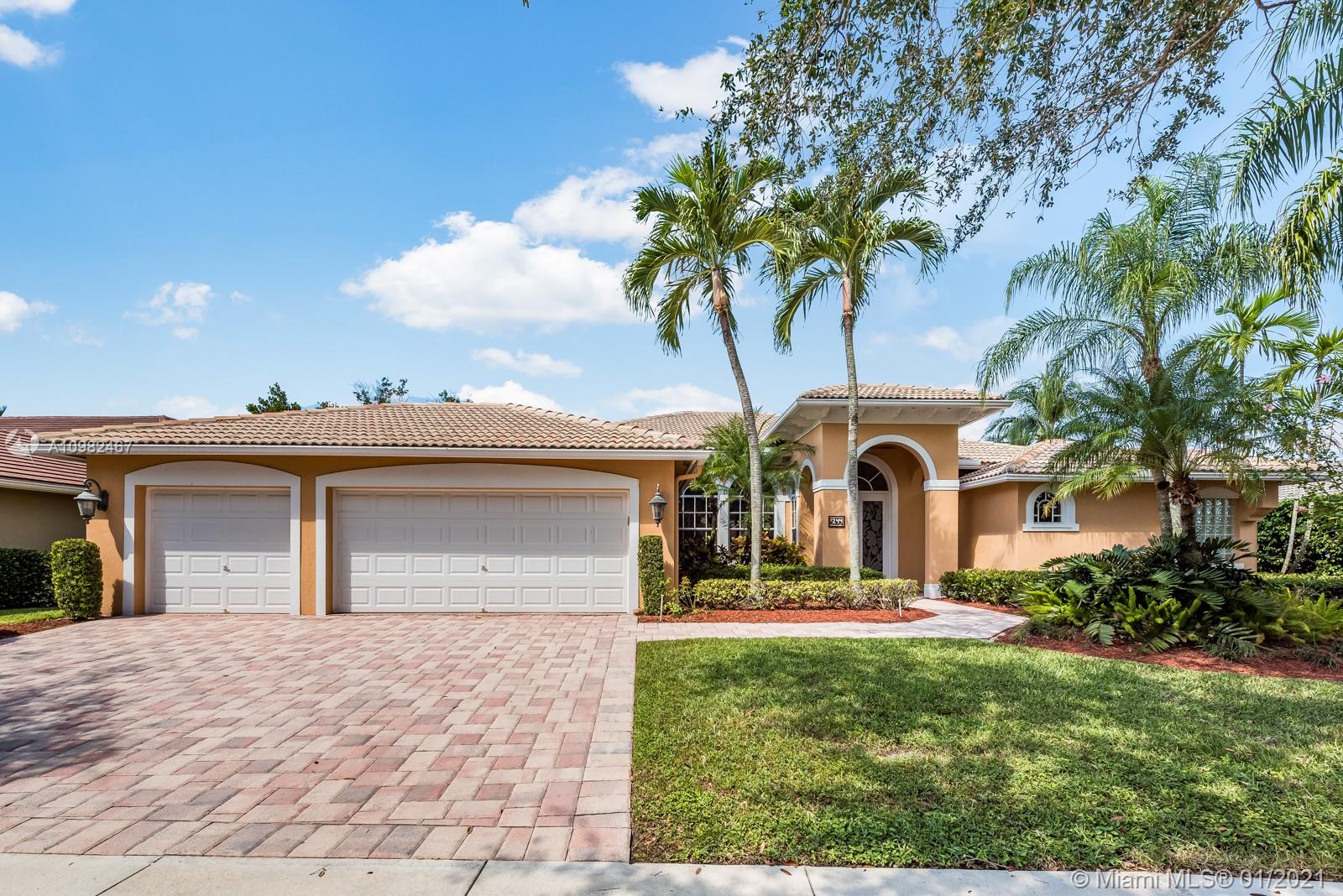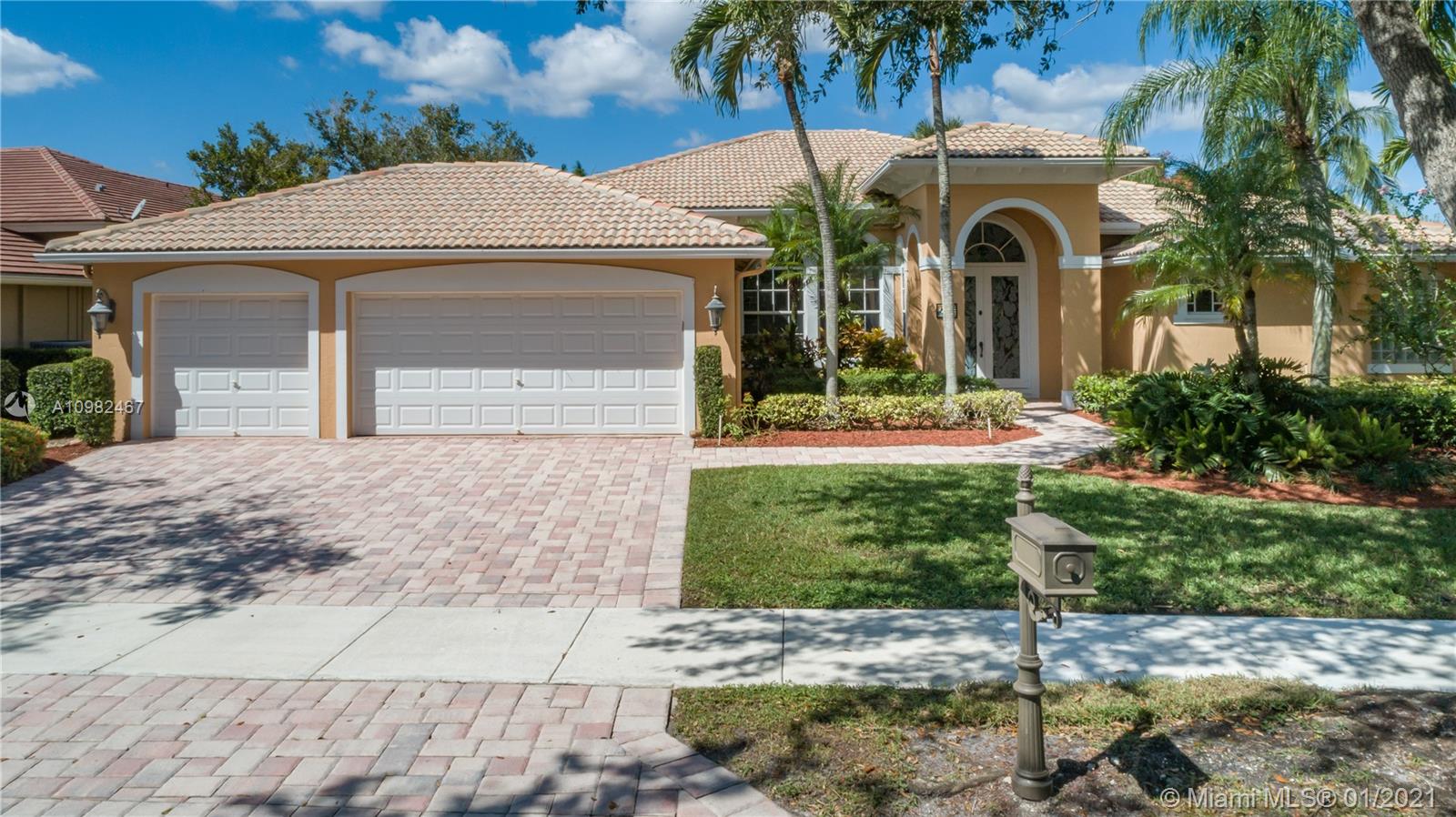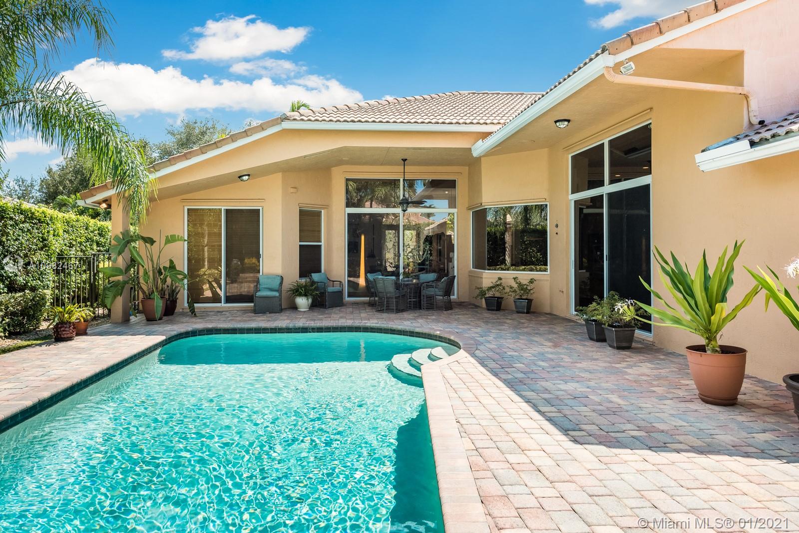 Rarely available, comprehensively remodeled custom Mediterranean home in The Landings, a prestigious gated community in Weston. A large Foyer entrance with volume ceilings opens into the formal living and dining rooms, connecting with open concept entertainment/Dining Room & Kitchen. An inspiring contemporary kitchen awaits for you, with custom cabinets, quartz countertops, and stainless steel appliances. Stylish imported Italian Porcelain large tiles wrap the entire home. The Master bedroom retreat with walk-in closets and large en-suite bathroom sits privately on the right-wing of the home. An additional 2 wings encompass four additional bedrooms. New electric throughout was completed in 2015. A private backyard with a pool and spa tops off your wishlist in this exclusive home.