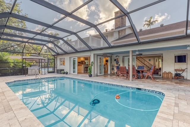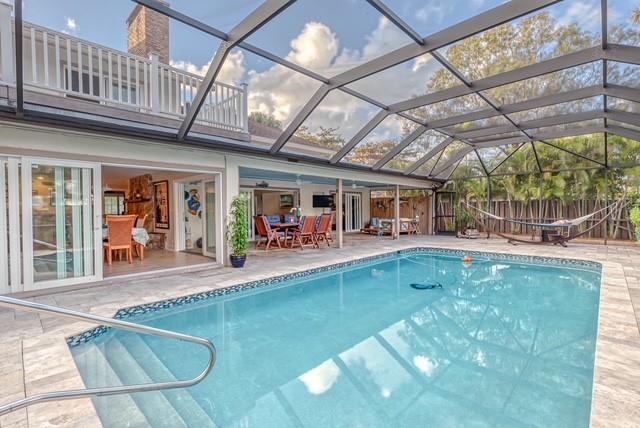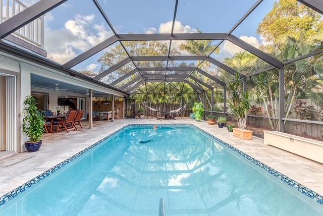 Located in the nature lovers paradise of Riverland, a 15 minute drive to downtown. Property is located on a private lane and boast just over a half acre of land including a tennis court. Complete 2015 top to bottom renovation. Property includes new huge chef’s kitchen, bathrooms and bedrooms with hardwood custom cabinetry, all new flooring, custom garage. Large office could also be 5th bedroom. Upgraded A/C, insulation, impact windows and doors, driveway, fencing, electric gates, deck. Screed pool with large covered outdoor living space. This spacious home provides peace and tranquility while being only minutes aways from everything. This is two lots (2nd lot has the tennis court) which are separately deeded but being sold together.