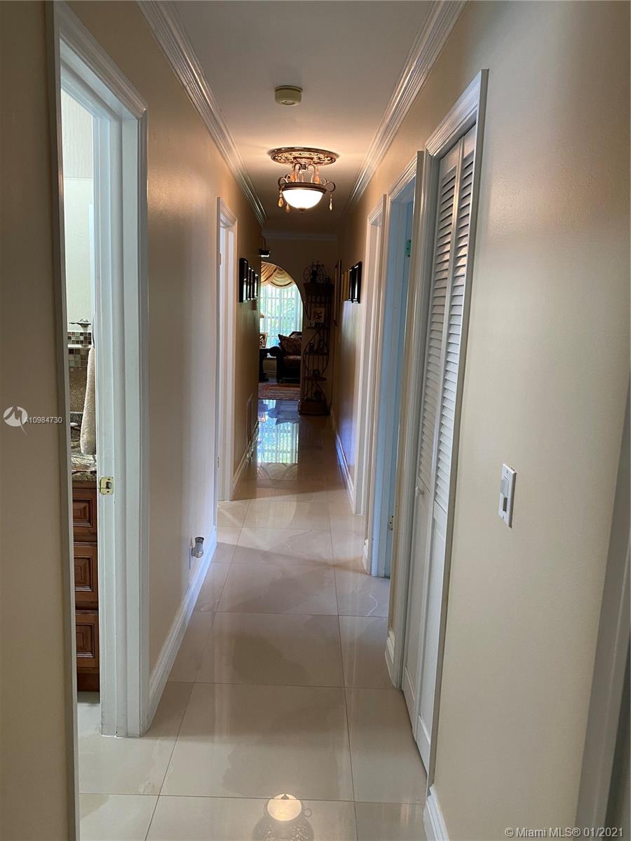 Enjoy resort style living in a spacious, beautiful 4/2.5 waterfront home in a quiet neighborhood with a corner lot on a dead end street. Large family room, living room, and enclosed pool with a skydome screen. Features upgraded kitchen with granite countertops and high end stainless steel appliances. Recently painted exterior, custom-made closets in all bedrooms, high impact windows and doors, as well as hurricane accordion shutters; Large Jack and Jill bathroom; Large circular driveway w/ space for at least 10 cars plus a two car garage; Near major highways and great schools!