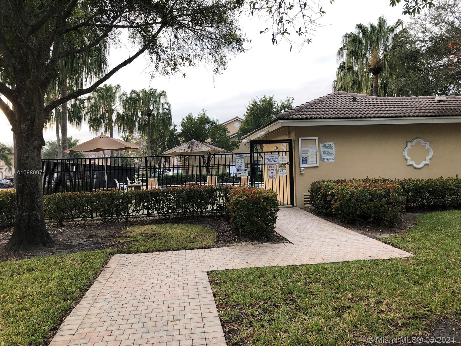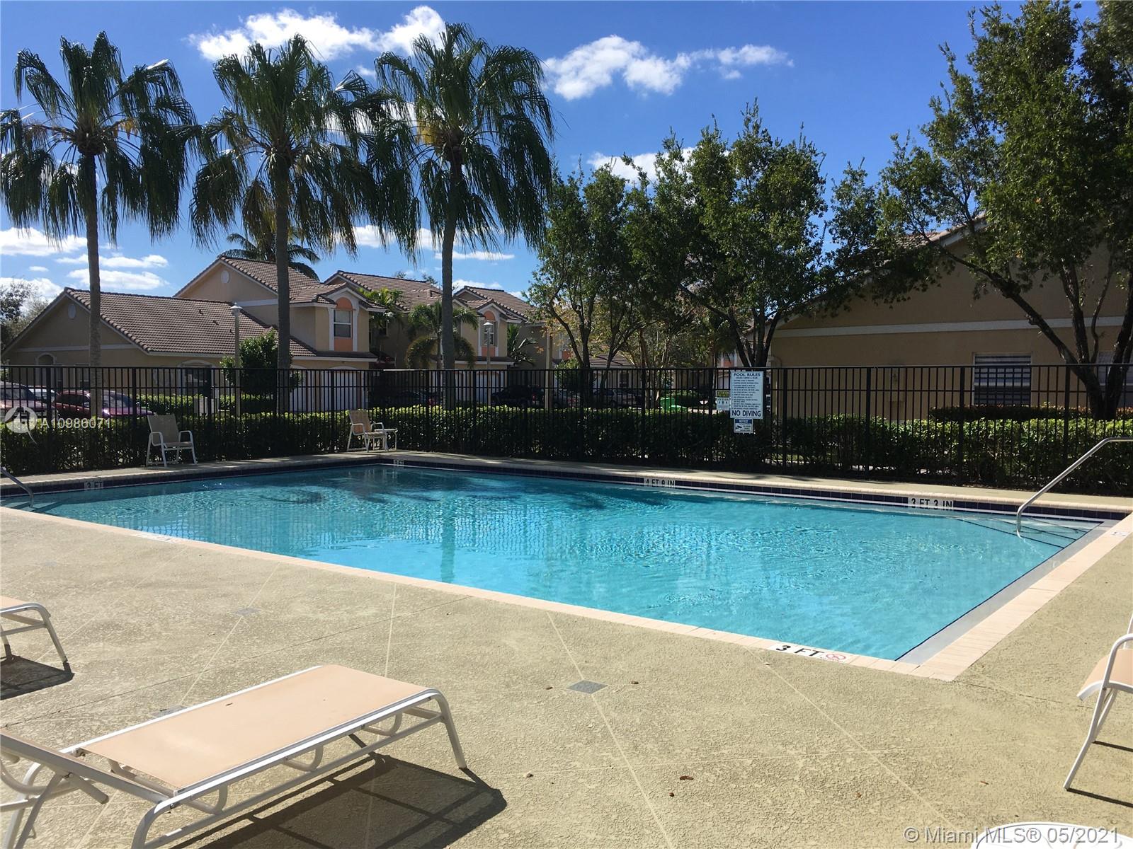Great gated community in excellent location, Spacious, open and well maintained Townhouse 3Bed, 2Bath and half bath in a well distributed floorpan, screened Patio overlooking a Fantastic relaxing and calm lake view, grilling allowed. Very low HOA $160 per month, New AC unit, low FPL bill recently replace all Stainless-steel Appliances as well as the washer and dryer conveniently located on the second floor, Tile flooring and Laminate wood, Big kitchen with breakfast area, with Garage acces 1 car garage plus 4 parking space. Walking distance to the pool. Location is a Plus minutes from sawgrass Expressway and sawgrass mall, walkable distance to Publix, shopping schools and restaurants. HOA includes grass cut, Exterior Paint, pool maintenance, gate access.