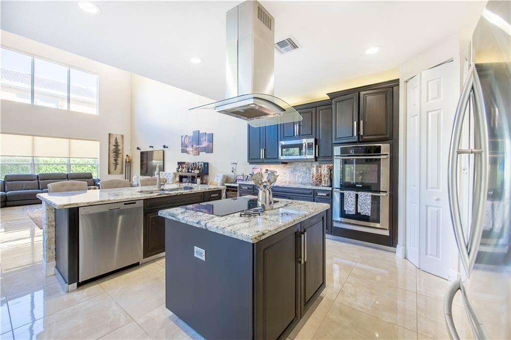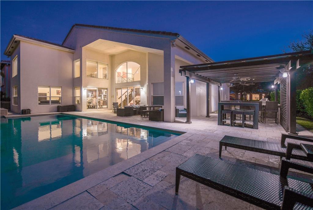 This unique and spacious property offers great areas for entertaining and family gatherings. Home features 5 bed/5baths plus a big loft with a lot of natural light. Master bedroom is on the first floor and another mini suite with its own private bathroom. Gourmet kitchen with granite countertops, wood cabinetry, center island . Enjoy the spectacular oversized pool/Jacuzzi 50X20, pergola with summer kitchen and extended travertine pavers throughout the entire patio.