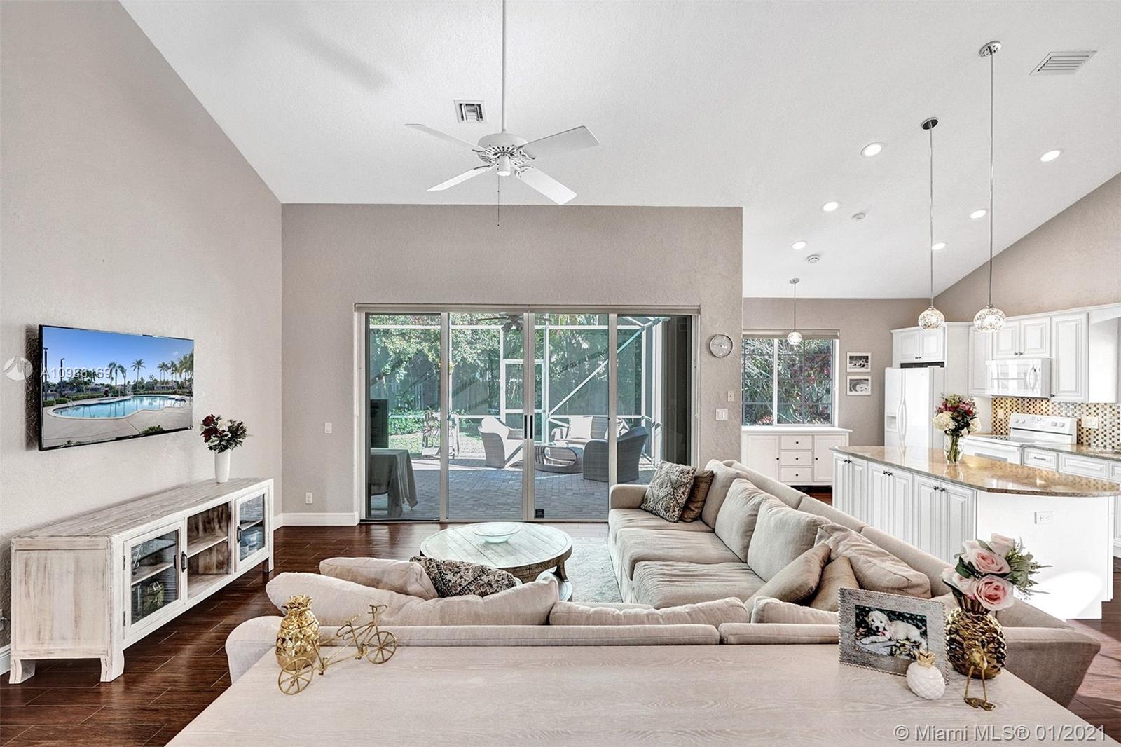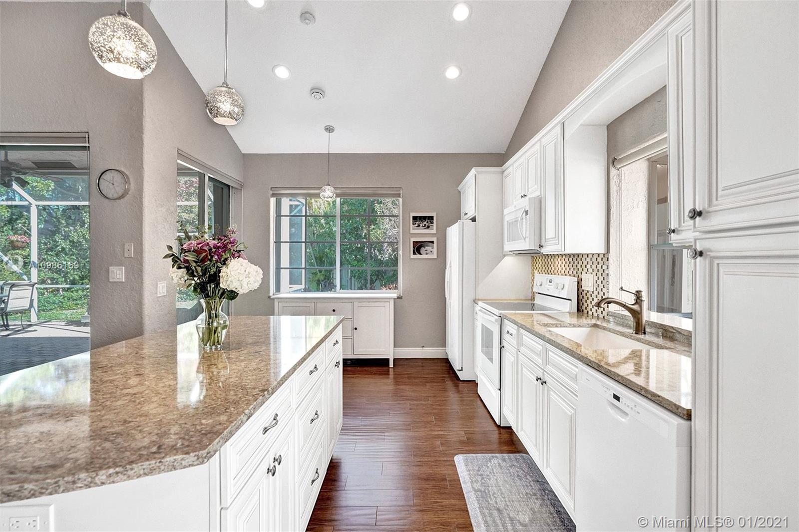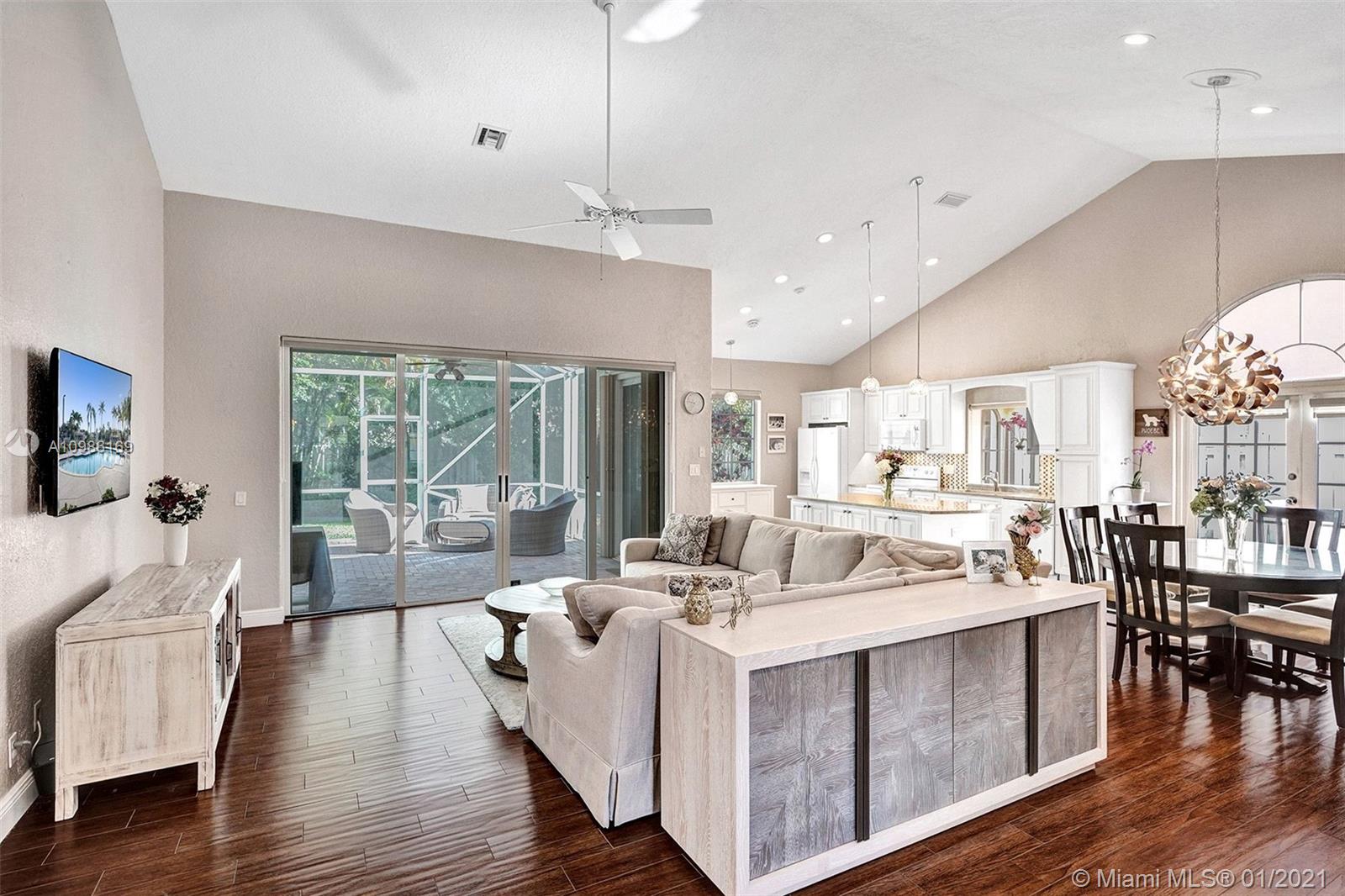 Beautifully renovated single story home nestled on quiet cul-de-sac in most charming boutique Weston community of Laguna Springs. Did we mention it has a new roof? Open concept living area with stunning kitchen that has antique wood cabs, large center island, and exquisite quartz counters. Porcelain wood design tiles in living areas, designer lighting, accordion shutters. Spacious open floor plan w/volume ceiling, French doors open to screened brick patio & beautiful private country garden with room for pool. Clubhouse, pool/spa, basketball, A+ schools!