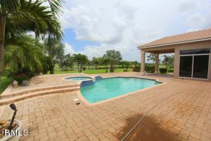Lakefront 4BR, 3.5BA, Den, Formal Dining Room, Family Room home with in ground pool, large patio open and covered. Open kitchen with cook island, granite counters, double wall over, decorative backsplash, snack bar. Master has sliders out to patio and pool, two large walk in closets. Master bath has dual sinks, roman tub, separate shower. Two bedrooms are joined with a Jack & Jill bathroom, Third bedroom has its own bath. Large oversized windows and sliders. Bay Hill Estates is a gated community with pool and golf.