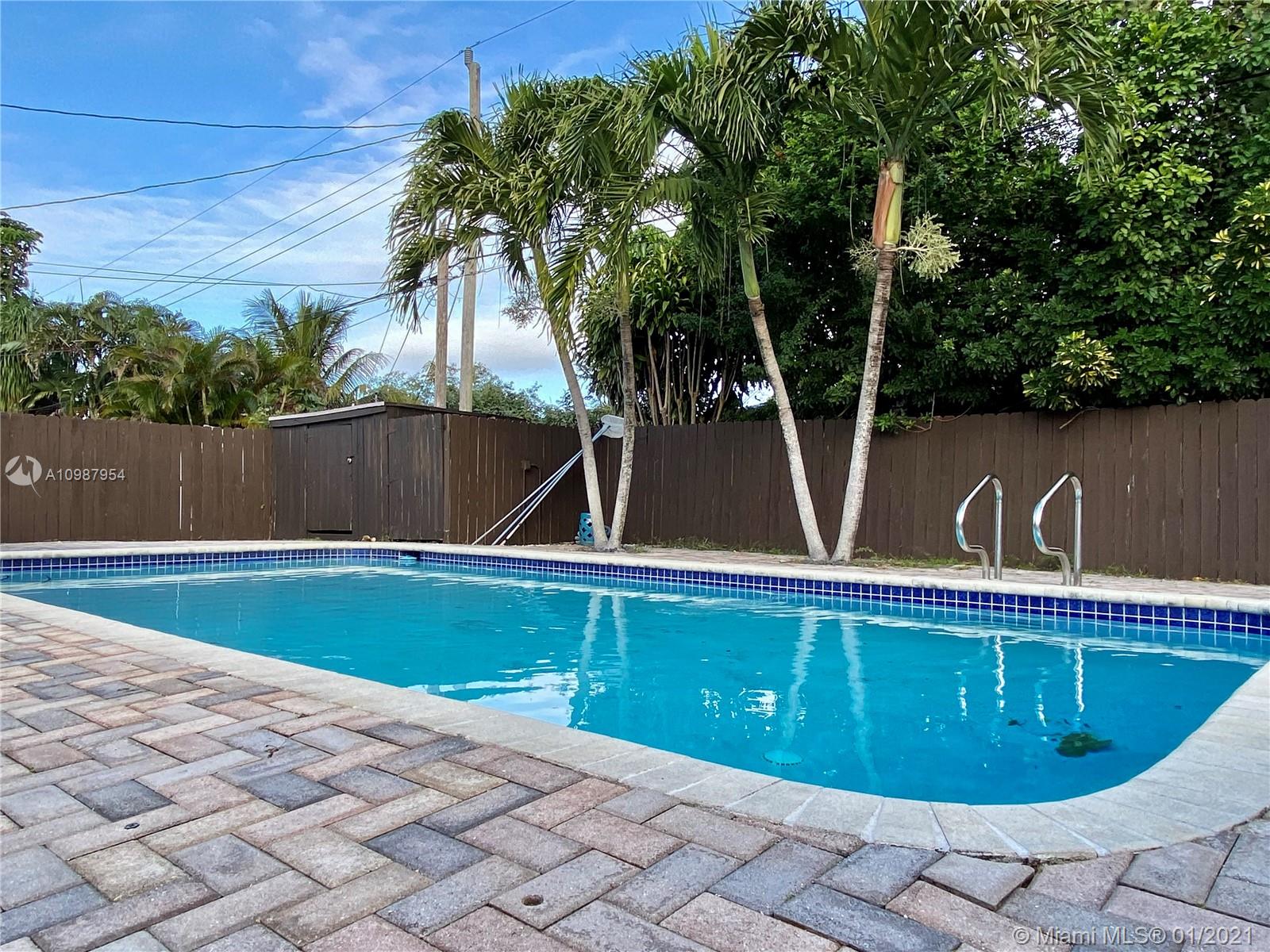 Beautiful pool home , fenced patio with nice pavers and palm trees, 2 sheds, one year old roof,circular driveway, and lot of space for additional parking, updated kitchen and bathrooms, tile floor in all areas. 3 bedrooms and 2 bathrooms, laundry room, tank less water heater, hurricane shutters, Florida room. Quite, nice and safe neighborhood, and free of home owner association dues. Close to the South Broward Community College, schools and the Florida Turnpike.