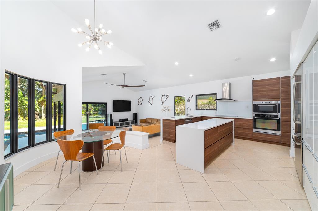 This Boca Raton home is located in the highly desirable neighborhood of Colonnade at Glen Oaks. The property has high soaring high ceilings throughout and tile flooring in the living areas. As you walk in the front door, your view looks through the large formal living room out into the large backyard with pool. The property boasts a fully updated kitchen with modern theme, stainless steel appliances, tons of storage and opens out into the large family room. Perfect home for entertaining and family. The large primary bedroom has vaulted ceilings and pool views. The master bathroom has been beautifully updated with a large modern shower and sleek double vanity. All secondary bedrooms have high ceilings, ample closet space, and laminate flooring. Roof approximately 2010, water