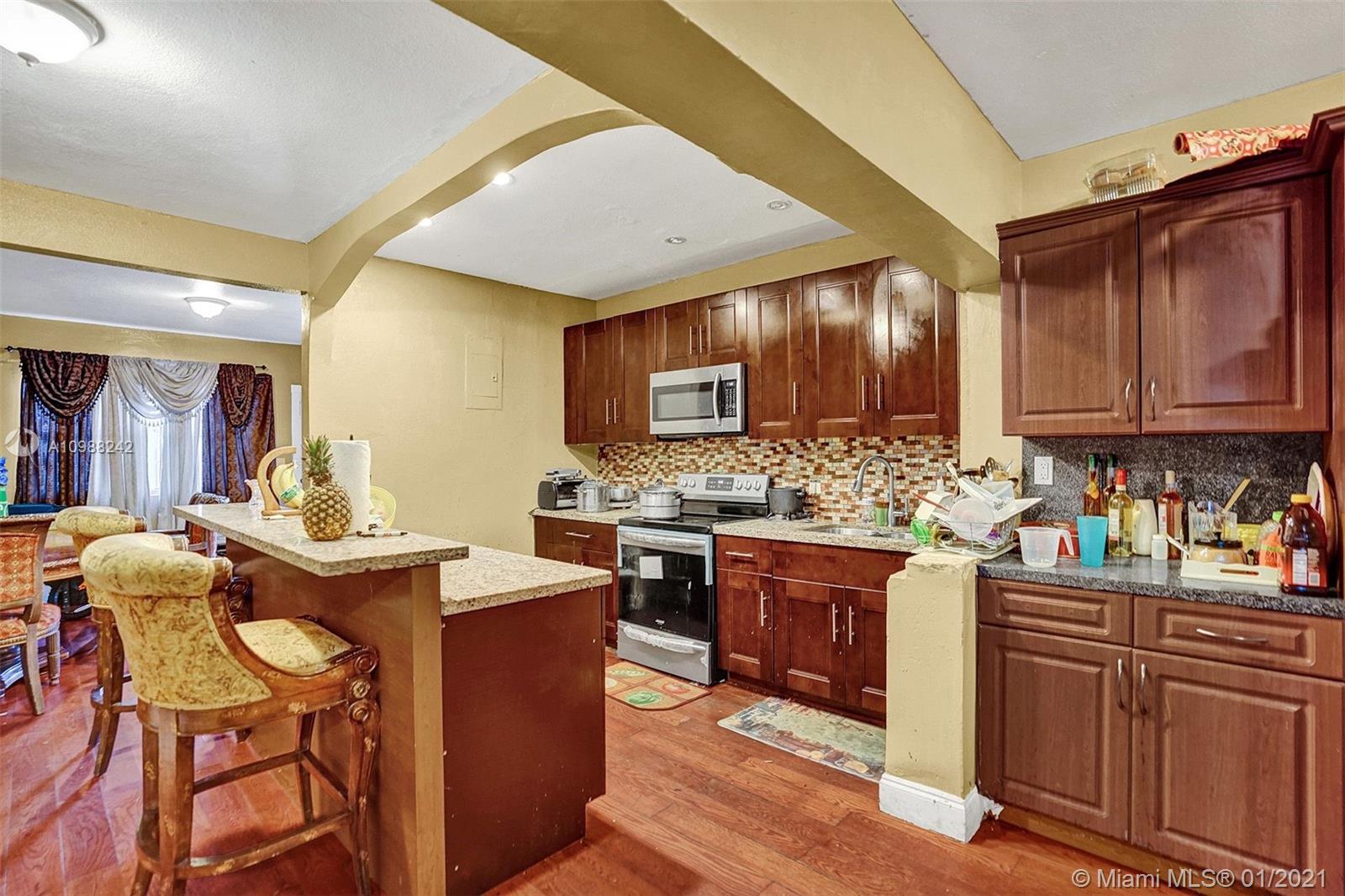Fantastic Opportunity! Single Family Home. Legal Duplex. Brand New Aluminum Roof. 4/2 downstairs and 2/1 upstairs. Separate Electric. Live Downstairs and enjoy $1500/month income from upstairs. Renovated Kitchen and Baths. Hardwood Floors. Full sized pool. 2 Car Garage. Circular driveway. 2 A/C units down / 1 A/C unit Up. Huge Backyard ¼ of an acre. All work believed to be permitted. No HOA fees. Centrally Located! REALTORS: please go to SHOWING TIME FOR SHOWING INSTRUCTIONS.