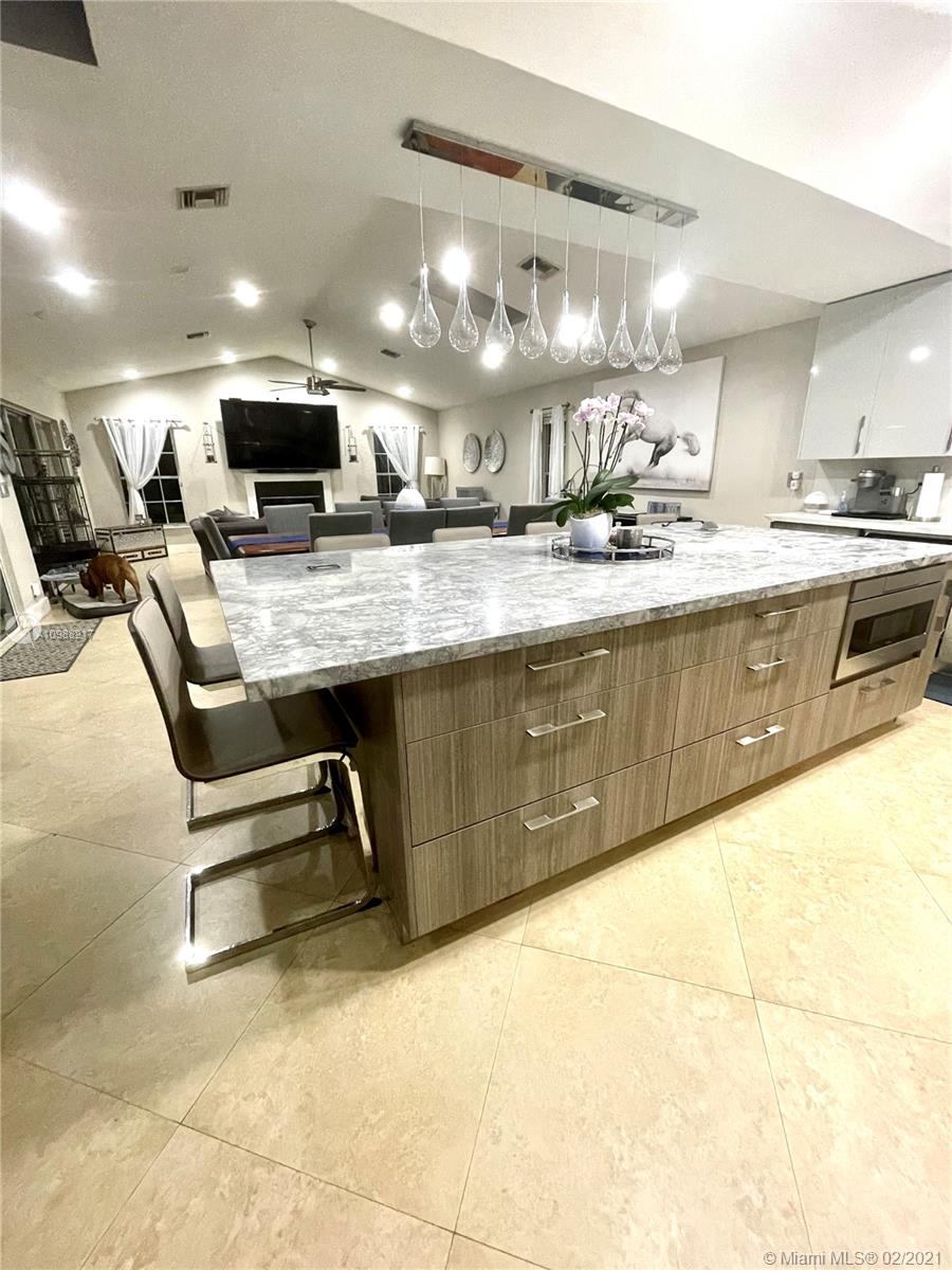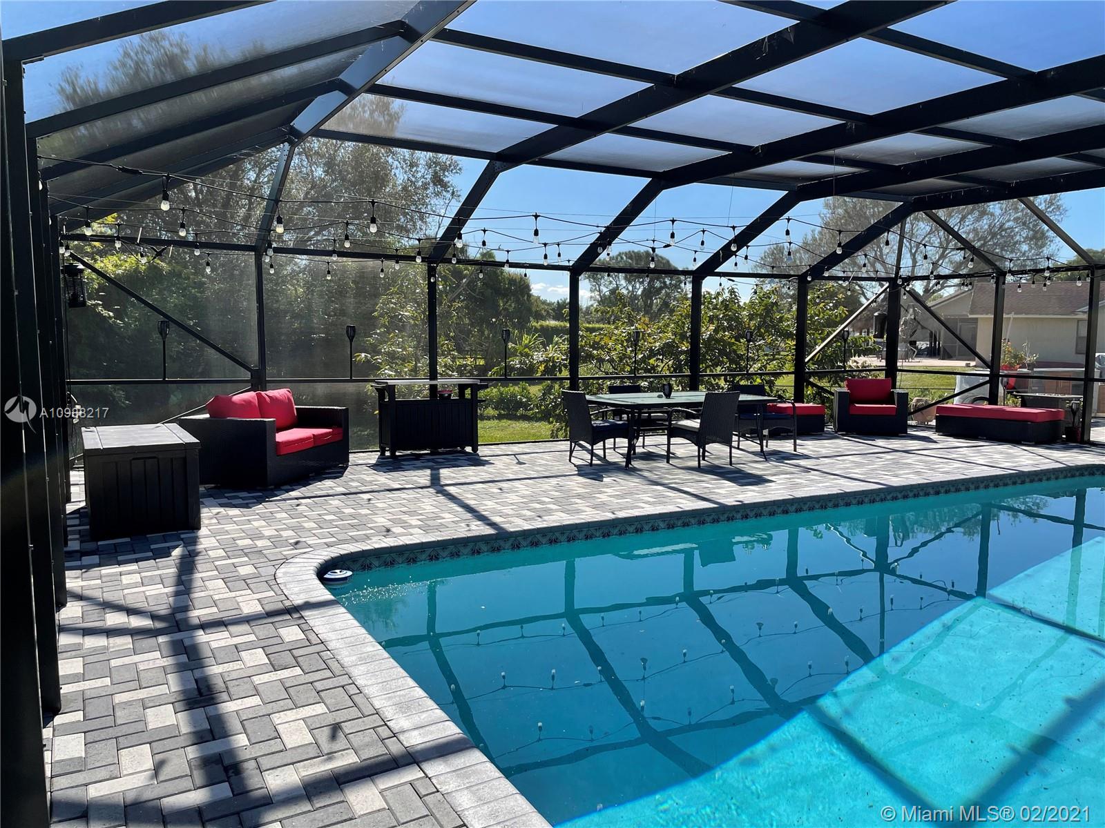 Gorgeous, updated builder’s acre home in desired area of Southwest Ranches. Natural light, open concept floor plan with high ceilings and newly remodeled kitchen. The kitchen houses an oversized natural Quartzite island with storage galore. 4 bedrooms, 2.5 remodeled bathrooms plus 1 additional pool bathroom with shower. 2 zoned air conditioners. Bedrooms with large closets. Relax in your screened pool or enjoy the large patio overlooking over 10 fruit trees while entertaining guest at a summer cookout. 29,000+ lot Property is fenced and landscaped throughout with Graceful bamboo and Clusia’s, only one entrance to the neighborhood. With NO HOA.
