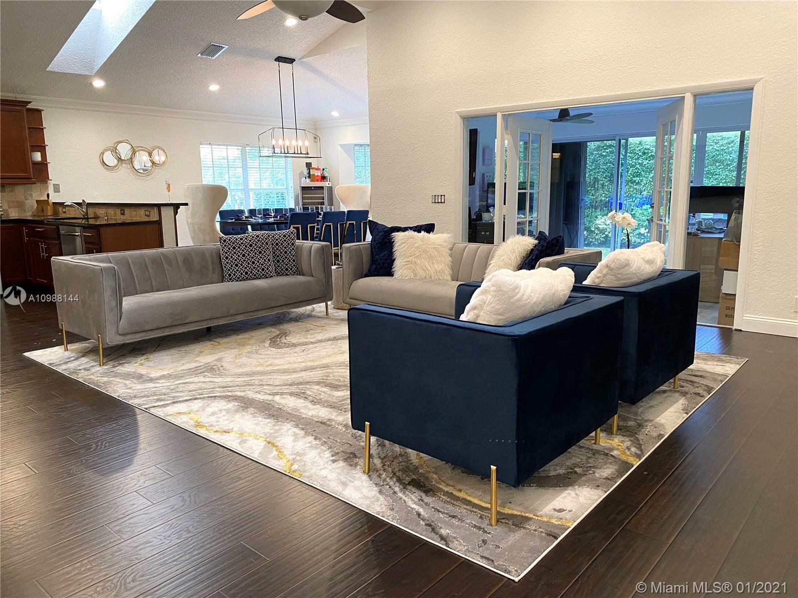 Beautiful spacious 3 bedroom, 2.5 bathrooms located in the prestigious Eagle Trace Community. This home has vaulted ceilings, skylights, very open layout, spacious bedrooms and is an oversized corner lot. Highly desirable public golf course that wraps around the main community. Three gated entrances which are manned 24 hours, 7 days a week. Community includes pool, tennis court, basketball court and clubhouse. Roof was installed 6 years ago and water heater replace in 2019, newly remolded kitchen has granite counter tops and wood cabinets, with plenty of storage, including kitchen island. Dark brown wood floors newly installed throughout the house. Master bedroom includes a walk-in closet along with his and hers granite countertop sinks, separate shower and roman tub.