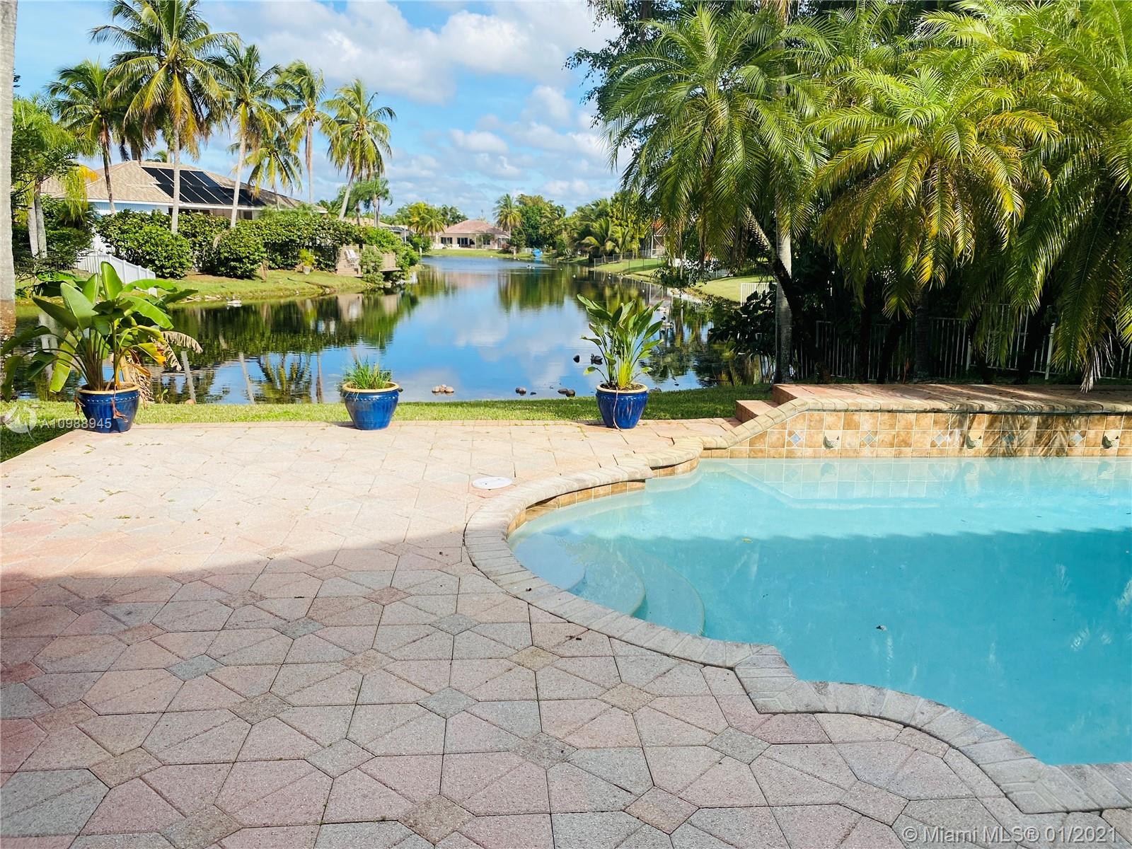 Westport's finest! As you enter the spectacular double entry doors you are greeted with breathtaking panoramic views of the pool and tranquil lake, this light & bright gem boasts high tray ceilings, and lots of natural light. The stunning view is visible from the living room, family room, kitchen and master bedroom. There are 4 spacious bedrooms located in a private enclave off the living areas. The vast master bedroom boasts his & hers walk-in closets. The ensuite bathroom has a roman tub & shower also has separate his and hers vanities. Brand new tile roof completed in 2020, 2 new Ac units, hurricane shutters, new washer & dryer, monitored security. Westport is located in prestigious Plantation with A-Elementary school, American Heritage HS. Close to highways, restaurants & shopping.