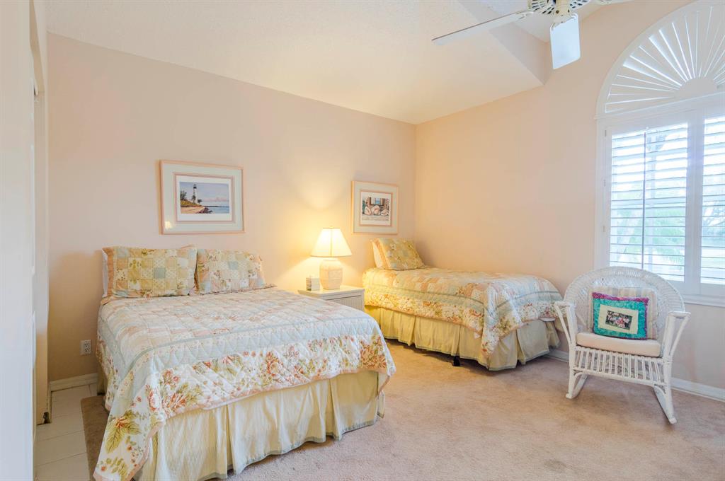 Fabulous opportunity in Eastpointe for this 3/3 home. One bedroom being used as an open den/office space. Large dramatic LR/DR w/volume ceilings and amazing view of the 15th green on the west course. The spacious eat-in kitchen has white cabinets w/a center island and double opening to the dining room as well as sliders to a side patio. The master is very large also with a volume ceiling and spacious bath w/double vanity, separate tub and shower as well as water closet. This home has room for a pool too. Eastpointe is getting a new club house w/2 pools, large gym and casual sports style restaurant with no assessment. 9 minutes to the beach and 15 to the airport.